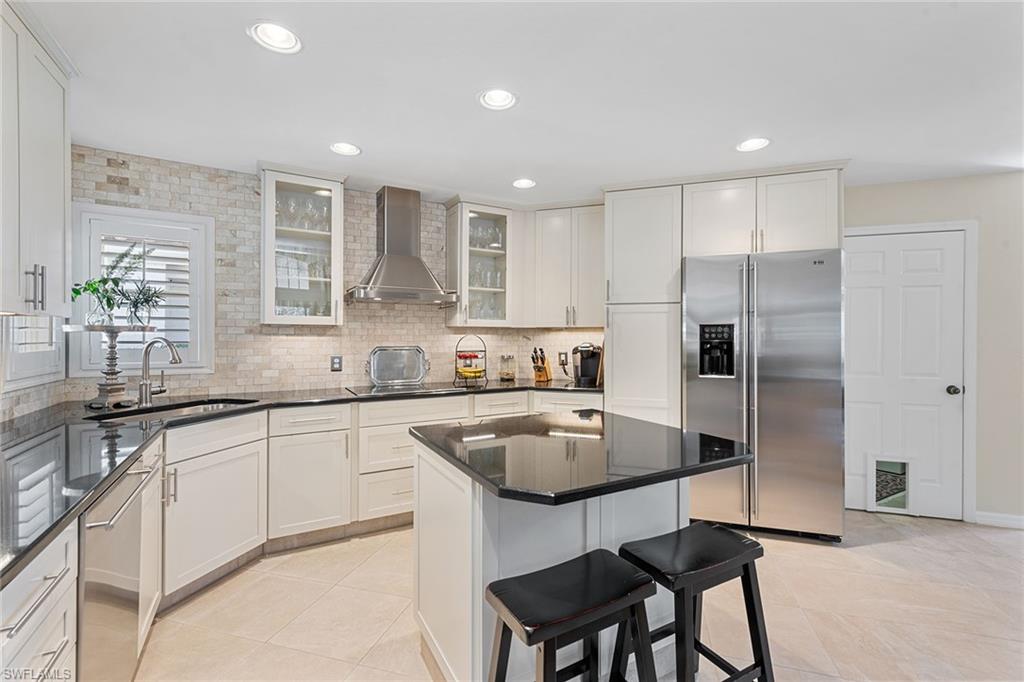 In the lush enclave of Eagle Creek Golf and Country Club, this exquisitely renovated villa redefines contemporary golf course living. Every element of this furnished three-bedroom, two-bath residence has been elevated with an emphasis on comfort, craftsmanship and connection to nature. New impact-resistant windows and doors frame the tranquil golf course and preserve views, bringing the outdoors in with a sense of calm sophistication. Inside, soaring vaulted ceilings with architectural skylights and two screened atriums flood the open layout with natural light, illuminating refined details such as imported Italian tile, updated interior doors and moldings, custom window coverings, and luxurious furnishings. At the heart of the home, the beautiful kitchen blends form and function. Striking quartz countertops with a waterfall island anchor the space, complemented by premium appliances and thoughtful design that invites daily living and effortless entertaining. In addition to the incredible living spaces, one will also find spacious and well-appointed bedrooms, two luxury baths, custom closet-built-ins and convenience of a one-and-a-half-car garage. Just a short distance away, the newly renovated clubhouse offers championship golf, refined dining and a vibrant social atmosphere. For those seeking leisure and wellness, the nearby Crystal Lake clubhouse presents outdoor dining, poolside relaxation, a fitness facility, pickleball, tennis and more. This one-of-a-kind residence invites you to experience the art of living beautifully in one of Southwest Florida’s intimate golf communities. Membership required.