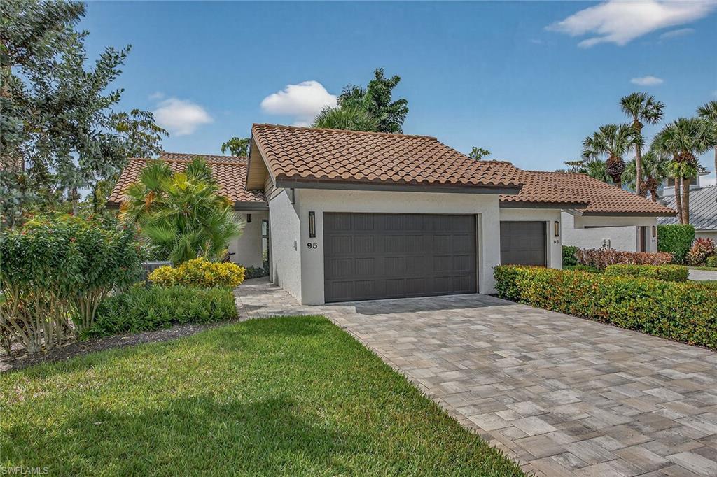 Experience elevated living in this stunning designer-remodeled and fully furnished three-bedroom, three-bath first-floor residence in the sought-after Eagle Creek Golf & Country Club. Thoughtfully reimagined from top to bottom, this end-unit home blends modern luxury with serene golf course living. Enter inside to discover premium white-oak engineered wood flooring, fresh contemporary paint throughout, and a beautifully updated kitchen featuring white wood cabinetry, quartz countertops, and top-tier appliances. The expansive floor plan offers both comfort and sophistication, highlighted by a welcoming living room and an impressive great room. Floor-to-ceiling sliding glass doors frame sweeping panoramic views of the golf course, inviting the outdoors into your daily living experience. The primary suite is a private sanctuary overlooking the greens, offering a generous walk-in closet and a luxuriously remodeled spa-like bath with designer finishes. A charming nook within the suite provides a space for an at-home office, complete with tranquil views. Guests will enjoy exceptional privacy thanks to the split-bedroom layout. Each of the two guest bedrooms is spacious, elegantly furnished and paired with its fully remodeled en-suite bath. Additional features include a detached one-car garage, an assigned parking space and convenient guest parking nearby. Near your door, Stonegate residents enjoy exclusive access to a private pool and spa, ideal for relaxation and sun-drenched afternoons. Beyond, the newly renovated Eagle Creek clubhouse offers championship golf, elevated dining and a dynamic year-round social scene. The nearby Crystal Lake clubhouse enhances the lifestyle with outdoor dining, a state-of-the-art fitness center, tennis and pickleball courts, and a resort-style pool surrounded by lush tropical landscaping. This exceptional residence is more than a home, it is an invitation to embrace the desired Naples lifestyle, defined by luxury, leisure and unmatched community amenities. Membership required.