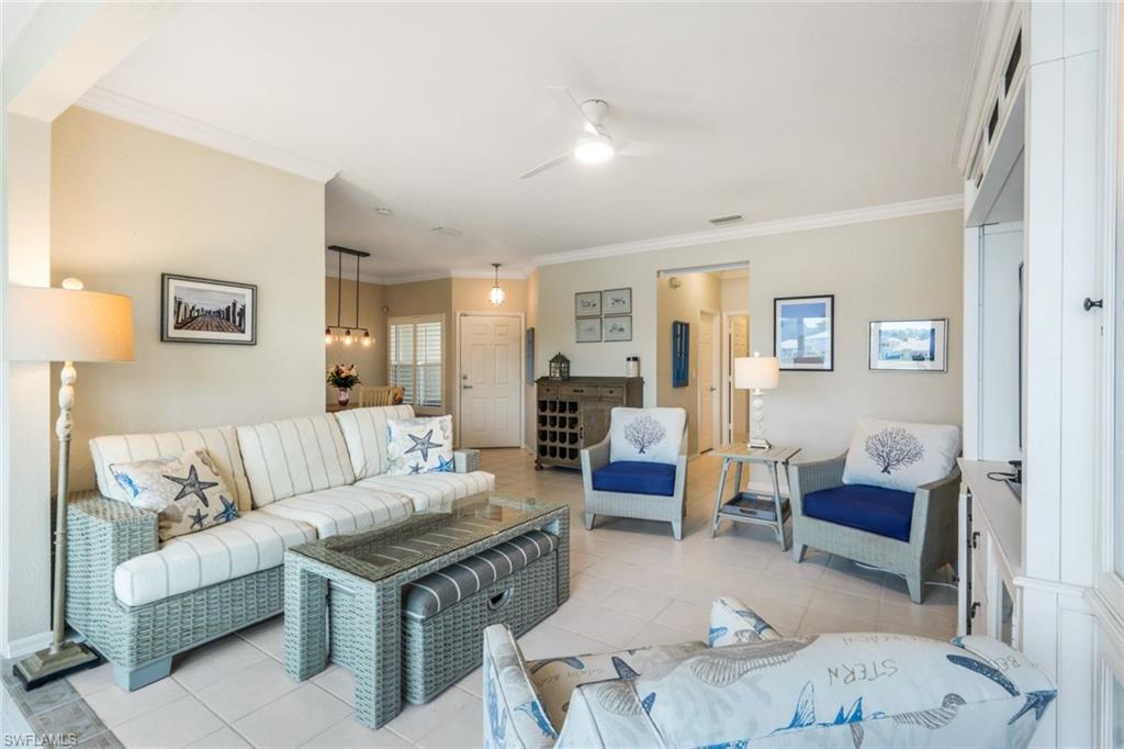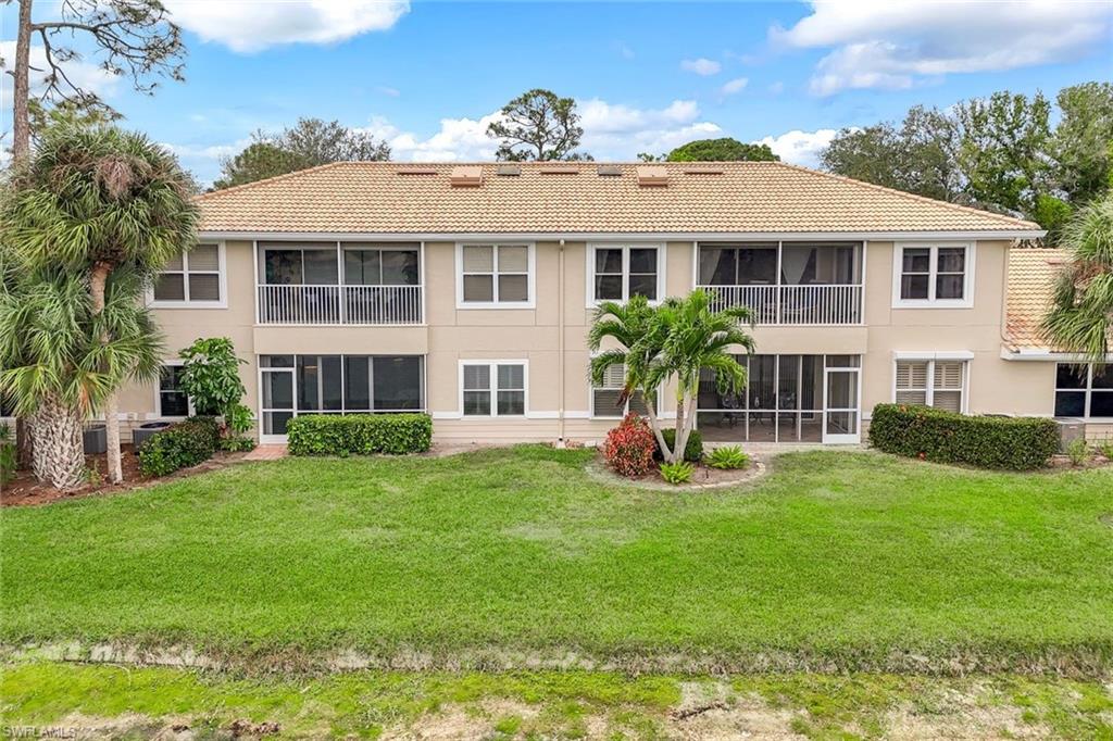 Situated in a charming enclave with an undeniably convenient location. This is a rarely occupied, updated, turnkey furnished, two-bedroom, two-bath, first-floor coach home with NO FLOODING during Ian, Helene, or Milton. The lanai has a private lake view, retractable windows, and a storm door that allows you to enjoy it even in inclement weather. It also has an attached garage, newer mechanicals, and appliances. The Gulf of Mexico beaches are within minutes, as well as the Mercato, where you'll find dining, shopping, and entertainment. Places of worship, medical facilities, and more are also only minutes away. Enjoy the community's two pools/spas, tennis/pickleball courts, and a very active social agenda in season.