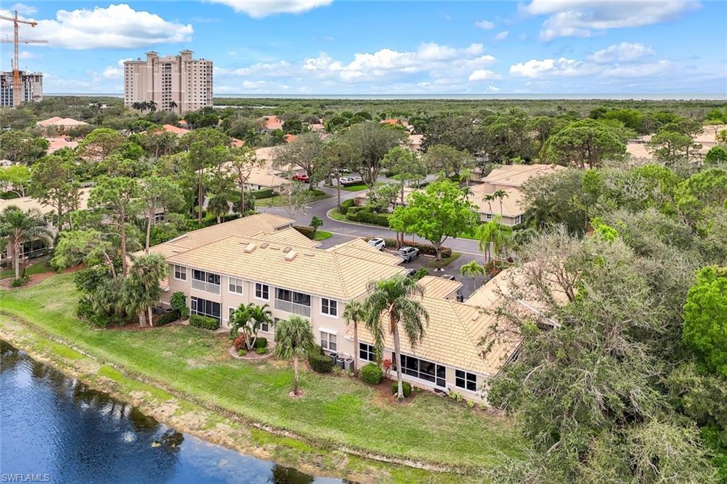 Villages of Emerald Bay is the perfect location! This first-floor condo truly feels like home. From the inviting entry courtyard to the stunning lake views, you'll want to move right in. The split-bedroom layout provides everyone with their own space. The home features new flooring and fresh paint and is offered turnkey furnished. Villages of Emerald Bay is a wonderful community that's everyone's dream, conveniently located near multiple beaches. It is not in an area that requires flood insurance and has no history of flooding. You can reach Bonita Beach, Barefoot Beach, or Wiggins Pass in just moments and enjoy shopping at Mercato or Coconut Point. The North Naples location also makes travel to RSW a breeze. This vibrant community of Villages of Emerald Bay offers two pools and spas, an active clubhouse, and tennis/pickleball courts.