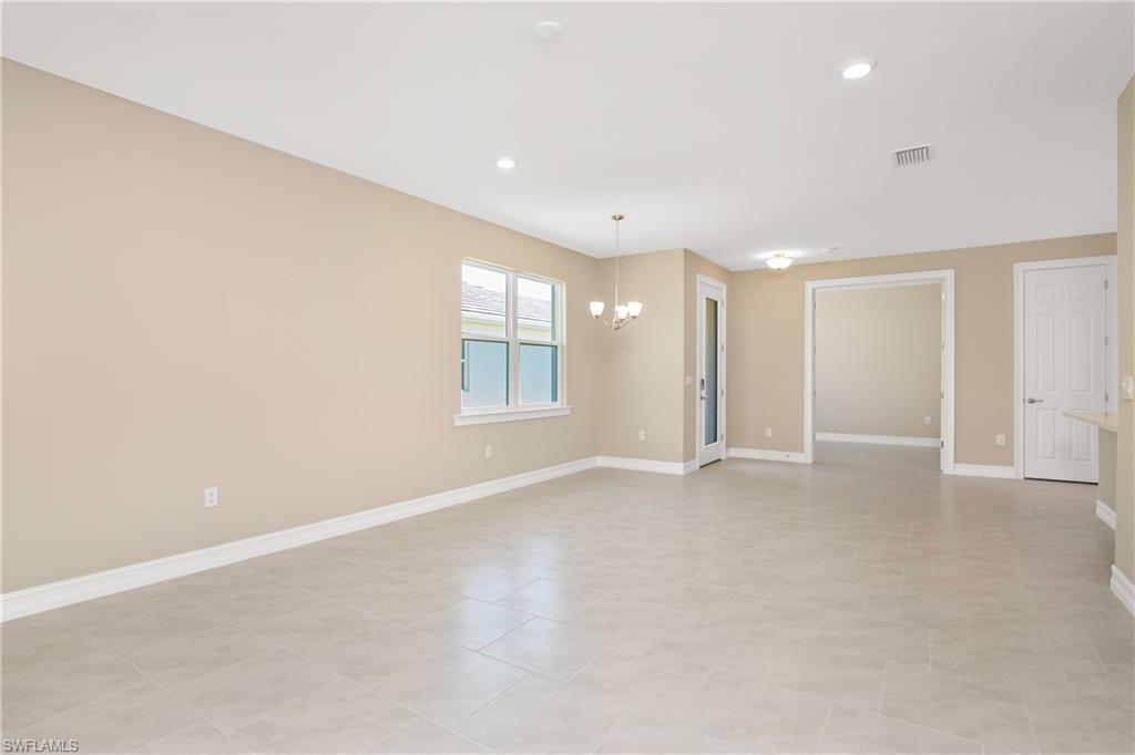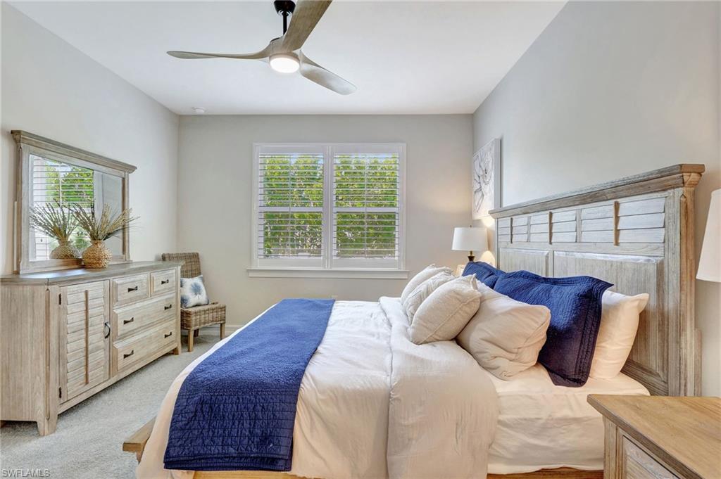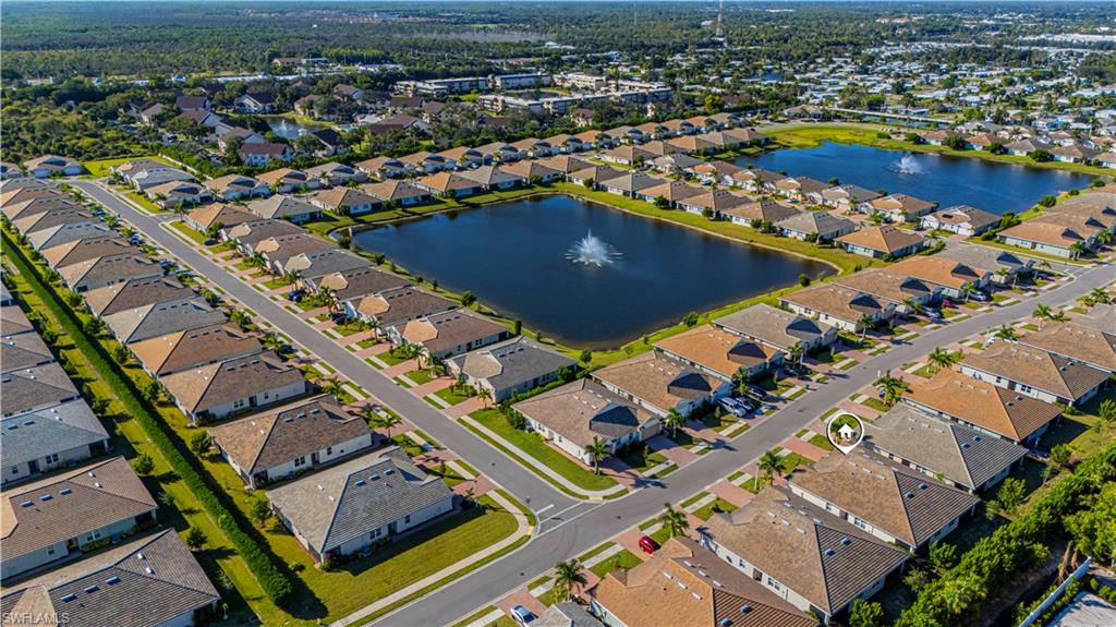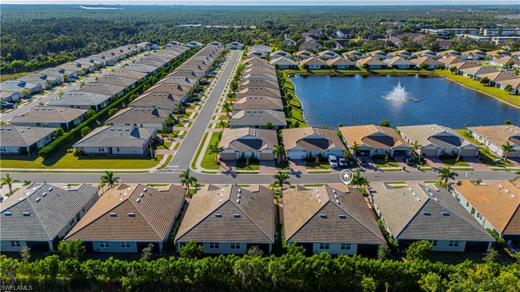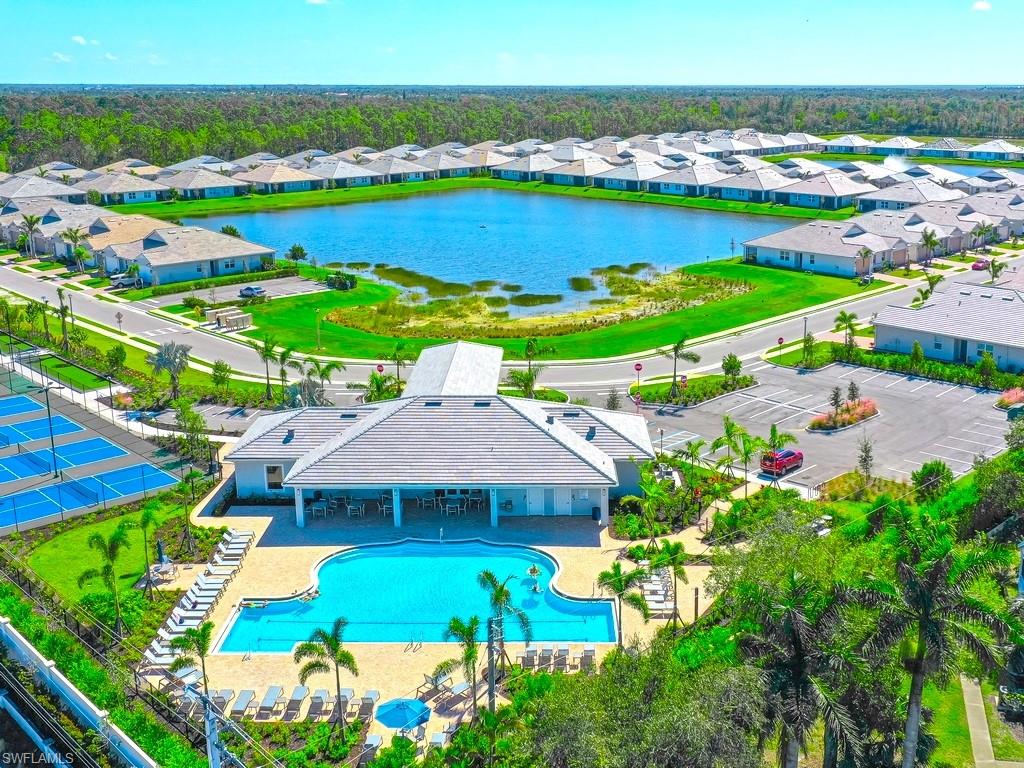Built in 2023, this immaculate 2 bedroom plus den villa, showcases serene lake and fountain views from the private screened lanai. The sunshade was added for extra privacy while enjoying the sounds from the fountain and sipping your favorite beverage. The open floor plan features plantation shutters, high ceilings, and abundant natural light. The kitchen offers quartz countertops, stainless steel appliances, and a large wrap around bar. The master suite includes a custom walk-in closet, double sink vanity and large walk-in shower. Additional highlights: epoxy-finished garage floor, split-bedroom layout, and versatile den for extra guests or private office space. Separate laundry room with cabinets for storage. Brand new front door screen and numerous ceiling fans, allows the SWFL breeze to pass through the home during the fabulous winter months the Paradise Coast is known for. Other extras for you are the bath mirrors and enhanced landscaping. Enbrook’s gated community amenities include a clubhouse, resort pool, fitness center, tennis, pickleball, and bocce. Ideally located near shopping, dining, and the beaches of Naples and Marco Island. The Marco Island Judge Jolly bridge is 7 miles and Naple's 5th Ave. is 11 miles. Being a Collier County resident, you can enjoy any of the county beach parking lots with your free parking sticker. Seller has made application with FEMA to remove the required Flood Insurance on this property making it possible to finance without flood insurance