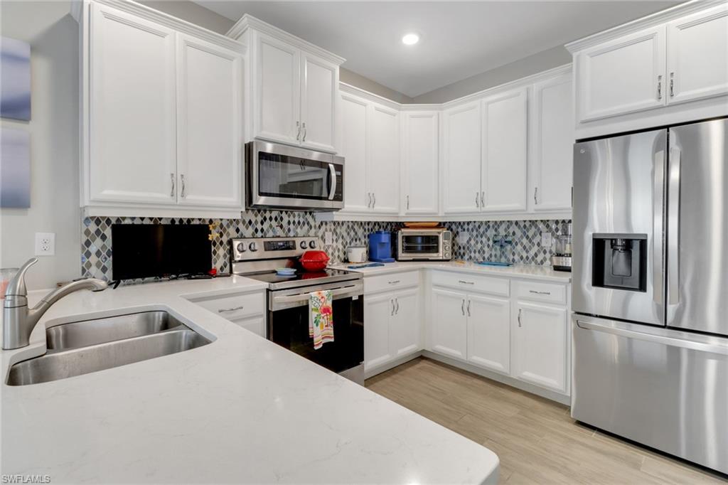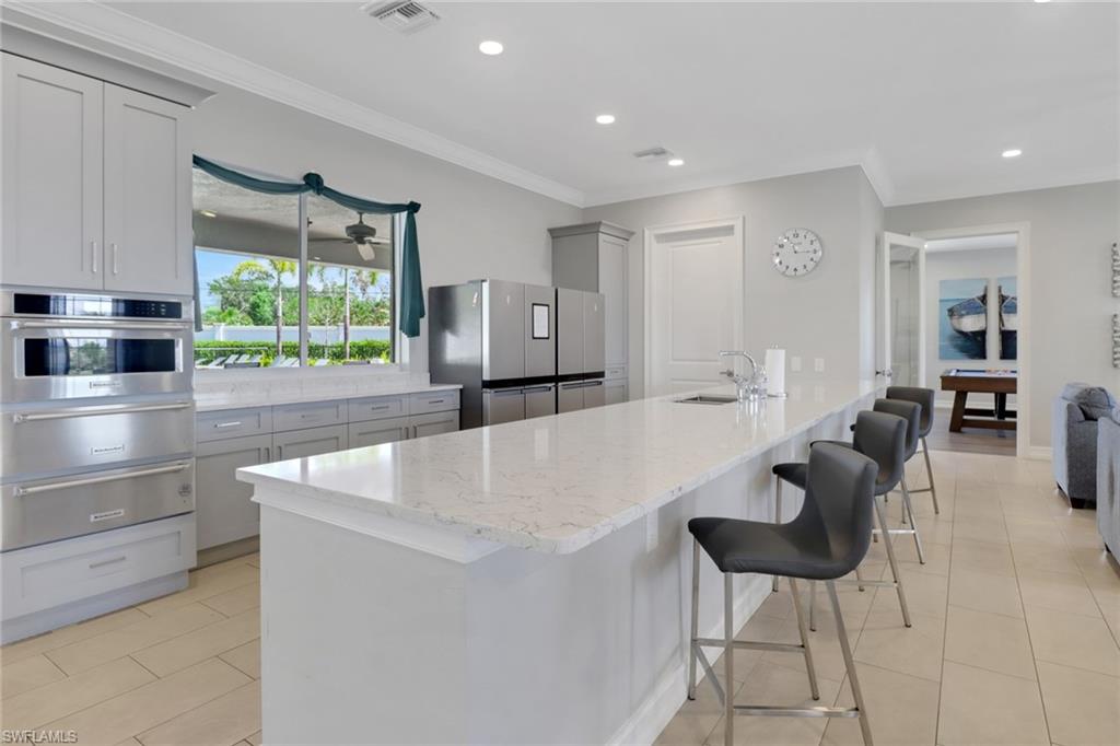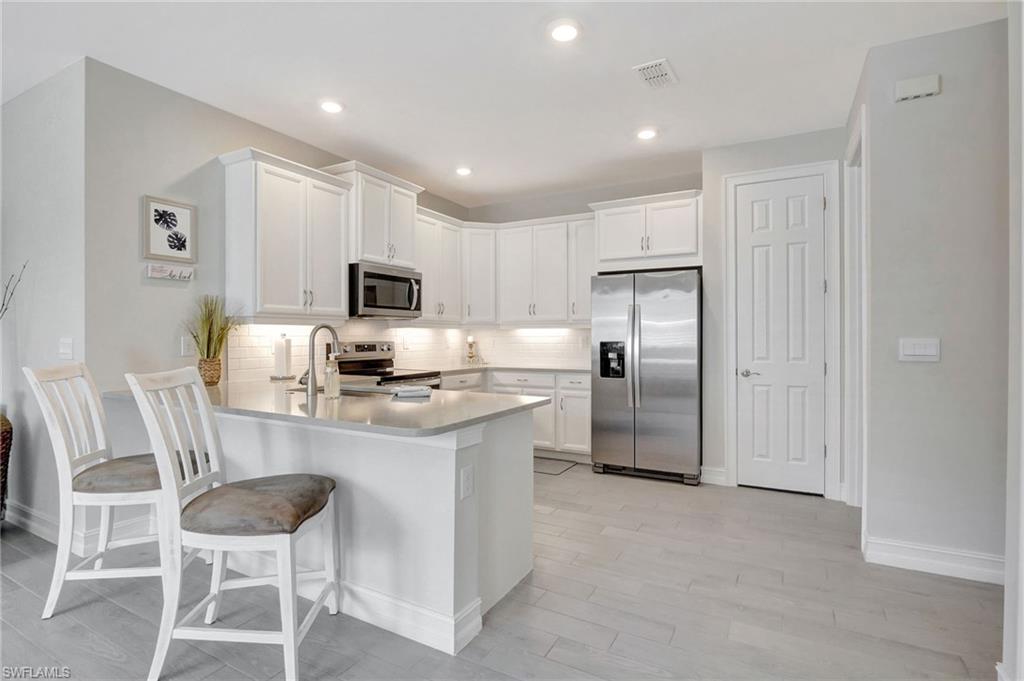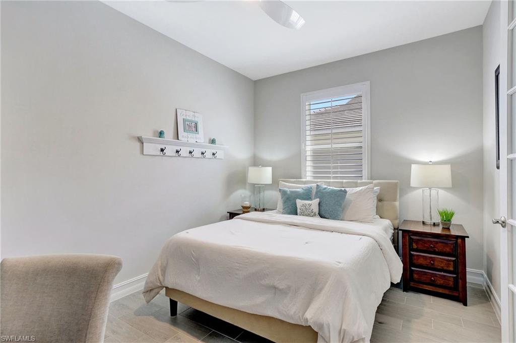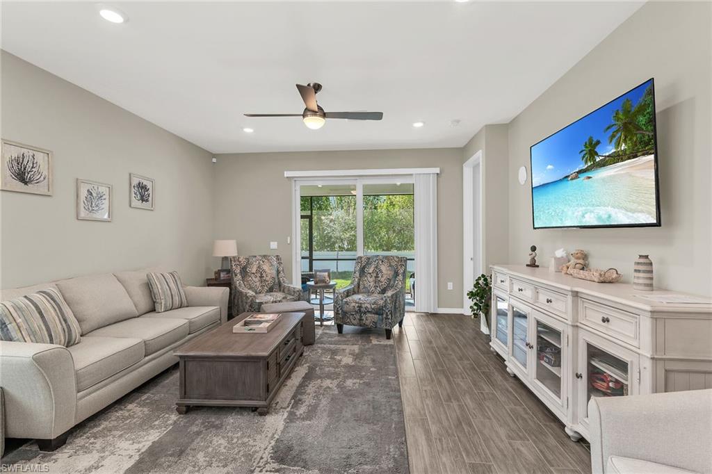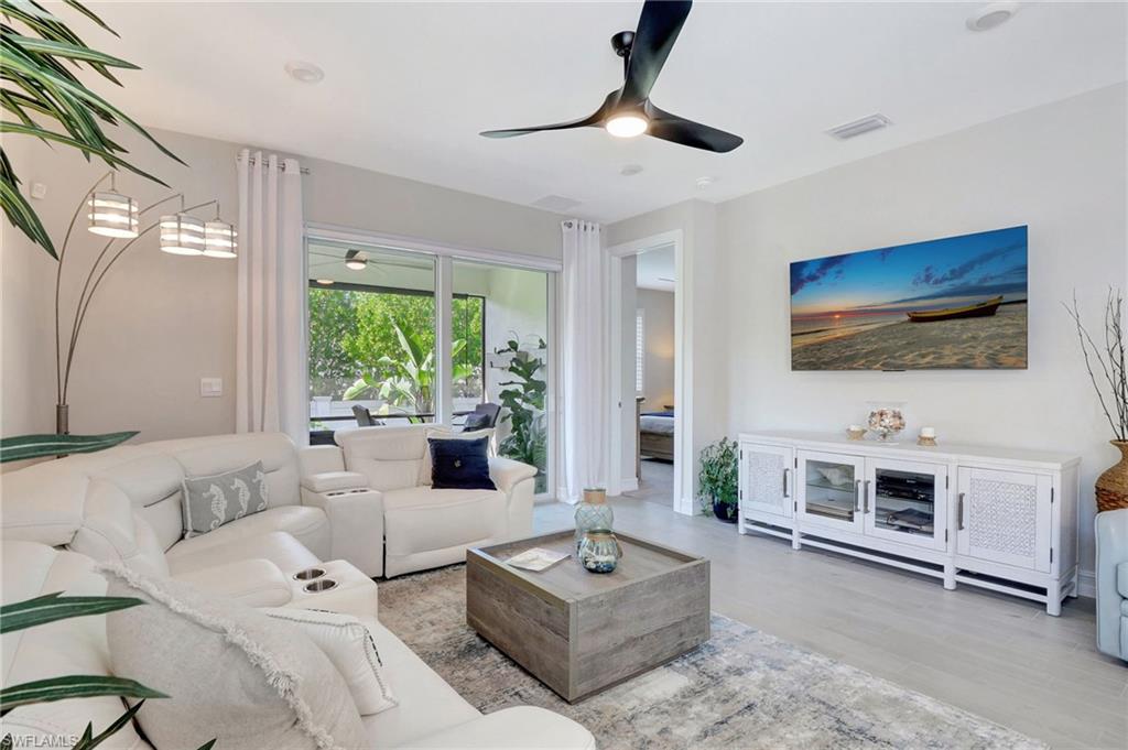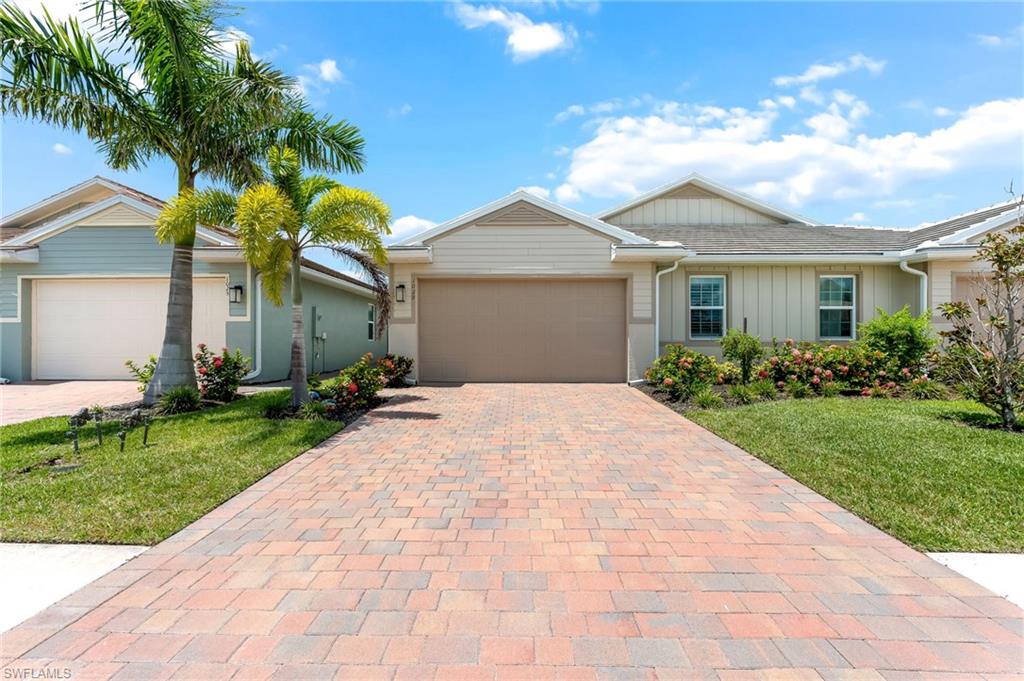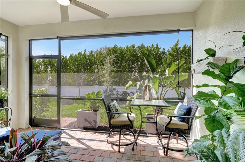 PRICED TO SELL!! MOVE IN READY—2023 BUILD!! Welcome to this elegant and meticulously maintained home in beautiful Naples, Florida! This home is one of the few villa's in Enbrook that is located in "X" flood zone which means NO flood insurance required AND comes with transferable Builder Home Warranty. A stunning 2 bedroom + den, 2 bathroom residence boasts modern features, high end finishes and an inviting open concept design - perfect for both relaxation and entertaining. You will fall in love with the stylish tile wood plank flooring, modern lighting and ceiling fans and premium finishes throughout. Each hurricane-rated window is equipped with beautiful custom Plantation Shutters. The large hurricane-rated lanai slider has a wonderful custom power shade to operate at the push of a button to allow the natural light to flow throughout. The gourmet kitchen boasts upgraded cabinetry, stainless steel appliances, convection oven, quartz countertops and large island to enjoy your morning breakfast. The luxurious primary suite features a walk in closet with custom closet organization, dual vanity and large walk-in tiled shower. This SMART HOME complete with an added ADT Alarm System with window and door sensors, plus cameras will not only provide extra security but allow you to control your home selected lights, thermostat, doors including garage electronically by the touch of your cell phone. The covered screened-in lanai is a perfect oasis for enjoying Florida's beautiful year-round weather. In addition to the private western facing lot you will notice the added benefit of extra land on this one-of-a kind lot. Located in the vibrant Enbrook community, this home offers resort-style amenities including a modern clubhouse with fitness center, pool table, kitchen use and plenty of seating for your party, sparkling pool, pickleball and tennis courts! Enjoy easy access to Naples' and Marco Island pristine beaches, a wide variety of shopping, tantalizing dining and entertainment galore while living in a peaceful and picturesque neighborhood. Don't miss this incredible opportunity to own a beautiful-easy-to-maintain 2-car garage villa in one of Naples' most desirable pet-friendly communities! Schedule your private tour today!