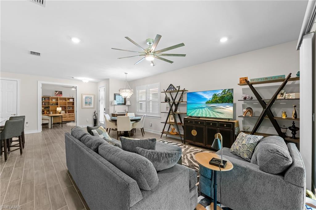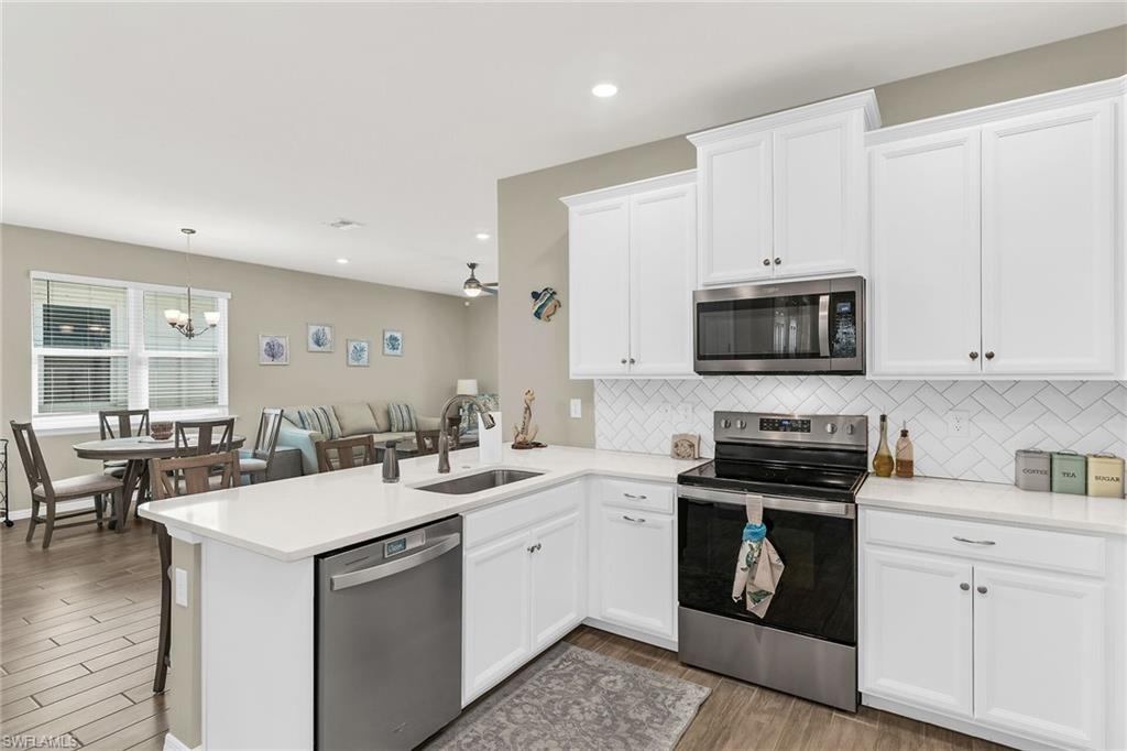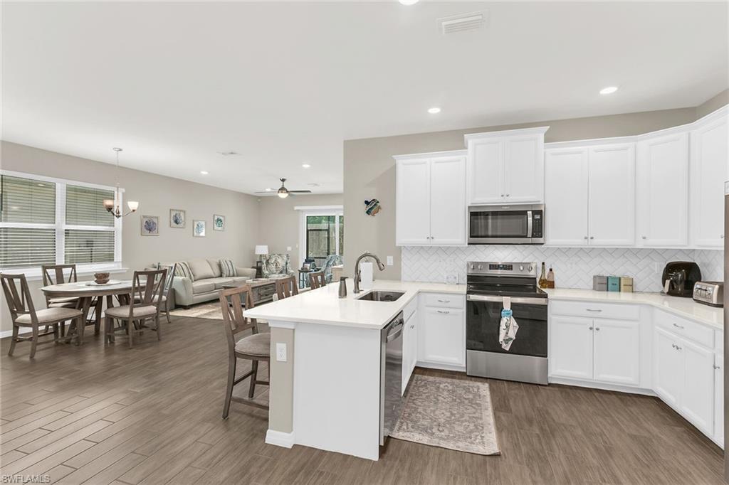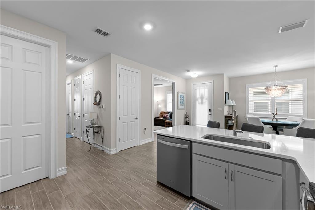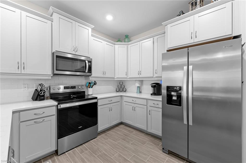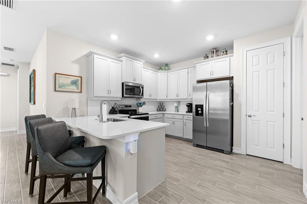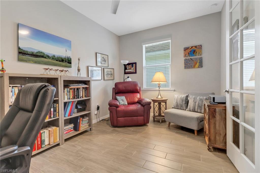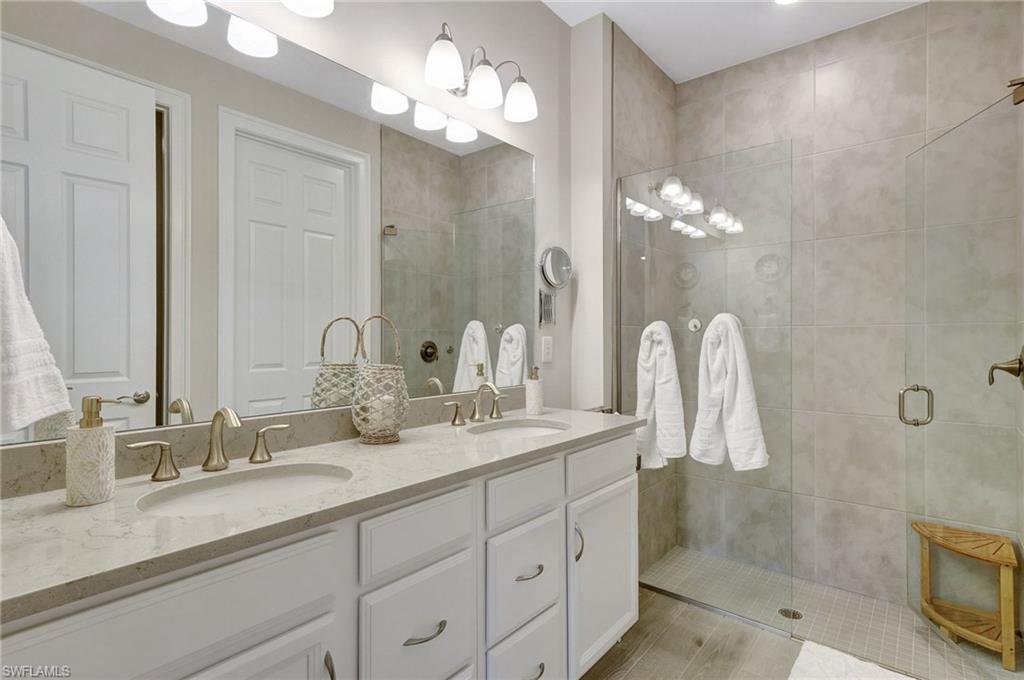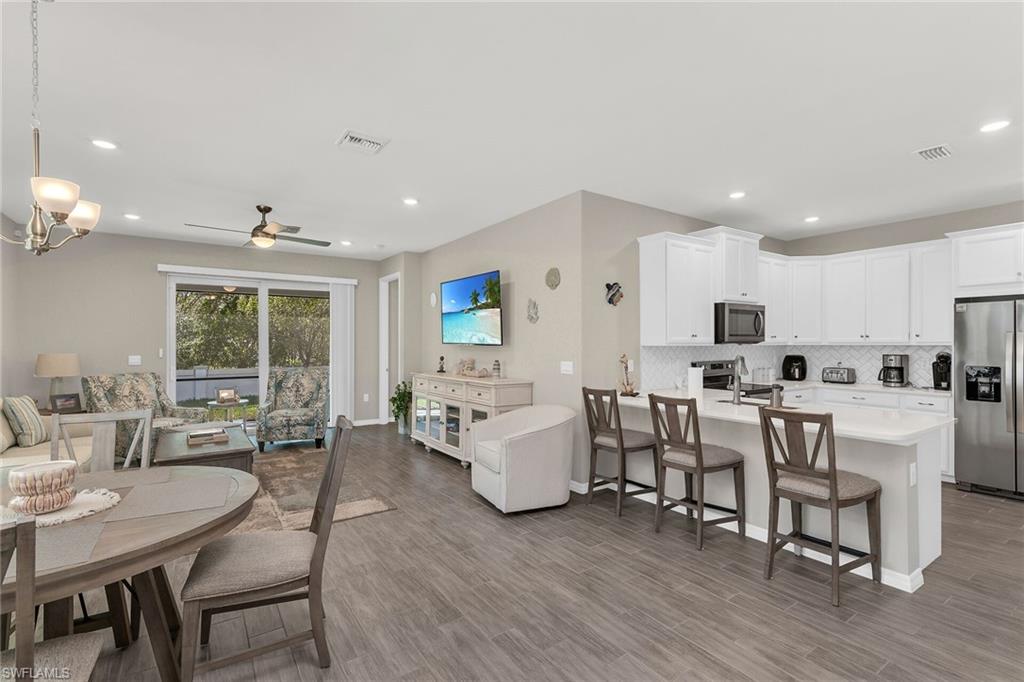 PRICED TO SELL!! MOVE IN READY—2023 BUILD!! Welcome to this elegant and meticulously maintained home in beautiful Naples, Florida! This home is one of the few villa's in Enbrook that is located in "X" flood zone which means NO flood insurance required AND comes with transferable Builder Home Warranty. A stunning 2 bedroom + den, 2 bathroom residence boasts modern features, high end finishes and an inviting open concept design - perfect for both relaxation and entertaining. You will fall in love with the stylish tile wood plank flooring, modern lighting and ceiling fans and premium finishes throughout. Each hurricane-rated window is equipped with beautiful custom Plantation Shutters. The large hurricane-rated lanai slider has a wonderful custom power shade to operate at the push of a button to allow the natural light to flow throughout. The gourmet kitchen boasts upgraded cabinetry, stainless steel appliances, convection oven, quartz countertops and large island to enjoy your morning breakfast. The luxurious primary suite features a walk in closet with custom closet organization, dual vanity and large walk-in tiled shower. This SMART HOME complete with an added ADT Alarm System with window and door sensors, plus cameras will not only provide extra security but allow you to control your home selected lights, thermostat, doors including garage electronically by the touch of your cell phone. The covered screened-in lanai is a perfect oasis for enjoying Florida's beautiful year-round weather. In addition to the private western facing lot you will notice the added benefit of extra land on this one-of-a kind lot. Located in the vibrant Enbrook community, this home offers resort-style amenities including a modern clubhouse with fitness center, pool table, kitchen use and plenty of seating for your party, sparkling pool, pickleball and tennis courts! Enjoy easy access to Naples' and Marco Island pristine beaches, a wide variety of shopping, tantalizing dining and entertainment galore while living in a peaceful and picturesque neighborhood. Don't miss this incredible opportunity to own a beautiful-easy-to-maintain 2-car garage villa in one of Naples' most desirable pet-friendly communities! Schedule your private tour today!