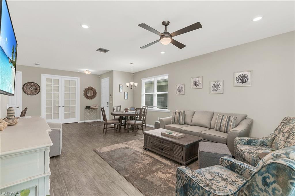 Welcome to a stunning Carrington model villa in the desirable Enbrook community—perfect for the savvy investor or anyone seeking the ideal Southwest Florida lifestyle. This newer construction villa offers exceptional investment potential for long-term or seasonal rentals. Investors appreciate the lower upkeep costs and better energy efficiency that come with a newer build. The low HOA fees are a major advantage, allowing you to maximize your return on investment. This home offers a perfect blend of modern style and comfortable living, starting with its inviting open-concept floor plan. The heart of the home is the gourmet kitchen, a chef's delight featuring custom-designed cabinetry, solid-surface countertops, and a handy breakfast bar for casual dining. This desirable villa includes two bedrooms, a spacious den, two full bathrooms, and a two-car garage. The versatile den is perfect as a home office, media room, or a second living space. Step out to the screened-in lanai to relax and enjoy the beautiful Florida weather year-round. This home has been thoughtfully upgraded throughout with premium features like plantation shutters, updated light fixtures, and ceiling fans. Enjoy optimal storage with custom closets and peace of mind from impact-resistant windows and upgraded flooring. Enbrook provides a true resort-style lifestyle with fantastic amenities, including a clubhouse with a large social room and catering kitchen, a fitness center, a sparkling resort-style pool, and courts for tennis, bocce, and pickleball. You're just a short drive from the shopping and dining of Downtown 5th Avenue, Marco Island, and pristine Gulf beaches. Don't miss this opportunity to own an exceptional property offering the best of Southwest Florida living. Schedule your showing today!