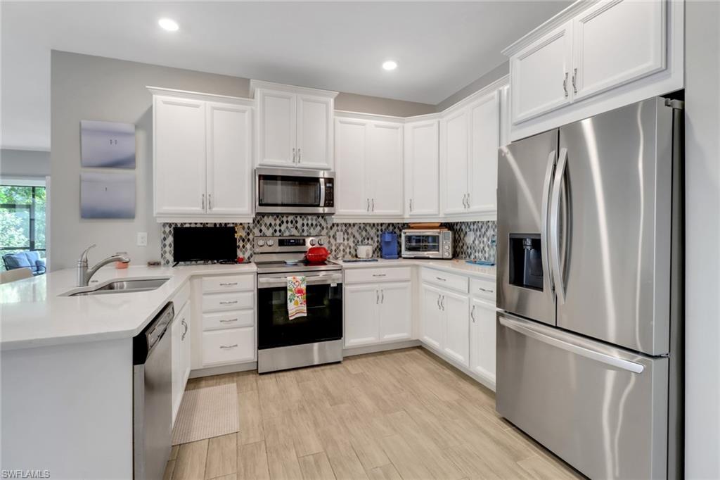 Elegant Naples Villa... Welcome to this meticulously maintained and elegantly upgraded home in the vibrant Enbrook community of beautiful Naples, Florida! This stunning 2-bedroom + den, 2-bathroom residence offers modern features, high-end finishes, and an inviting open-concept design—perfect for both relaxation and entertaining. A brand-new home generator and generator electrical hookup -Negotiable. Enjoy peace of mind during Florida's storm season! Features You'll Love: Stylish tile wood plank flooring throughout for a sleek and modern touch. Hurricane-rated windows. Large hurricane-rated lanai slider. Gourmet kitchen with upgraded cabinetry, stainless steel appliances, quartz countertops, and a spacious island—perfect for morning coffee or entertaining. Luxurious primary suite featuring a custom walk-in closet, dual vanity, and a large walk-in tiled shower. SMART HOME technology—control selected lights, thermostat, doors (including garage), and security cameras right from your phone! Plus, a top-tier SimpliSafe alarm system with window and door sensors for extra peace of mind. Outdoor & Community Perks: Covered, screened-in lanai—your private oasis for enjoying Florida's year-round sunshine. One-of-a-kind lot with extra green space for added privacy. Resort-style amenities: Modern clubhouse with a pool table, kitchen, and gathering spaces. Sparkling community pool for relaxation. Fitness center to keep active. Pickleball and tennis courts for friendly competition. Prime Location: Close to top shopping, dining, and entertainment options. Pet-friendly community with plenty of scenic walking areas. Conveniently located within minutes from downtown Naples & Marco Island—your paradise escape awaits! Don't Miss This Opportunity! Schedule your private tour today!