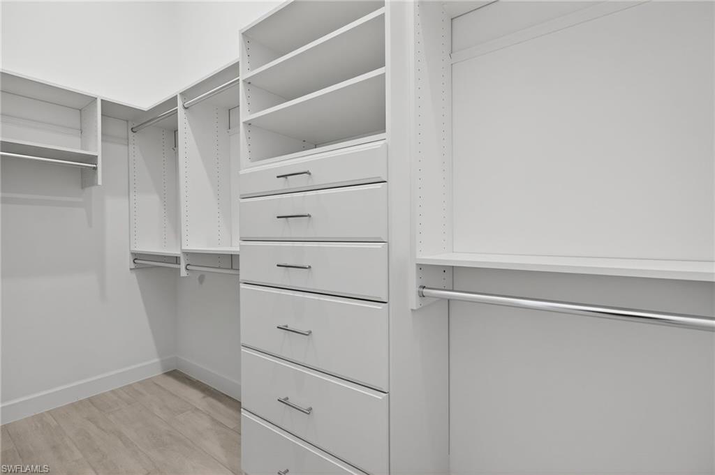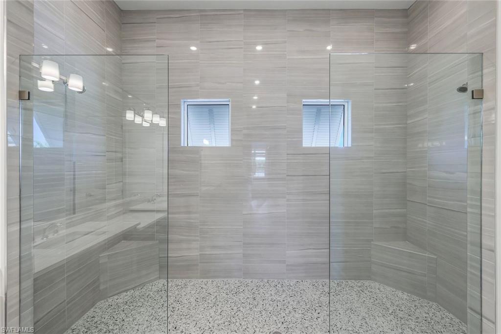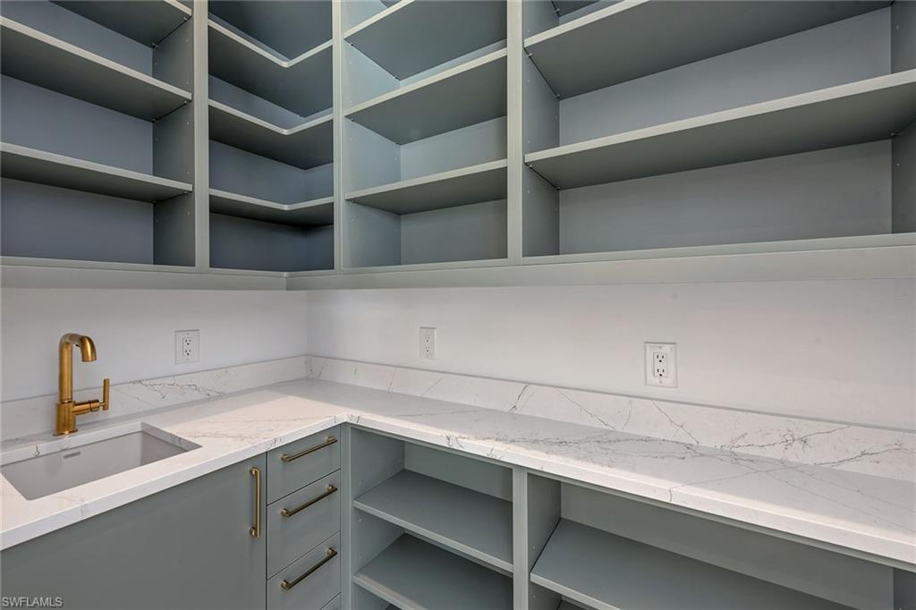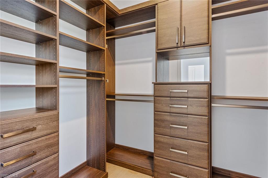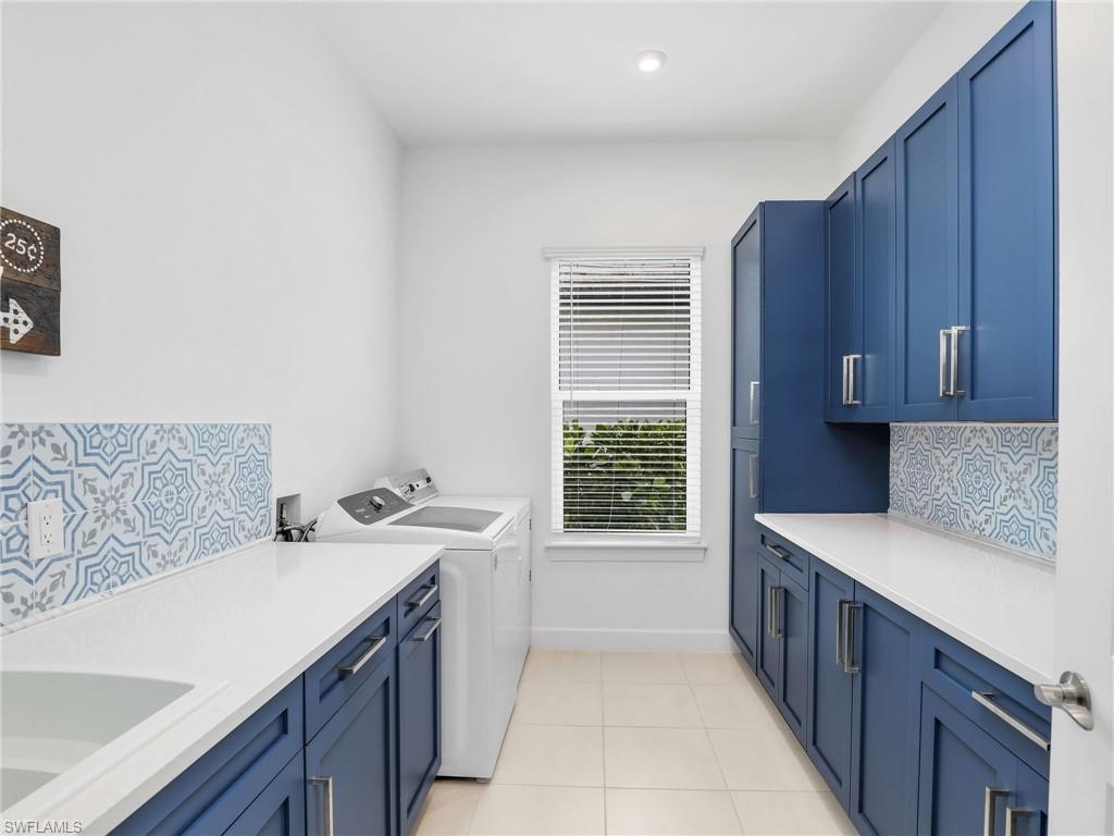 Built in 2024 and showcasing the finest in custom design, this lakefront home in Esplanade by the Islands offers luxurious living with wide, private water views and top-tier finishes throughout. Unlike a standard builder-grade home, every detail has been thoughtfully curated for elegance and function. The flexible floor plan includes four bedrooms, two flex rooms, a den, four and a half baths, and a three-car garage across two levels. The main living areas feature porcelain flooring, soaring ceilings, crown molding, designer lighting, and solid wood interior doors, while custom wood flooring enhances the bedrooms. Every bedroom features a custom-designed closet for optimal organization and luxury. A full security system, smart home wiring, and central vacuum provide modern convenience and peace of mind. The home is built for elegance and durability, featuring a tile roof, hurricane-impact windows and doors, and a wide brick paver driveway that enhances curb appeal and function. The gourmet kitchen impresses with Taj Mahal quartzite counters and backsplash, custom modern cabinetry with in-cabinet lighting, a large center island, and high-end appliances including a 60-inch Wolf dual fuel range with griddle and infrared charbroiler, pot filler, paneled 48-inch Sub-Zero refrigerator and wine cooler, and a paneled dishwasher. A spacious custom pantry adds extra storage, custom cabinetry, counter space and a built-in sink. The breakfast area with a picture corner window overlooks the lake and flows into a grand living room with fireplace, floating shelves and built-in cabinetry. Glass sliders with transom windows open to a serene outdoor space featuring a picture-frame screened lanai, custom Nassau-built pool and spa with waterfall feature, and an imported beveled Italian marble deck. The large covered outdoor living area includes recessed lighting, and all hookups are in place for a future outdoor kitchen, ideal for expanding your entertaining options. The owner’s suite offers lanai access, lake views, double-door entry, tray ceiling, two custom walk-in closets and a spa-like bath with soaking tub, walk-in shower with rain head and bench, dual vanities and full-width mirror. Two guest bedrooms on the main level each have en-suite baths and custom closets, one doubles as a pool bath. A flex room with lake views and lanai access provides space for a fifth bedroom or gym. Upstairs, a spacious media or game room with oak staircase entry, kitchenette with cabinetry, under-cabinet lighting and mini refrigerator, plus a full bath, is complemented by another guest suite with en-suite bath. The den, accessed via French doors, makes an ideal office. A full laundry room includes Samsung washer/dryer, utility sink, custom cabinetry and additional storage. Residents enjoy a resort lifestyle with a private clubhouse, Bahama bar, fitness center, spa, courts, trails and events, just minutes from beaches, golf, dining, and shopping in Naples and Marco Island.