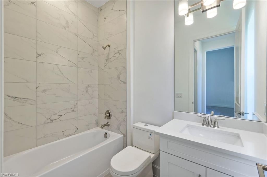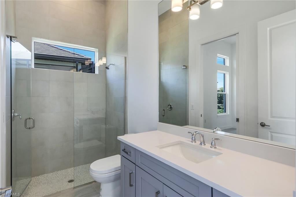 Welcome to a newly constructed Beacon model in Esplanade by the Islands, where refined design meets effortless living. Spanning over 4,000 square feet, this residence offers a versatile and spacious layout ideal for multigenerational living or hosting guests. Upon entry, soaring ceilings and natural light set the tone for the main living area, anchored by a fireplace and opening seamlessly to the chef’s kitchen. Designed for function and style, the kitchen features custom cabinetry, a center island, premium appliances and a wine refrigerator, ideal for entertaining. The primary suite is on the main level and includes a soaking tub, walk-in shower and dual oversized closets, providing a tranquil retreat with thoughtful separation from guest spaces. Upstairs, a private suite offers a kitchenette, one full and one half bath, making it ideal for long-term visitors, home office needs or live-in support. Outdoor living is elevated with an extended lanai and a waterfall-edge pool, creating an inviting space for relaxation and entertainment. The area is fitted for a future outdoor kitchen and includes a full bath accessible from the pool deck. A three-car garage and multiple storage areas throughout the home provide ample functionality for seasonal and full-time living. The lake views are spectacular. Esplanade by the Islands is a gated community offering a resort lifestyle with access to a private clubhouse, state-of-the-art fitness center, tennis and pickleball courts, walking trails, spa services and dining. Residents enjoy a calendar of social events and wellness programming tailored to active, luxury-focused lifestyles. Just minutes from the beaches of Naples and Marco Island, and within close reach of shopping, dining, golf courses and cultural experiences of Fifth Avenue South, this home offers a complete Southwest Florida experience. Some photos have virtual staging.