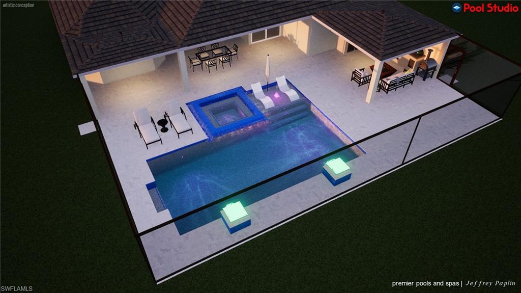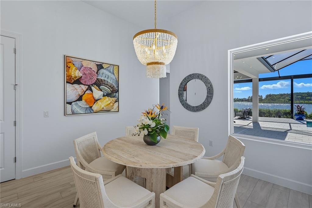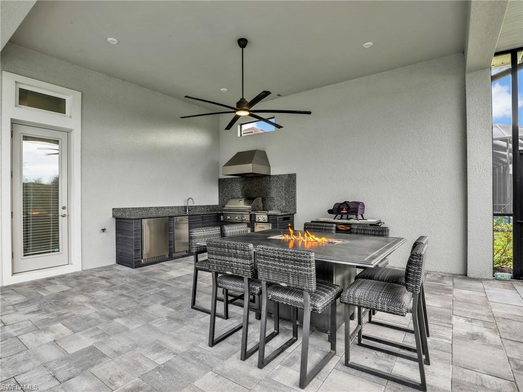 Waterfront luxury home with panoramic views! Experience wide-water views and exceptional coastal living in this luxurious four-bedroom, six-bath Beacon model located in the highly sought-after Esplanade by the Islands community. This never-lived-in, two-story residence is positioned on an oversized waterfront lot and shows like a professionally designed model home. Step inside to discover high-end finishes, an upgraded chef's kitchen with premium cabinetry and quartz countertops, and expansive hurricane-impact windows, sliders and doors that frame the breathtaking views. The great room features a stunning fireplace and seamless indoor-outdoor flow. Resort-style living continues outdoors with a custom-designed pool and spa, panoramic screen enclosure, and a fully equipped outdoor kitchen, ideal for entertaining. The second level offers additional bonus spaces, including a wet bar, ideal for guests and gatherings. This home also includes a Generac whole-house generator for peace of mind and year-round comfort. Residents of Esplanade by the Islands enjoy world-class amenities, including a resort-style pool, on-site restaurant, pickleball, tennis and a state-of-the-art fitness center, all just minutes from the renowned shops, dining and beaches of Fifth Avenue. Photos are virtually staged.