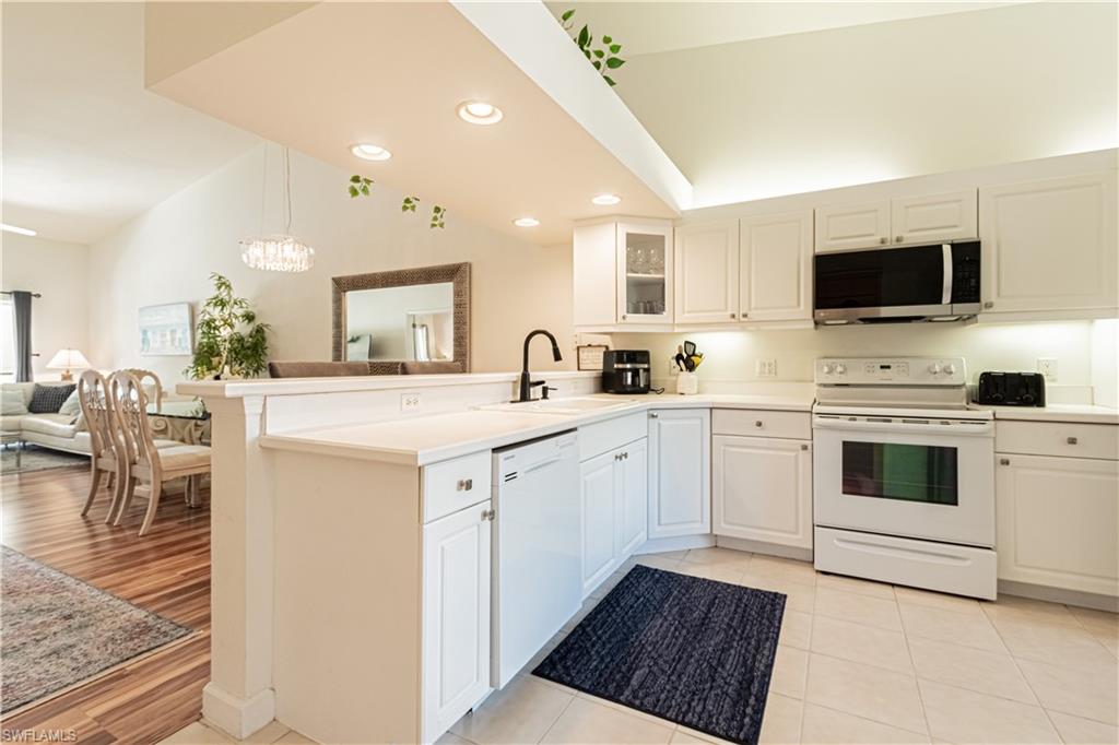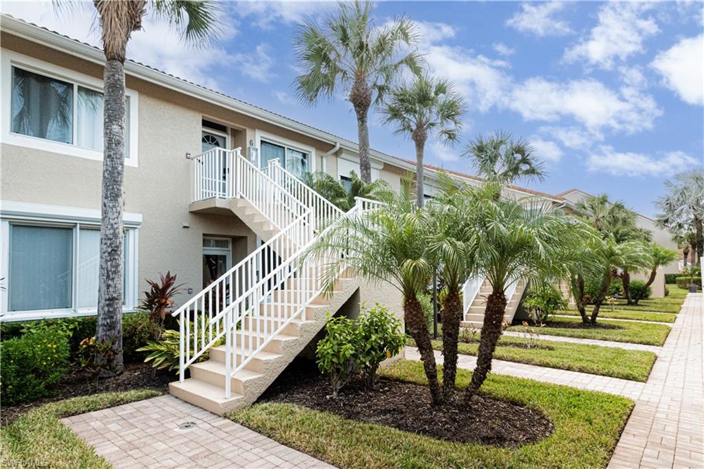 Welcome to this beautifully maintained 3-bedroom, 2-bath end-unit condo located on the second floor in the highly desirable Falling Waters community of Naples, FL. Enjoy stunning lake views from your private lanai, offering a serene and picturesque backdrop perfect for relaxing or entertaining. The spacious open-concept layout features tall, vaulted ceilings and abundant natural light, creating an airy and inviting atmosphere. The kitchen is well-appointed with granite countertops, modern appliances, ample cabinetry, and a breakfast bar that flows seamlessly into the dining and living areas. Tile flooring throughout adds to the home’s clean and cohesive design, while roll-down hurricane protection on all windows provides peace of mind. Additional highlights include a private garage for secure parking and extra storage. Falling Waters is known for its resort-style amenities, including one of Naples’ most beautiful pools, tennis courts, bocce, and lush tropical landscaping throughout the community. Condo fees include water, WIFI and basic cable. Located just minutes from Naples’ world-class beaches, shopping, and dining, this condo combines comfort, convenience, and lifestyle in one perfect package. Don’t miss the opportunity to make this exceptional home yours!