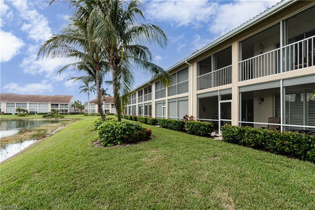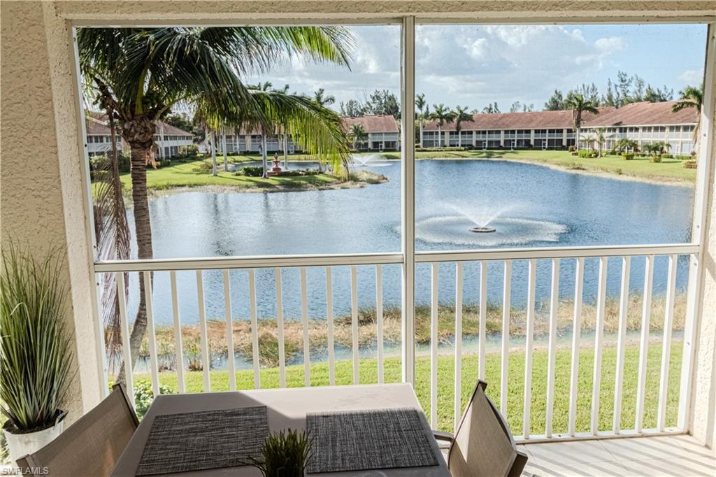 Now offering one of the most beautiful listings in Falling Waters! AMAZING VIEWS! This FIRST-FLOOR END-UNIT features 3 bedrooms and 2 full bathrooms at nearly 1600sqft of living space. This unit also comes with a garage! Lots of upgrades over the years including electric roll down hurricane protection, new kitchen countertops, appliances, newer AC (2023), New Hot water heater (2021), plantation shutters, frameless glass shower enclosure and much more. Unit is situated perfectly on the lake with a stunning view. This stylish condo is being offered TURNKEY FURNISHED with Tommy Bahama furniture. HOA fees include Wi-Fi, cable, water, all exterior maintenance, security, etc. Falling Waters is a highly sought-after resort-style community offering a wide range of amenities, including one of Naples most beautiful pools, tennis courts, bocce, and lush landscaping throughout the property. Located just a short drive from Naples’ renowned beaches, shopping, and dining, this condo is the perfect place to enjoy both relaxation and convenience. Don’t miss out on the opportunity to own this stunning first-floor 3 bedroom condo in one of Naples’ most sought-after communities!