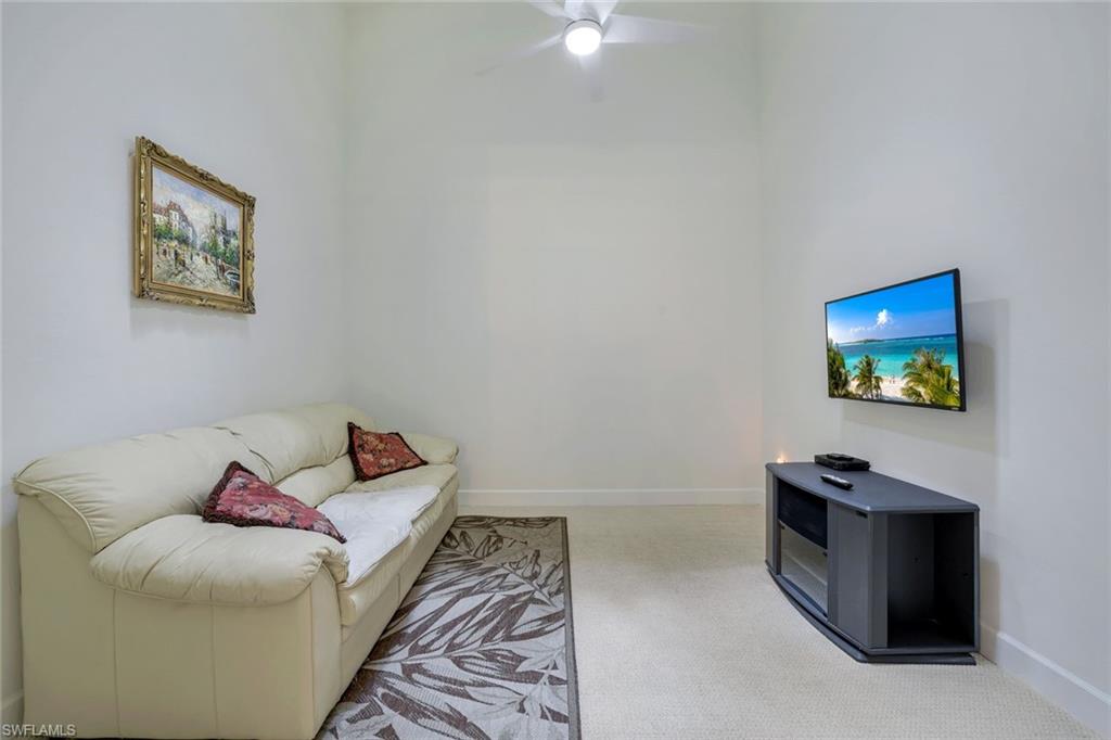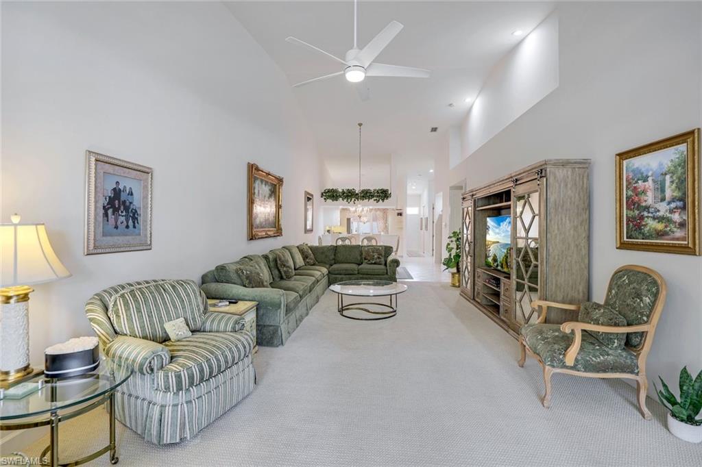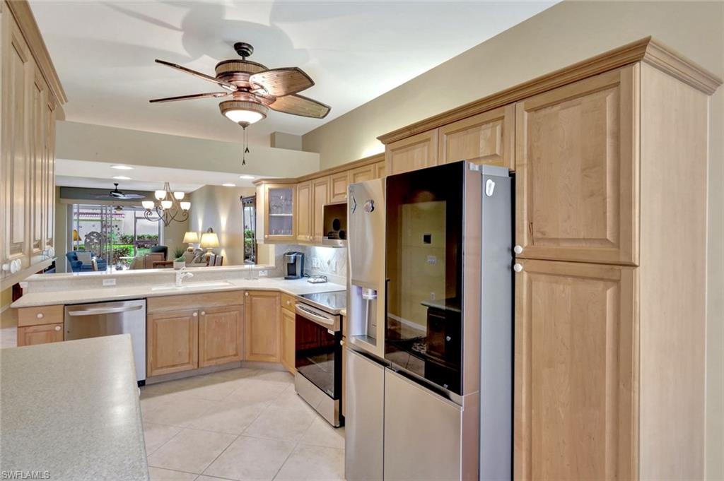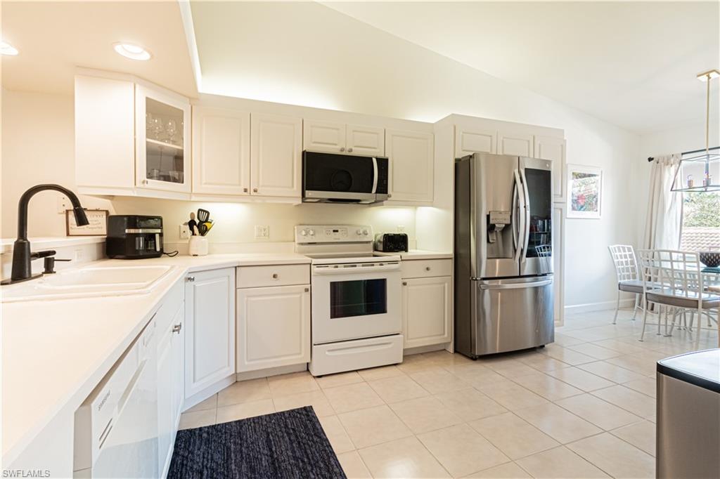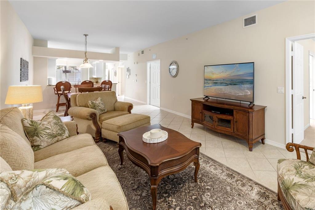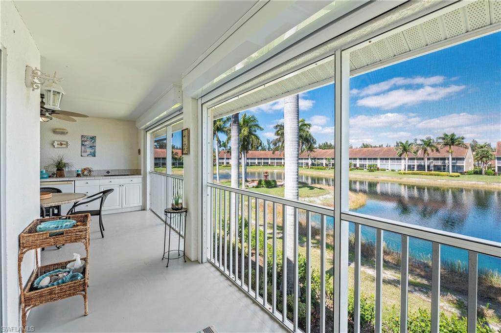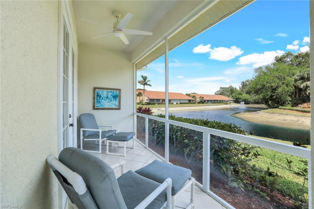 This very spacious FIRST-FLOOR, 3-bedroom, 2-bath FURNISHED END-UNIT condo offers the perfect blend of comfort, convenience, and stunning LAKEFRONT VIEWS. Built in 2006, this residence features 1,573 square feet of interior living space with an open and inviting floor plan. The OVERSIZED KITCHEN with a breakfast dining area and breakfast bar, flows seamlessly into the living and dining room, creating a comfortable oasis for everyday living or entertaining. The large primary suite has lake views, a spacious closet, and an ensuite bath with dual sinks; while the private guest bedroom suite with pocket doors offers a peaceful retreat for visitors. A third bedroom provides enormous flexibility for use as a home office or den. Pass through the sliders off the main living area to an outside living oasis - a screened lanai, where you overlook the GLISTENING LAKE and fountain, creating a relaxing Florida backdrop. Additional highlights include a ONE-CAR GARAGE with EXTRA STORAGE, a spacious laundry room, and GATED ENTRY for added security. Residents can enjoy resort-style amenities, including a very large sparkling pool, tennis courts, and bocce. This property is ideal for those seeking a low-maintenance lifestyle close to Naples’ beautiful beaches, top-rated golf courses, shopping, and dining. Whether you’re searching for a full-time residence, seasonal retreat, or investment opportunity, this condo offers the best of coastal living in a prime location. Buyer to verify all information.