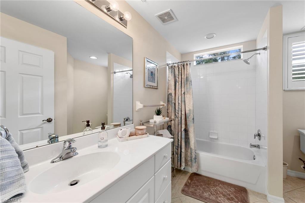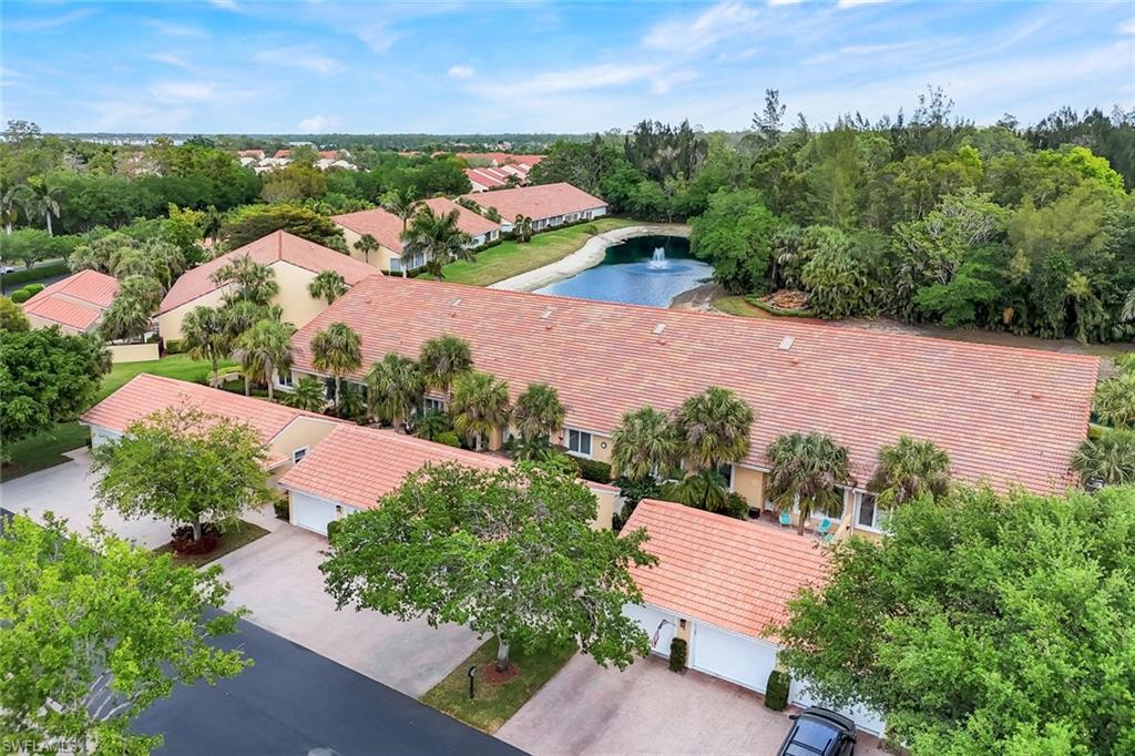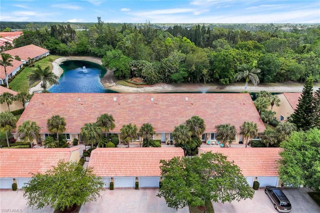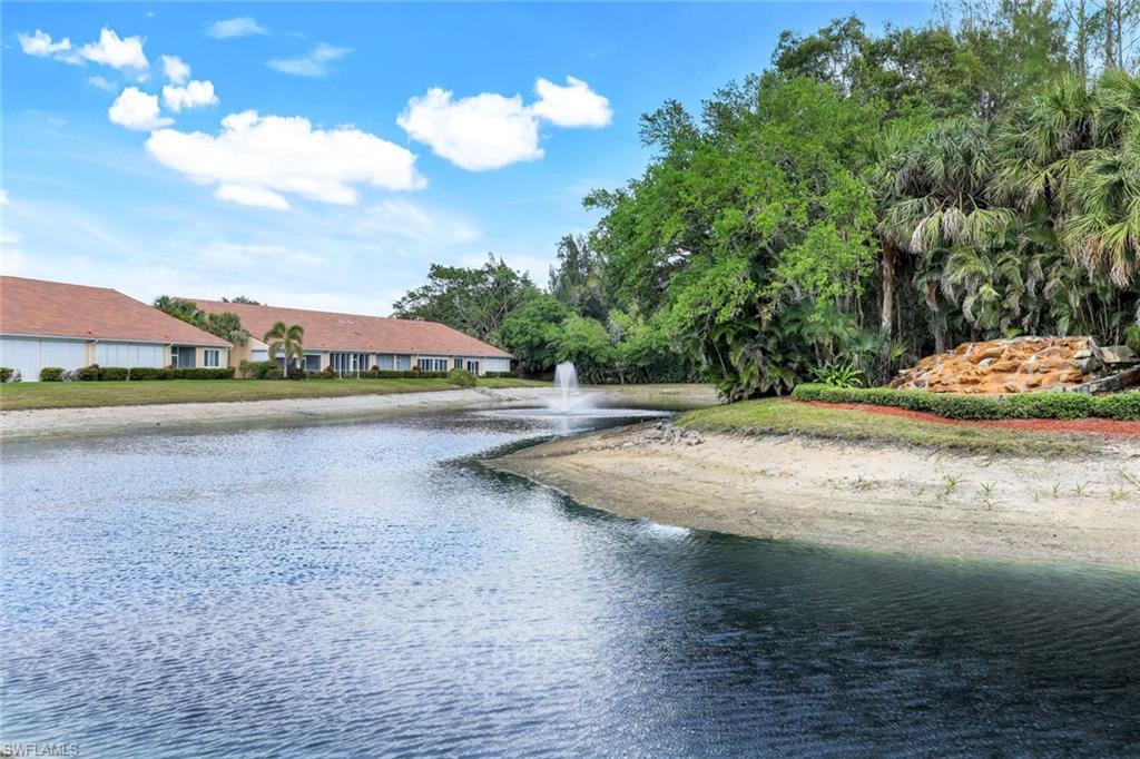 Serenity in Paradise! A hidden gem in the sought after and active gated community of Falling Waters. This beautiful home is being offered turnkey and move-in ready. The eat-in kitchen has been tastefully updated with upgraded cabinetry, granite countertops, and tile backsplash. The living area opens to a spacious lanai that extends across the back of the home, providing great space for entertaining family and friends. The luxurious decor of the primary bedroom is warm and inviting. The en-suite primary bath has a raised vanity with dual sinks, a large shower, and a walk-in closet with custom closet system. Overnight guests will feel welcome with the privacy that the charming second bedroom offers with plantation shutters, tv, custom closet system, a bathroom that has a combo tub with shower head, and a pocket door that separates the area from the rest of the home The large laundry room has custom cabinetry for additional storage, a full size washer & dryer, and a laundry sink. The lanai is where you will find ultimate serenity and privacy with the view of lush tropical landscaping and a calming waterfall. It provides a great place for entertaining with an outdoor kitchen that boasts custom cabinetry with a beverage refrigerator, grill and a sink. And electric shutters make closing up a snap when inclement weather approaches. A Private one car garage is included with this condo. Falling Waters' amenities are fabulous with a huge Resort-style pool, clubhouse, tennis, bocce ball & putting green. Great location close to restaurants, shopping, boating, downtown Naples, and beautiful SWFL Beaches! Being offered turn-key and move in ready! Your new home in Paradise awaits!