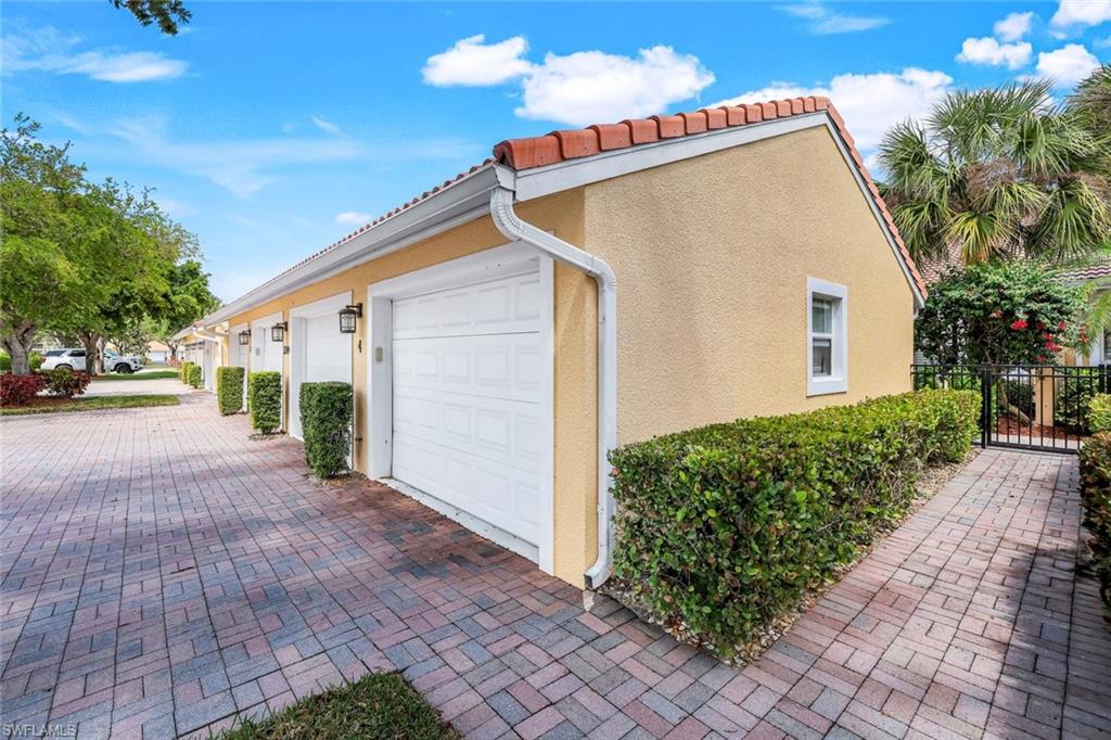 RARELY Available Villa with TWO-CAR GARAGE in Falling Waters! This 2 Bedroom + Den; 2 bath hidden gem offers the best of Naples living in a sought-after, guard-gated community. This beautifully updated villa features a private gated courtyard entry, lush landscaping, and a serene water feature that sets the tone for the peaceful lifestyle within. Step inside to find an open, light-filled floor plan with soaring ceilings and a striking skylight that fills the space with natural light. The kitchen boasts white cabinetry, ample counter space, and stainless steel appliances—perfect for entertaining or casual living. The spacious primary suite offers private access to the lanai, a spa-like bathroom with soaking tub, walk-in shower, dual vanities, and a large walk-in closet. A generous guest bedroom and versatile den provide flexibility for guests, a home office, or additional sleeping space. Relax on your screened lanai with unobstructed lake views. Residents enjoy access to a resort-style saltwater pool, tennis courts, bocce, and scenic walking paths. All just minutes to Naples' white sand beaches, as well as 5th Avenue's fine dining, shopping, and entertainment. Don’t miss this rare opportunity to own a 2-car garage villa in this amenity-rich community. Schedule your showing today!