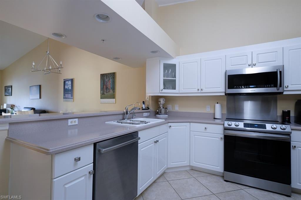 Brand New Kitchen | This updated ground level Condo has received a completely renovated Kitchen showcasing Quartz Countertops, Updated Plumbing, Hardware & Over/Under Cabinet Lighting, Lighting Fixtures, and All New Premium Samsung Stainless Steel Appliance Set. Additional updates include Brand New Water Heater, Plantation Shutters on all windows & Zero Carpeting with new Luxury Tile installed in the living area & both bedrooms. This unit features a 2 Bedroom Split Design with 2 Full Bathrooms, both fitted with Glass Shower Doors. The Oversize Screened Lanai showcases all new Outdoor Kitchen Countertops, Multi-Slide Glass Doors, with Electric Shutters & phenomenal central Lake views. The Deeded Personal Garage provides room for a full size vehicle + golf cart, additional Private Paver Driveway space, as well as bonus attic storage space. Falling Waters provides an active community featuring one of the largest & truly impressive Resort Style Pools in the area at 11,000sq/ft. Additional amenities include Tennis, Bocce Ball, Shuffleboard & more. Exceptionally located close to Downtown Naples, 5th Ave & 3rd Street, as well as the white sand beaches of the Gulf.