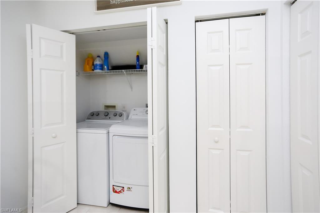 Enjoy ultimate privacy and lush, tropical garden and preserve views with desirable southwest exposure from this beautifully maintained second-floor residence in Whisper Trace at Fiddler’s Creek. Offered turnkey furnished, this spacious three-bedroom, two-bath home features a light-filled open floor plan with soaring vaulted ceilings, and a comfortable open living room that flows seamlessly onto a tiled, screened lanai through sliding glass doors with custom drapery. The lanai is a peaceful retreat, complete with a ceiling fan and serene views framed by swaying palms, ideal for morning coffee or evening relaxation. The stylish eat-in kitchen is elegant and functional, offering white cabinetry, granite countertops, a mosaic tile backsplash, recessed lighting, a breakfast bar, and a pantry. Stainless steel Frigidaire appliances include a French-door refrigerator, range, microwave, and dishwasher. A charming breakfast nook completes the space. Diagonal tile flooring enhances the main living areas, while both guest bedrooms feature wood-look tile and share a well-appointed bath with a granite vanity and a tub/shower combination. The spacious owner’s suite offers lanai access, a walk-in closet, and an en-suite bath with a dual sink vanity, makeup counter, full-width mirror, walk-in shower with bench seating and frameless glass enclosure, plus an additional mirrored closet. A laundry area with a built-in storage shelf includes a 2023 LG top-load washer and front-load dryer. Additional highlights include a new 2023 HVAC system, newer tile roof, newer exterior paint, and newer impact glass windows. The CDD bond is paid in full. Residents of Fiddler’s Creek enjoy access to a 54,000-square-foot Club & Spa with resort-style pools, a state-of-the-art fitness center, spa services, active tennis and pickleball programs, fine and casual dining, along with a robust calendar of social events and miles of bicycling, running or recreation. Optional memberships are available at The Golf Club and The Tarpon Club, offering championship golf, beach and marina privileges. The Fiddler’s Creek Golf Club is the winner of numerous awards and has a new, absolutely stunning clubhouse and a newly renovated golf course. Just minutes from Marco Island and downtown Naples, this immaculate and move-in-ready condominium offers the ideal blend of luxury, privacy and relaxed coastal living. A shopping center with Publix, hair salon, nail salon, health food store and urgent care facility is right outside the gate for convenience, and the executive airport, parks, yacht clubs and the exceptional Southwest Florida attractions are all easily accessible.