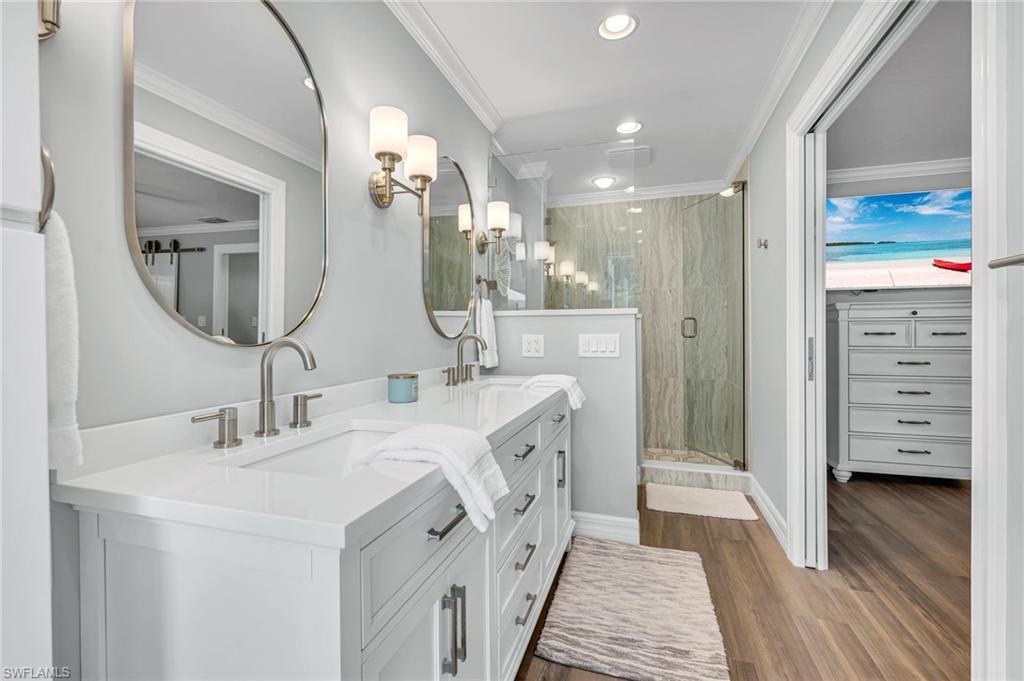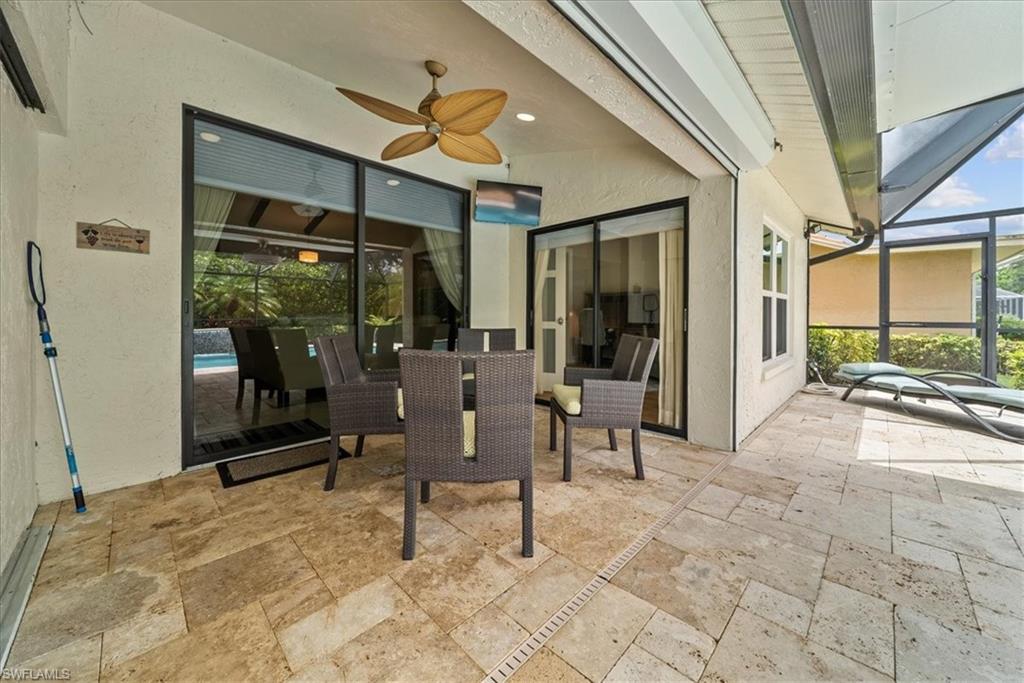 Rare 3BR 2Bath end unit Villa with 2 car attached garage overlooking 6th fairway on the Blue Course at Foxfire CC. Turnkey furnished and beautifully appointed with newer heating and A/C, new roof and skylights Dec. 2016, exterior painted 2025, paver driveway. Electric storm shutter on lanai, newer hurricane rated windows, updated walk-in shower in primary bedroom, updated guest bath with higher comfort toilet, newer vanity and medicine cabinet, custom shelving in primary BR, updated kitchen cabinets with granite counters, custom shelving in kitchen, wood floors LR/DR, newer Maytag washer and dryer. 27 holes Arthur Hills championship golf with no initiation fee! New fitness center (2024). Full service restaurant, Pro Shop, driving range, putting greens, practice sand trap area, bocce courts, Har-Tru tennis courts and lap pool. 5 miles from downtown 5th Ave. with restaurants, live theater, and pristine Gulf beaches. 30 minutes to Regional SW FL airport, close to I-75 No. and So. Close to Marco Island.