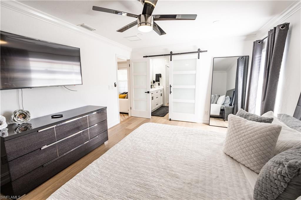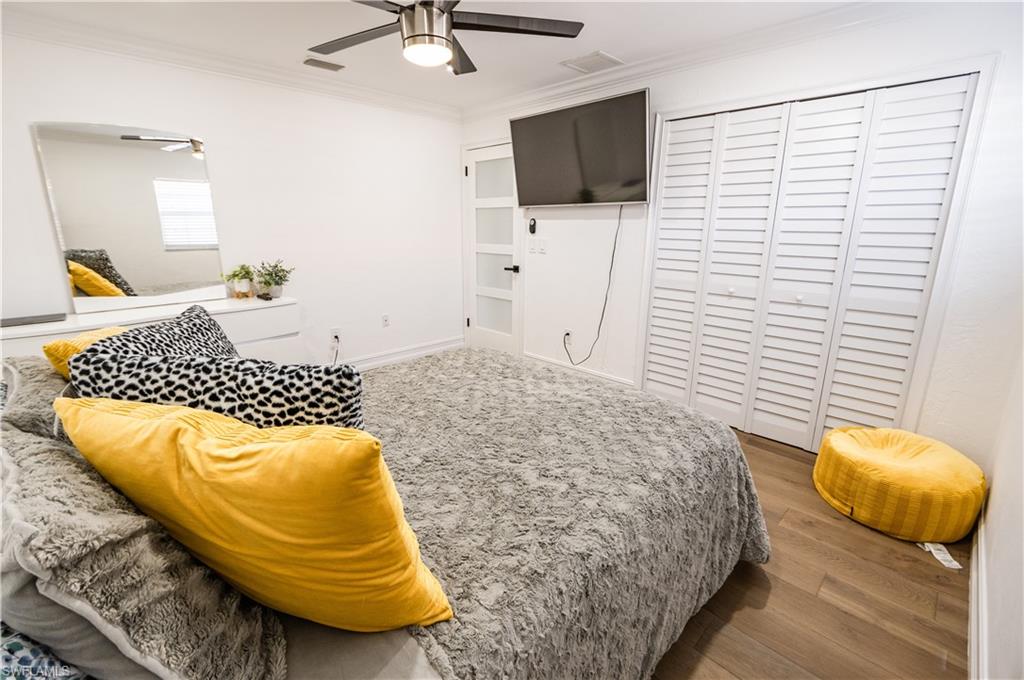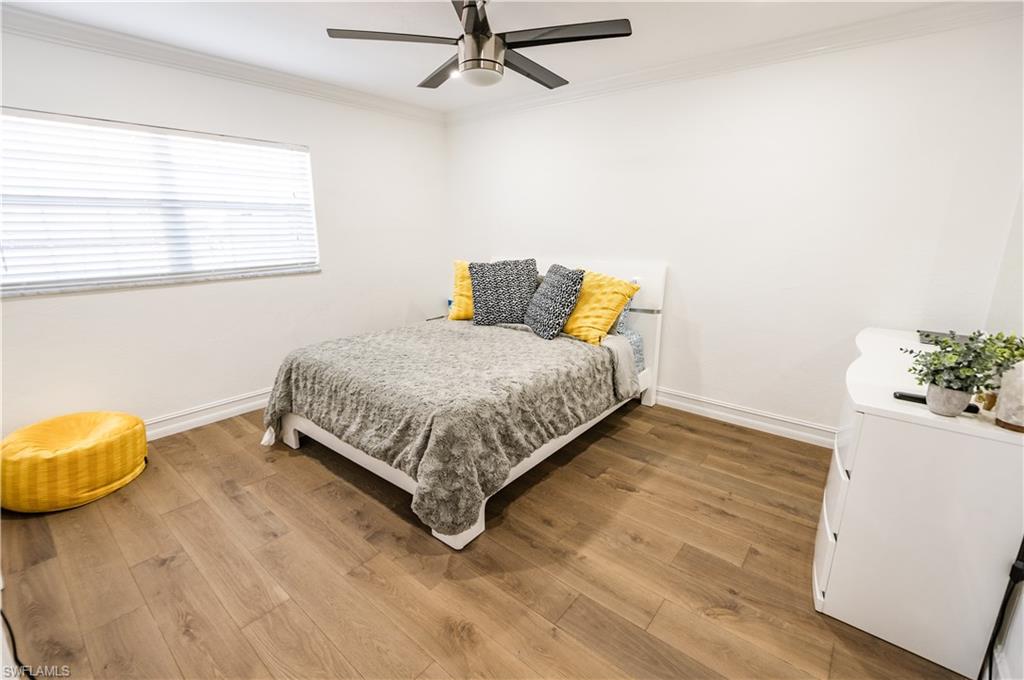 Beautifully remodeled ranch-style home in Golden Gate City featuring 4 bedrooms and 3 bathrooms, including a legal converted garage studio with private entrance, bedroom, bath, kitchenette, and living/office area—currently rented month-to-month, providing immediate income. The main home boasts a modern kitchen with stainless steel appliances, tile floors throughout, crown molding, a newly installed reverse osmosis water system, and bright, open living spaces. Situated on a fully fenced 0.23-acre lot with a wide driveway and room for a pool, boat, or RV—no HOA and located in Flood Zone X for lower insurance costs. Backyard includes a storage shed and seating areas. Prime location close to schools, parks, shopping, dining, and only 15–20 minutes to downtown Naples and the beach.