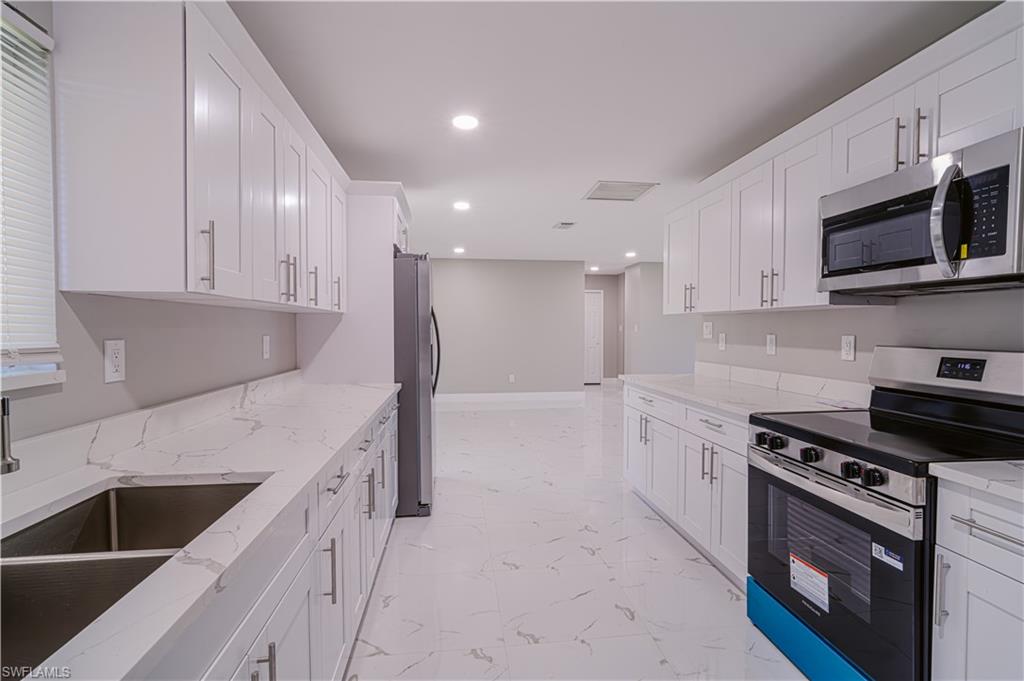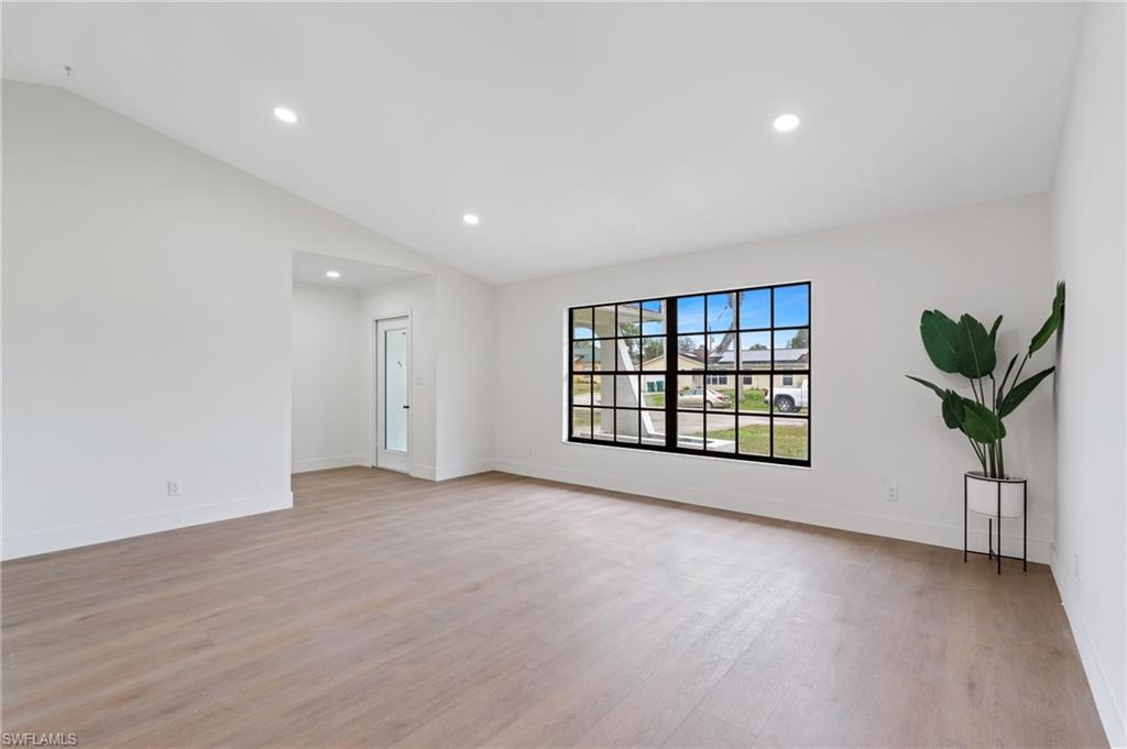 Great opportunity available!! Spacious home completely remodeled with modern finishes, 3 bedrooms, 2 bathrooms, 2 car garage on a super-sized corner lot and a huge Porche facing a beautiful lake for you & your family to enjoy. The property is conveniently located in a very desirable & private area, only 2 minutes from Santa Barbara Blvd & I75, it offers a new roof, new water system, showers in all bathrooms, a spacious laundry room & much more. Low Taxes, Low HO Insurance & NOT in a flood zone. Make this property yours before it's gone!