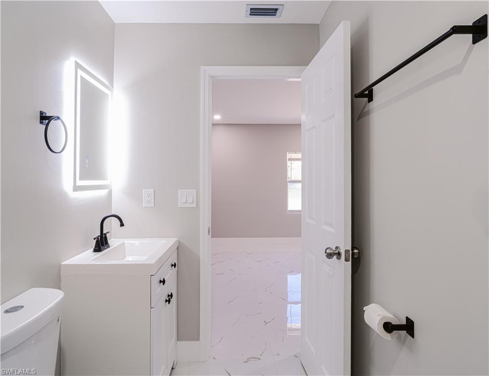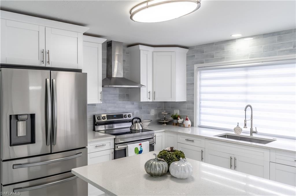 Your Waterfront Oasis Awaits! Step into this stunning, completely renovated 3-bedroom, 2-bathroom single-family home, perfectly situated on a serene canal. No detail has been overlooked in this modern transformation. The open-concept floor plan boasts a BRAND NEW KITCHEN 2024 with ALL NEW APPLIANCES, quartz countertops, and breakfast bar. The spacious primary suite offers a luxurious spa-like bathroom and walk-in closet. Two additional bedrooms provide flexibility for a growing family, home office, or guest space. Outside, enjoy your private paradise. BRAND NEW POOL TILE 2024, BRAND NEW POOL RESURFACE 2024, BRAND NEW POOL PUMP 2024, BRAND NEW A/C 2024, BRAND NEW WATER HEATER 2024, BRAND NEW PAINT inside and out, BRAND NEW LVP FLOORING 2024. The sparkling pool overlooks the tranquil canal, perfect for morning coffee, sunset drinks, or weekend gatherings. Centrally located close to all Naples shopping, and dining, this waterfront gem is a rare find. Don’t miss the opportunity to make this dream home yours! NO FLOOD REQUIRED. City Water Connection Available with the city.