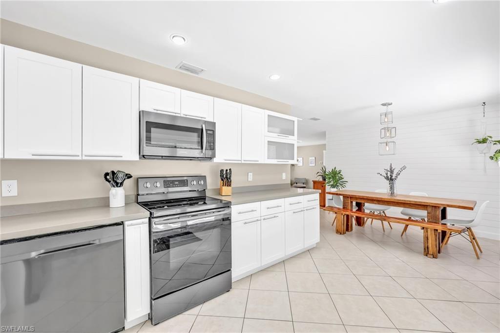 JUST MINUTES FROM NAPLES BEACHES!! Impeccably Renovated charming home with 3BR/2BA.This meticulously remodeled single-family home combines modern finishes with coastal charm in one of Southwest Florida’s most desirable locations. Bright, Open Floor Plan with 3 bedrooms and 2 beautifully appointed bathrooms.Tile throughout the entire home. Kitchen showcasing black stainless steel appliances, beautiful shiplap accent wall in dining room, Primary Suite with walk-in customized closet. Bedrooms closets customized to maximize every inch of space. Fully fenced patio ideal for families with kids. The patio offers the perfect setting for relaxation and effortless entertaining along with Avocado, mango and other fruit trees. Newer roof and A/C. Fully. The entire home has been re-piped, providing peace of mind with updated plumbing throughout. With just miles from Naples’ world-famous white-sand beaches and crystal-clear Gulf waters this home is a jewel. You can enjoy easy access to:Upscale shopping and dining at Waterside Shops and Mercato. Convenient access to main roads and I-75.