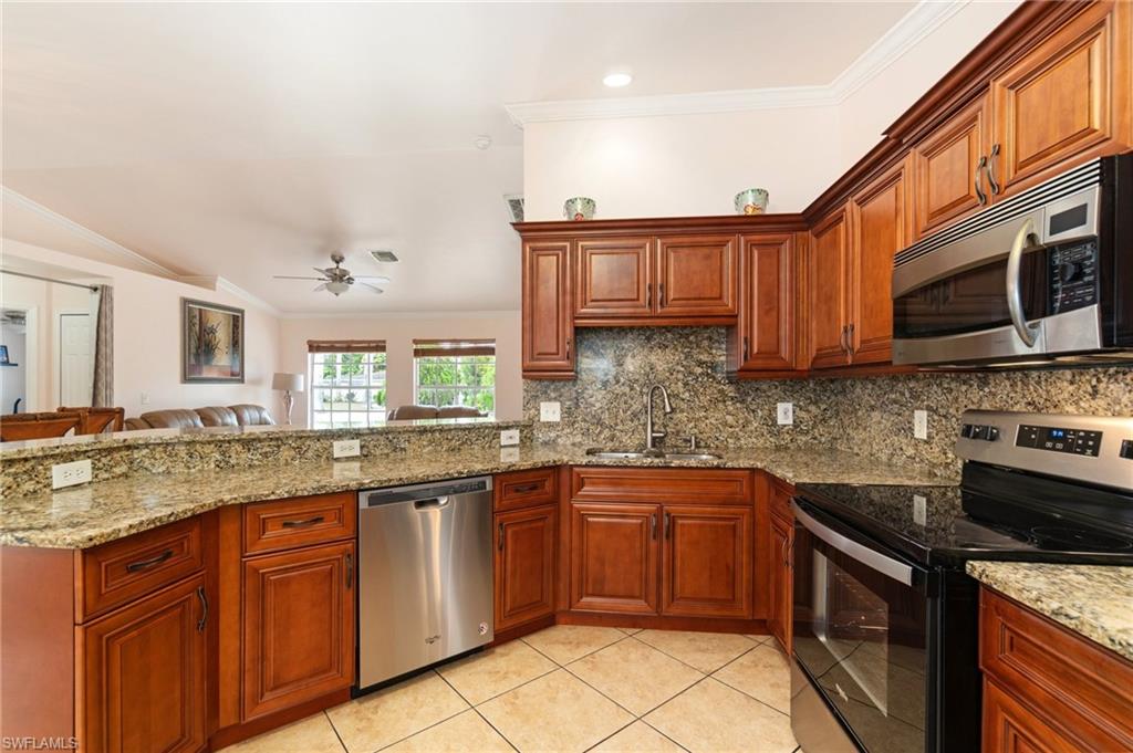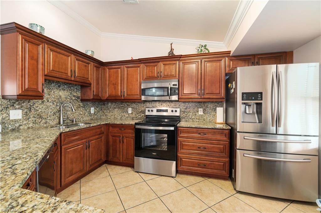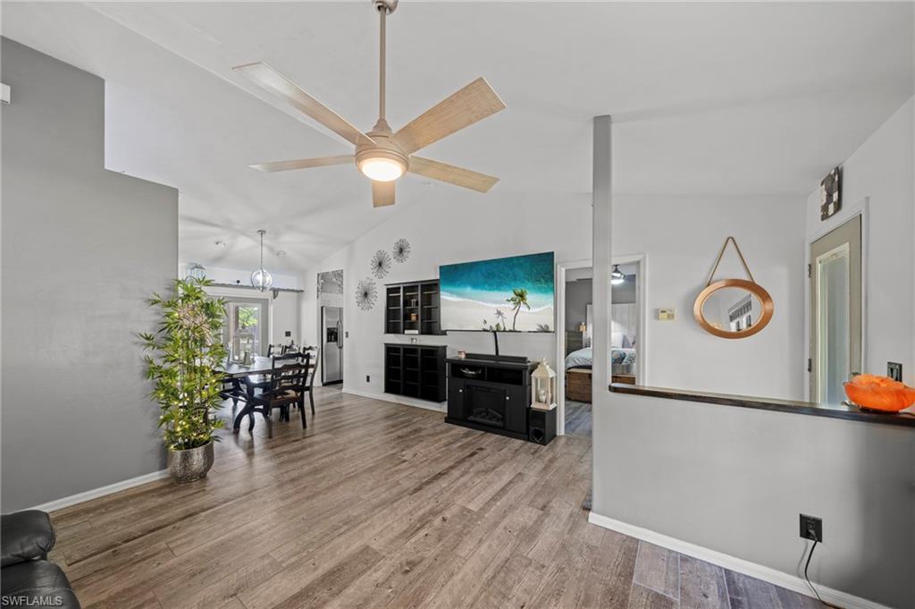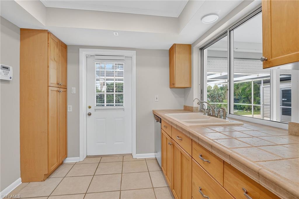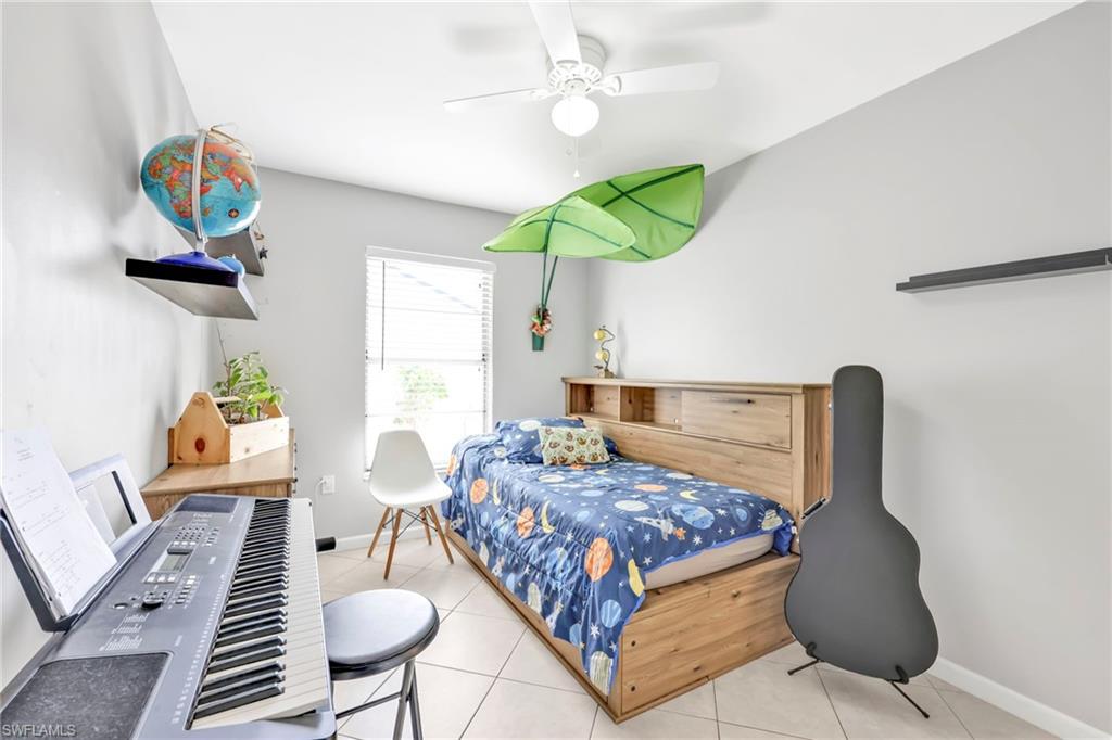 Experience the best of Naples living in this beautifully maintained single-family home offering southern exposure, a new heated saltwater pool with a waterfall feature (2023), and a spacious gazebo perfect for relaxing or entertaining. With no HOA fees or restrictions, this property provides exceptional freedom and convenience in a desirable Golden Gate City location close to schools, parks, shopping, dining, and just 15–20 minutes from downtown Naples and the beaches. The inviting layout features three bedrooms and two baths, with one of the guest rooms converted from a garage into a versatile suite complete with a kitchenette, sink, and overhead cabinetry, ideal for extended family or guests. Inside, diagonal tile flooring flows throughout the main living areas, creating a cohesive and easy-care design. The cozy living room features a window that fills the space with natural light and a modern ceiling fan for comfort. The kitchen is well-appointed with shaker-style cabinetry, sleek modern countertops, and appliances, including a range, microwave, dishwasher, and refrigerator with icemaker. An adjacent formal dining area with sliding glass doors opens to the back patio, providing effortless indoor-outdoor living. The owner’s suite is a peaceful retreat with a walk-in closet and an en-suite bath featuring a modern vanity and shower-tub combination. Two additional guest bedrooms share an updated bath with a walk-in shower, offering ample space and privacy for family or visitors. Go outside to your own private oasis. The fully fenced backyard showcases updated landscaping and a patio with brick paver flooring. The sparkling saltwater pool and gazebo create an inviting setting for outdoor enjoyment year-round. Additional updates include a newer roof (2020) and a washer and dryer. In Flood Zone X, this home offers lower insurance costs with no flood insurance required, making it an exceptional opportunity for comfort and peace of mind.