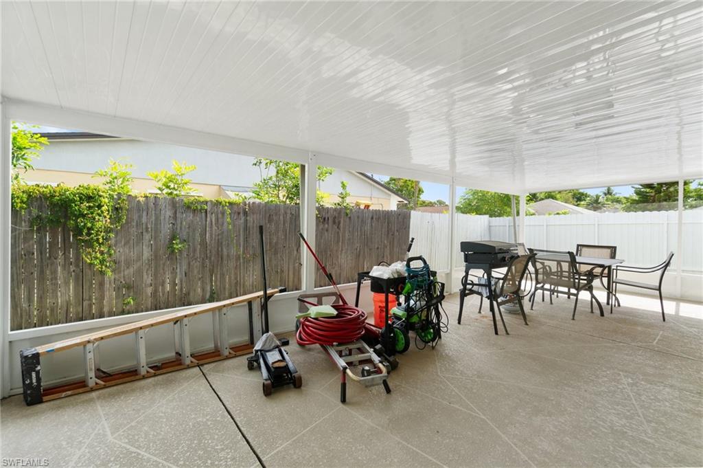 METAL ROOF, CORNER LOT, FULLY FENCED & EXTENDED LANAI! This meticulously maintained concrete block home sits on a desirable corner lot and is completely fenced for privacy and security. The home has been freshly painted both inside and out, giving it a crisp, move-in-ready appeal. Inside, enjoy stainless steel appliances in the kitchen and a spacious layout ideal for comfortable living. The extended lanai offers additional outdoor space perfect for relaxing or entertaining. The garage has been professionally converted into an extra room with permits, providing added flexibility for a home office, gym, or guest space. Located in a convenient area of Naples close to schools, shopping, and dining. Schedule your showing today! THIS PROPERTY QUALIFIES FOR A 1% LENDER INCENTIVE IF USING PREFERRED LENDER, INQUIRE FOR MORE DETAILS**