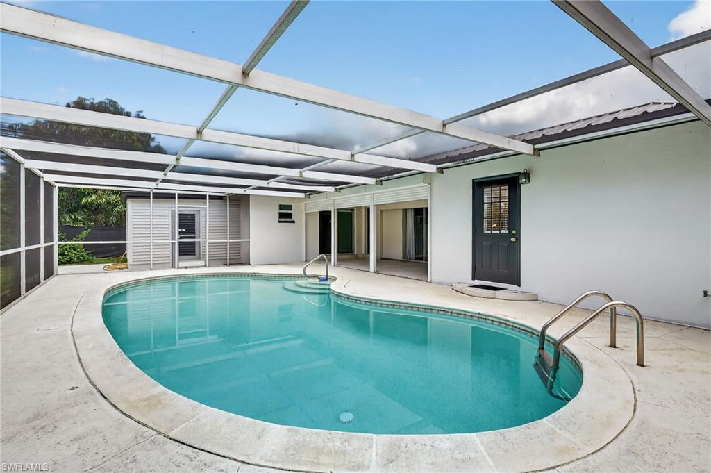 This property is so beautiful, you must see it to believe it. This perfect waterfront home is spacious, meticulously maintained, available for immediate purchase, and move-in ready. This is your rare opportunity to own in this non-gated and non-deed restricted community located South of the Parkway on the main canal in Golden Gate City. No association dues. Enjoy this extra-large screened-in entertainment area that offers tranquil water and wooded area views and a custom private swimming pool so inviting you cannot help but want to jump into it. Your oversized and perfectly landscaped and manicured lawn is large enough to run, play, and fish from your own backyard. The open concept kitchen, dining, and great room layout will keep you comfortable and cozy with lots of attention given to details. The remodeled kitchen offers stainless steel appliances, a center island with breakfast bar and a lazy Susan cabinet. The in-kitchen pantry will keep your culinary experiences organized and convenient. Three sets of French doors open out to the pool area creating an open living space inviting the outdoors in giving your most important rooms an expansive waterfront view that keeps on giving. The curb appeal of this home showcases lush tropical landscaping and perfectly cut green grass that will be sure to delight you every time. This home has a driveway suitable to park several cars, a spacious indoor laundry room with washer and dryer hookups, side yard privacy gate, and an outdoor area perfect for grilling and chilling under the stars. This close-in location allows easy access to Downtown Naples, beaches, several community centers and parks, aquatic centers, Coastland Mall, the Zoo, and much, much more. With quick and easy access to I-75 and the best traveled main roads you will have driving access in any direction you want to go in a breeze. If you've been waiting to own a tropical oasis with a large pristine manicured yard, lushly landscaped, with jaw dropping private water and wooded area views, and a large screened-in entertaining area with custom swimming pool with eye-popping appeal this is the home you've been waiting for. Don't miss this opportunity to make your dreams a reality.