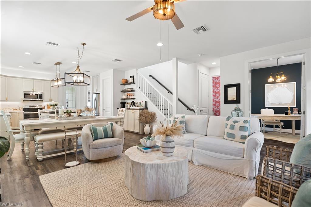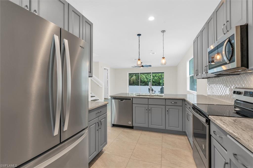 Nestled in the dynamic and ever-evolving Bayshore Arts District, this meticulously crafted two-story home offers the perfect blend of style, comfort, and investment potential. Built in 2019, this 4-bedroom, 2.5-bath residence spans 2,104 square feet of thoughtfully designed living space.The spacious primary suite is conveniently located on the first floor, offering ample closet space, privacy and ease of access, while three additional bedrooms and a versatile loft occupy the second floor—ideal for families, guests, or a home office setup. The Chef-Inspired Kitchen is Equipped with quartz countertops, 48" solid wood cabinetry, stainless steel appliances, and a spacious breakfast bar that seamlessly connects to the great room—perfect for entertaining. Step outside to the covered lanai and enjoy a fully fenced yard that backs onto a serene nature preserve owned by the Naples Botanical Garden, ensuring ultimate privacy and room for a pool. With no HOA fees and flexibility for short-term rentals, this property is well-suited for a variety of lifestyles, whether you're searching for a full-time residence, a seasonal retreat, or a high-performing rental opportunity. Located just minutes from downtown Naples, fabulous dining, entertainment, shopping, and the beautiful Gulf beaches, this home places you at the center of one of Naples' most exciting and up-and-coming neighborhoods.