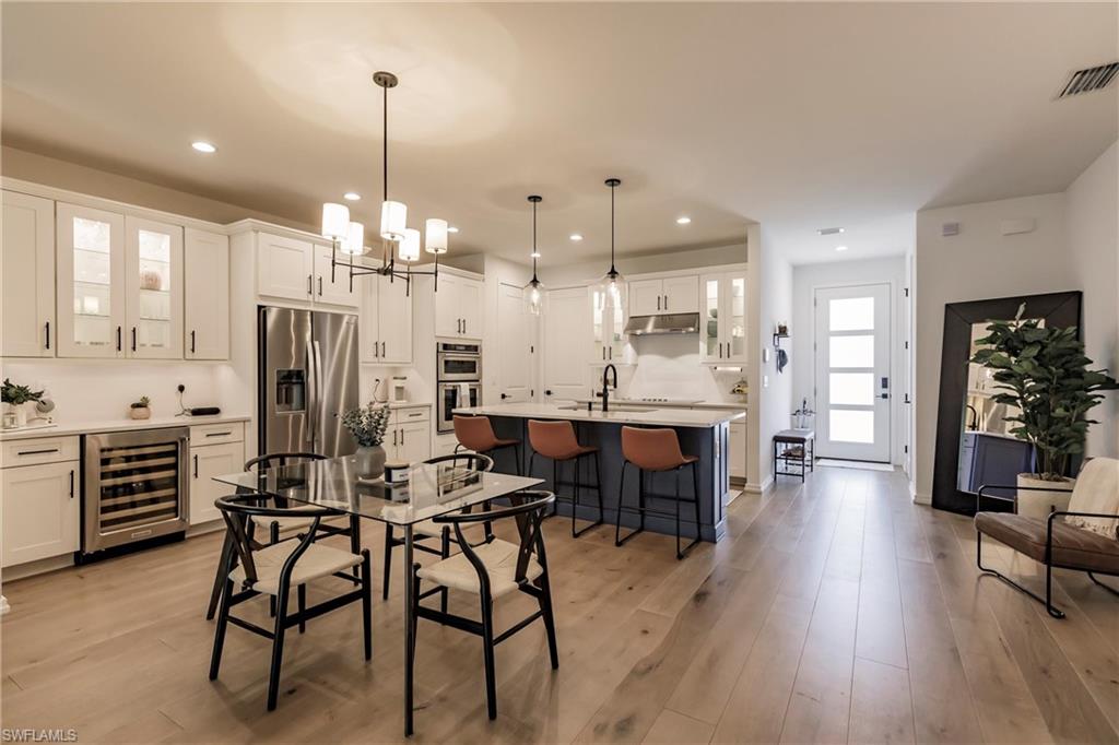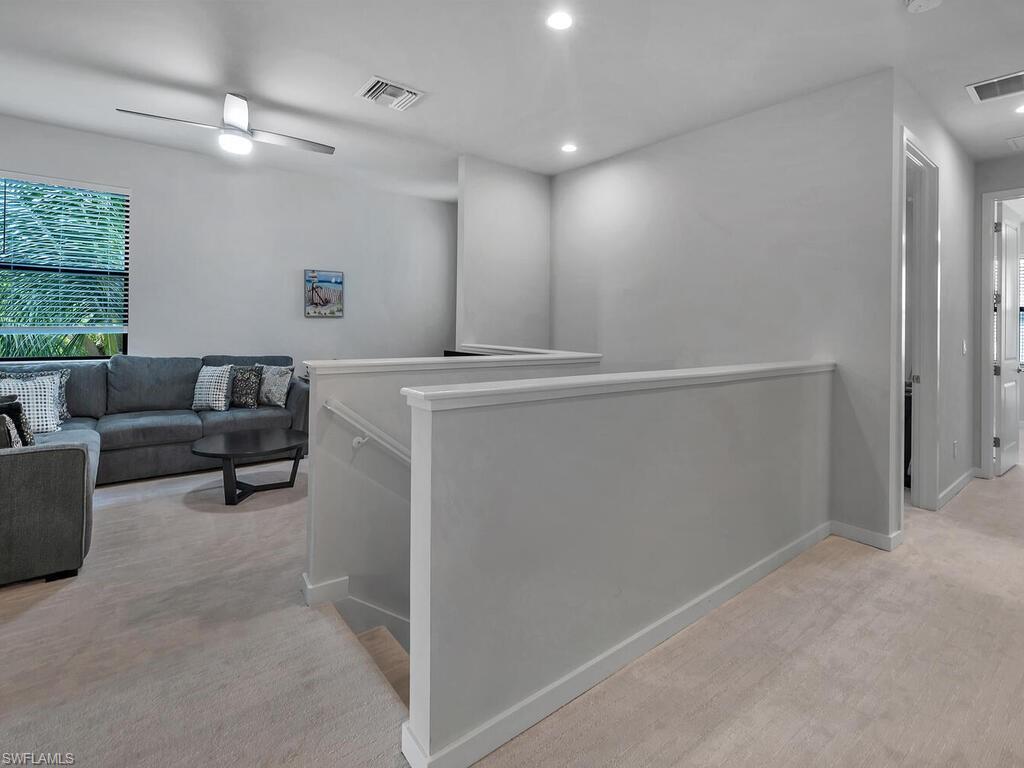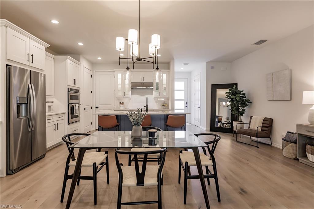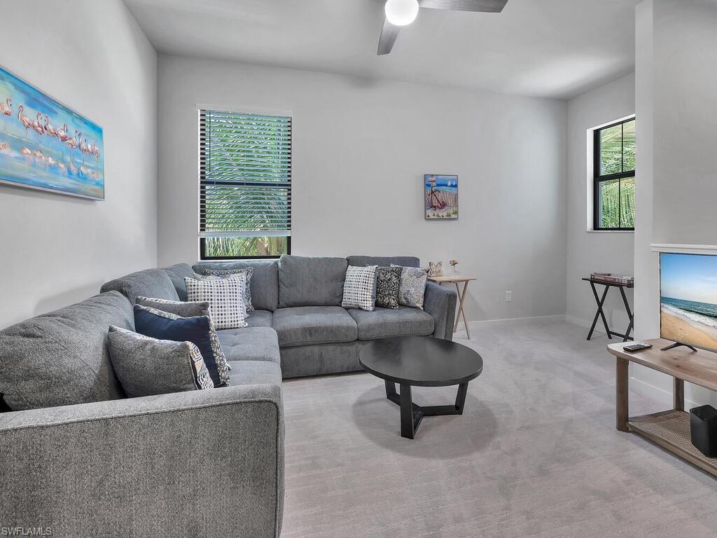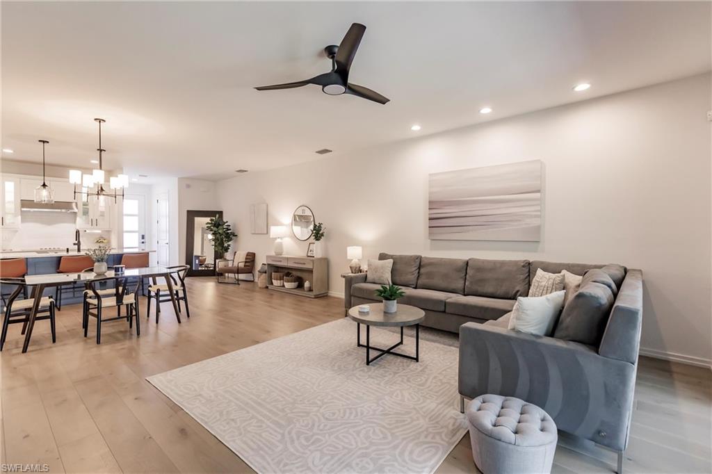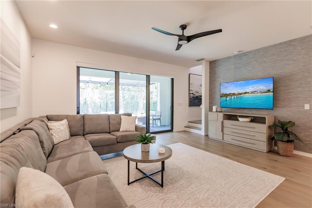 Welcome to this stunning former model townhome, built in 2021 and offered designer furnished for an effortless move-in. This thoughtfully designed end unit has a two-car garage and extended driveway, southern exposure and an extended screened lanai. This home is perfect for both everyday living and entertaining. Inside, enjoy a sleek chef’s kitchen featuring all KitchenAid appliances, including an induction stovetop and a microwave/convection oven/air fryer combo. The open layout, luxury finishes, and designer details reflect the home’s original model status. Upstairs, you’ll find 3 spacious bedrooms, 2 baths, plus a versatile loft space. With its modern construction, designer furnishings, and prime location just minutes to I-75, beaches, shopping, and Downtown Naples, this home offers the ultimate blend of style, convenience, and comfort.