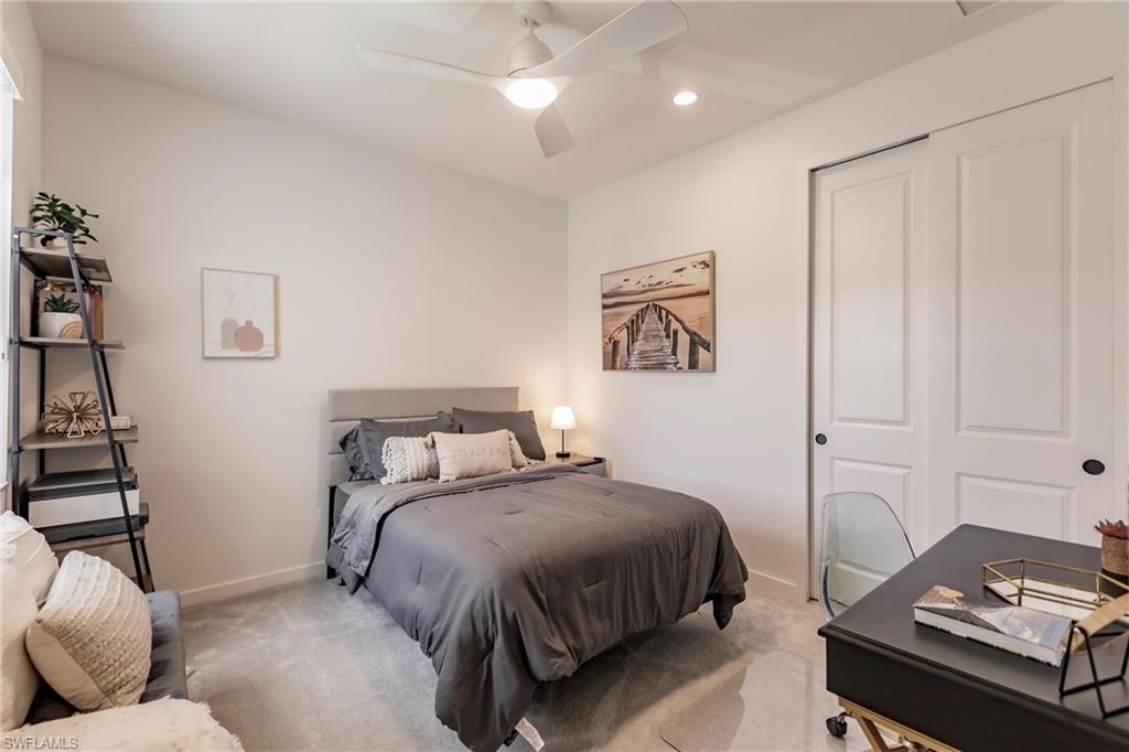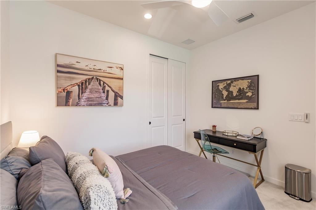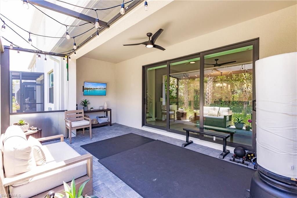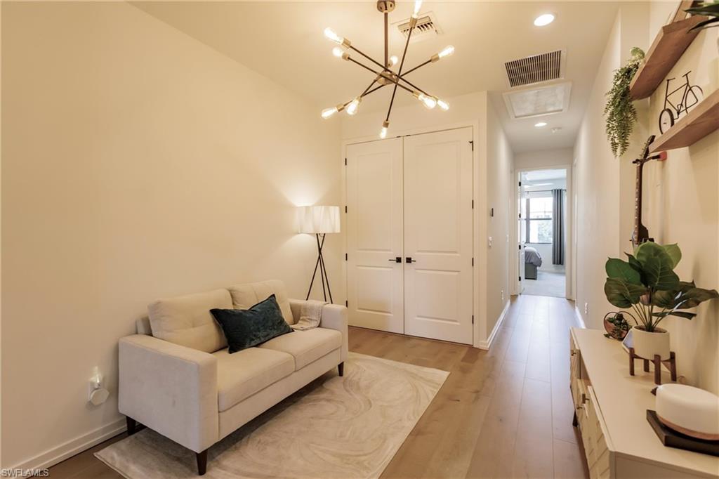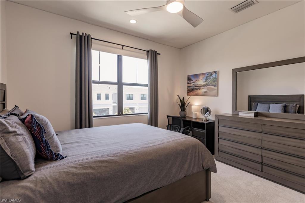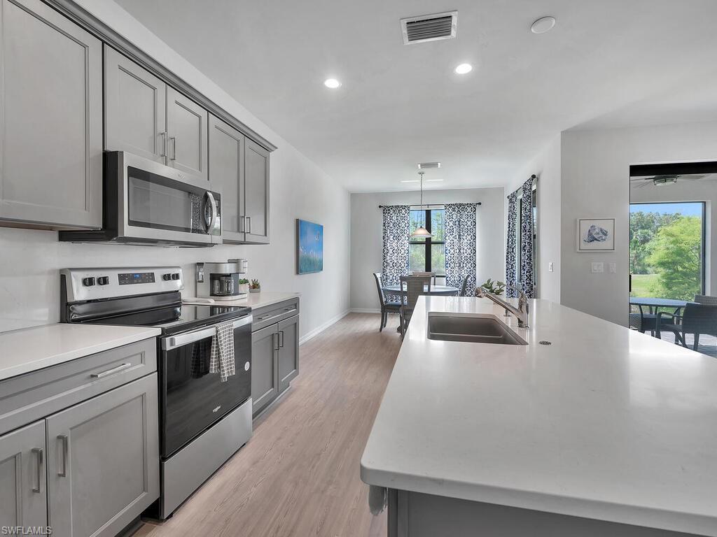 Welcome to this stunning former model townhome, built in 2021 and offered designer furnished for an effortless move-in. This thoughtfully designed end unit has a two-car garage and extended driveway, southern exposure and an extended screened lanai. This home is perfect for both everyday living and entertaining. Inside, enjoy a sleek chef’s kitchen featuring all KitchenAid appliances, including an induction stovetop and a microwave/convection oven/air fryer combo. The open layout, luxury finishes, and designer details reflect the home’s original model status. Upstairs, you’ll find 3 spacious bedrooms, 2 baths, plus a versatile loft space. With its modern construction, designer furnishings, and prime location just minutes to I-75, beaches, shopping, and Downtown Naples, this home offers the ultimate blend of style, convenience, and comfort.