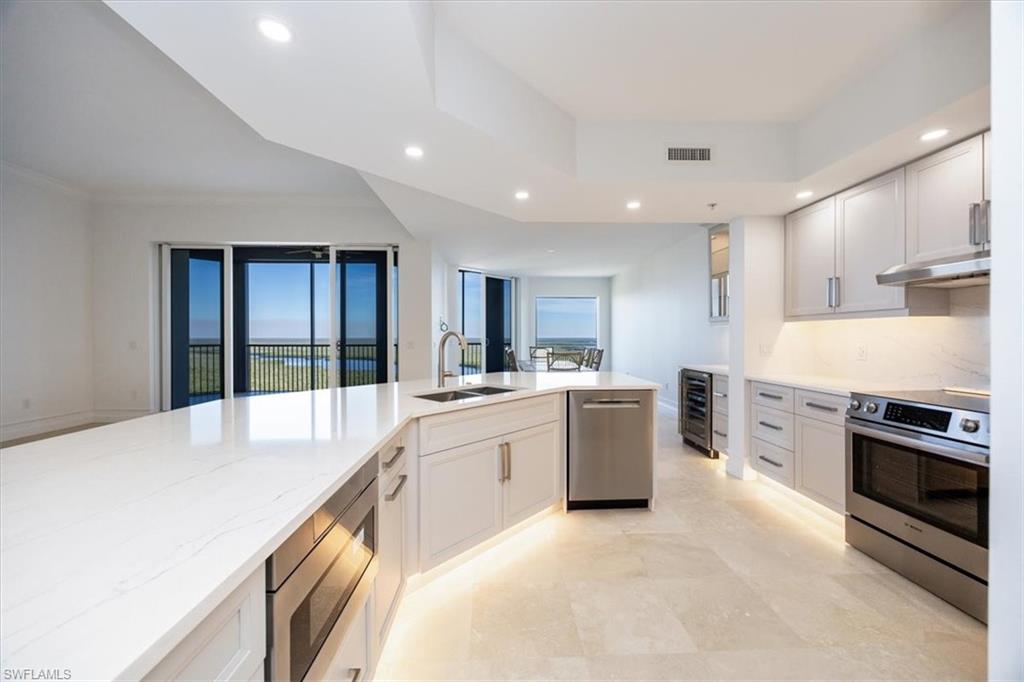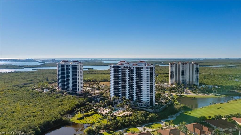 Aversana HOA Fees have just been reduced for 2026!! Welcome to the Aversana of Hammock Bay Golf & Country Club where exquisite luxury living meets jaw dropping views. This is high rise condo living on a whole new level. This updated 2,800 SF residence perfectly blends elegance, comfort and style & comes completely Turn-Key ready for you to move right in. Complete with everything you see, every inch of this home has been carefully curated to offer a living experience that exceeds expectations, with the finest materials like marble & hard wood floors, an open and airy layout & panoramic views of the 10,000 Islands that will take your breath away from every room. The grand entrance to the unit via your private elevator set the tone for the sophisticated retreat within. This spacious corner unit has 3-bedrooms, 3.5-bathrooms & an office with never-ending views that are sure to impress! The private owner’s suite is located on the east side of the residence with it’s own hallway, ample storage b/n the walk-in and 2 other closets & has its own patio entry just off the living room. The bathroom has dual quartzite vanities, crystal cabinet pulls, a soaking tub, shower & a water closet with pocket door. The kitchen & main living areas were redesigned & opened up to allow for more free flowing entertaining spaces & truly captivate the essence of the outdoor views from the second you step inside. It comes equipped with high-end appliances, floating shelves and a porcelain backsplash providing true function & modern design elements. The waterfall edge on the rare Quartzite kitchen counters make a bold statement to complete the look, all while adding timeless beauty. The living and dining areas seamlessly blend together and the custom built-in’s glass shelves provide a gorgeously framed backdrop for your TV. Just around the corner from the kitchen & off the living room, a mini bar cabinet was added to provide the perfect cocktail prep area for your sunset cocktails on the veranda. The 2 guest ensuites do not disappoint in any way - each are very spacious with updated bathroom vanities, plenty of closet storage & yes, incredible views abound here too! They are on the other side of the unit and each has privacy from the other, all while offering the same stunning panoramic backdrops this tower is known for. These 2 bedrooms share a veranda & your guests will enjoy impressive views out to the Gulf of Mexico, Isles of Capri, Marco Island & all the way to Naples. This residence doesn’t stop at its extraordinary interior; the Aversana Condo offers resort-style amenities designed to enhance your lifestyle. The pool is perfect for sunning and swimming, the new outdoor tiki bar & barbecue areas are designed for entertaining guests or simply enjoy a meal with family and friends in this beautifully appointed outdoor space. Whether you’re enjoying sunsets over the bay or relaxing by the pool, this unit provides the ultimate experience in SWFL luxury living.