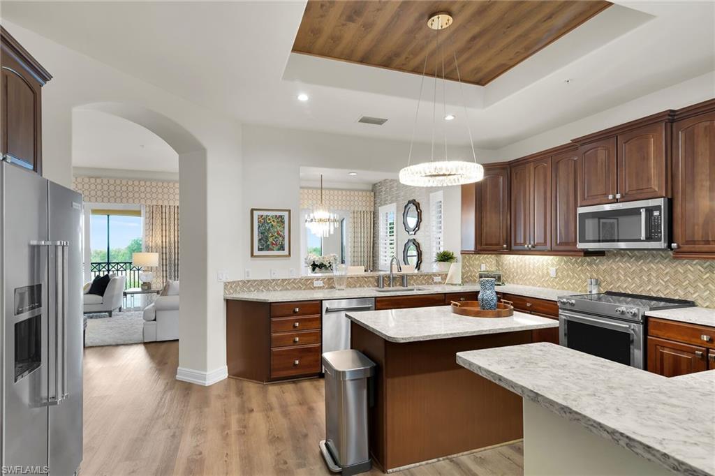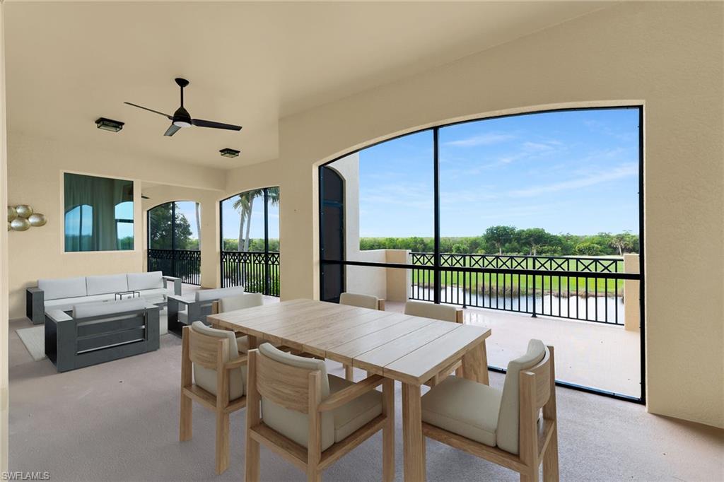Lesina at Hammock Bay Golf & Country Club offers a rare blend of resort living and refined elegance—gated, prestigious, and rich in world-class amenities. This expansive, tastefully furnished 4-bedroom, 3.5-bath luxury condo lives like a sprawling private home, and is offered at pricing rarely seen in a community of this caliber making it an exceptional opportunity for discerning buyers. Arrive via secured elevator, to a private foyer. Enter to the open living grand salon, formal dining and family room areas all with views and access to the spectacular 45' wrap-around screened terrace. The chef's kitchen features a breakfast nook, breakfast bar, and a private balcony, perfect for hosting and everyday comfort. A sanctuary of privacy, the primary ensuite features a spa like bath with soaking tub, a walk-in shower, his-and-hers closets, and a lanai with stunning views. Two charming guest suites share a private balcony, while a fourth bedroom (currently an office) boasts a terrace. This home offers elegant indoor outdoor living and oodles of amenities. 3 points set Lesina apart, having completed the newly required SIRS (Structural Integrity Study) with no resulting assessments, ensuring a worry-free investment. This 2nd floor retreat also delivers lush tropical panoramic views of serene waterways with the skyline of Marco Island in the distance and a front-row seat to the resort-style pool oasis and cabanas, offering a warm, inviting ambiance. Lesina pampers residents with an elevated resort lifestyle, including a stunning pool & spa, world-class fitness center with sauna, theater, social room, bar and catering kitchen, billiards, library/games room, outdoor grills, and more. Residents benefit from secure elevator access, 2 deeded under-building parking spaces and 2 climate-controlled storage units, and on-site management with a welcoming front desk host. Nestled between Naples and Marco Island's world-famous beaches, restaurants and shopping, this serene, elegant enclave offers luxury, space, and exclusivity rarely found in the area. A rare opportunity to secure a move-in-ready, spacious condo at an exceptional value.