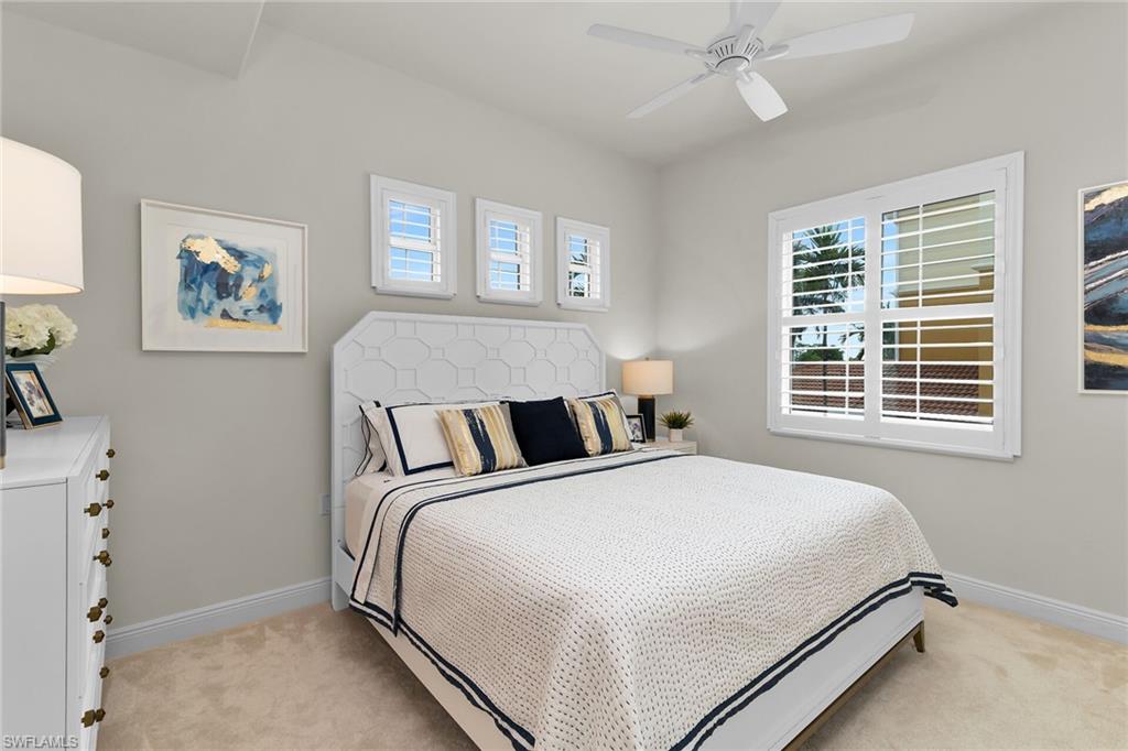 Live the Resort Lifestyle Every Day with a transferable FULL BEACH/SOCIAL MEMBERSHIP—bypassing the extremely long waiting list. Enjoy immediate daily access to the JW Marriott’s world-class amenities: club and spa privileges, complimentary parking, food and beverage discounts at Marriott properties, two stunning clubhouses, an incredible tiki bar with an exceptional chef, resort-style pool and hot tub, tennis, bocce, a full fitness center, and exclusive access to the Members-Only Cove. Beach days are effortless with five complimentary lounge chairs and an umbrella set up for you each visit at the JW Marriott. This is truly the ultimate coastal lifestyle package—ready for you on day one. Perfectly positioned between iconic 5th Avenue South and world-renowned Marco Island, this home offers unbeatable access to the best dining, shopping, beaches, and coastal experiences in Southwest Florida. Step inside this light, bright, beautifully maintained 3 Bedroom + Den, 2 Bath residence filled with natural Florida sunshine. Freshly painted throughout—including the two-car garage—this home features brand-new carpet, elegant plantation shutters on every window, NEW ROOFS and IMPACT WINDOWS, providing beauty, comfort, and peace of mind in all seasons. The kitchen shines with upgraded light-almond cabinetry, granite countertops, and GE appliances, opening seamlessly to a warm and welcoming dining and living space. The primary suite includes a custom wood-shelved walk-in closet, while both guest rooms feature upgraded closet shelving. A 2023 water heater, newly installed state-of-the-art smoke detectors, and elevator access add convenience and security. The laundry room offers upper cabinetry plus a Maytag washer and dryer for excellent everyday functionality. The showstopper is the expansive screened lanai delivering what is arguably the best view in the community—a sweeping panorama of the first hole framed by a wide, private green buffer for exceptional openness and privacy. Towering palms and lush landscaping create a serene, authentic Florida backdrop you’ll love coming home to. Immaculate, tastefully updated, and truly move-in ready—paired with full Social and Beach privileges and a prime location between Naples and Marco Island—this home offers one of the most complete and compelling lifestyle opportunities in the community.