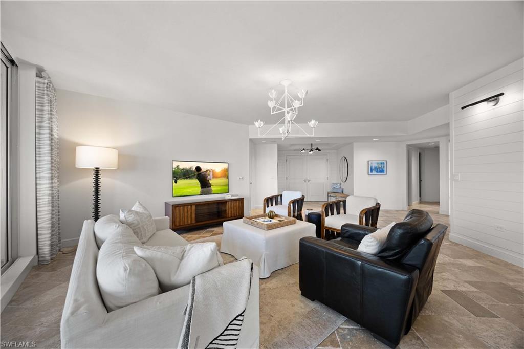 Step into a world of sophisticated luxury at Hammock Bay Golf & Country Club. This spectacular, professionally furnished 2,800-square-foot corner residence showcases exceptional design and sweeping panoramic views of the Gulf of Mexico, surrounding waterways, sparkling lakes, the championship golf course, and the iconic 10,000 Islands. A private, secured elevator opens directly into the residence, where you’re welcomed by a sophisticated blend of modern style and curated luxury. The fully renovated gourmet kitchen is a chef’s dream, featuring high-end Bosch appliances, a Wolf cooktop, organic white Caesarstone quartz countertops, floating shelves set against a concrete backsplash, a wine cooler, and elegant Clive Daniel bar stools. Every space in this home has been elevated with spectacular designer selections. Custom window treatments frame the remarkable views and enhance the serene ambiance throughout. The primary suite is a private retreat designed for complete relaxation, offering peaceful vistas and a beautifully appointed spa-like bath with custom countertops, a dual-sink vanity, a spacious walk-in shower, and custom closets by Closets by Design. Additional features include a new A/C system, 2020 water heater, new roofs, impact glass, and hurricane shutters—providing both modern comfort and peace of mind. The residence includes two secured parking spaces and a dedicated storage locker. Aversana’s luxury amenities are simply unmatched. Residents enjoy a newly remodeled grand lobby, resort-style pool and spa, theater, fitness center, sauna, locker rooms, guest suites, BBQ area, and an exceptional social room. The club’s Tiki bar offers the perfect spot for lunch or cocktails, and the pet-friendly environment adds to the welcoming community feel. Ideally located just minutes from Marco Island and a short drive to Olde Naples—with its world-famous beaches, upscale shopping, and fine dining—this residence offers an extraordinary lifestyle of elegance, convenience, and natural beauty.