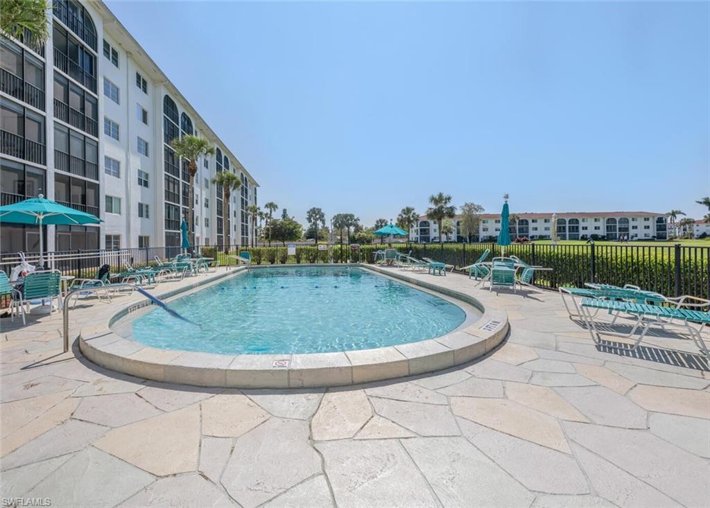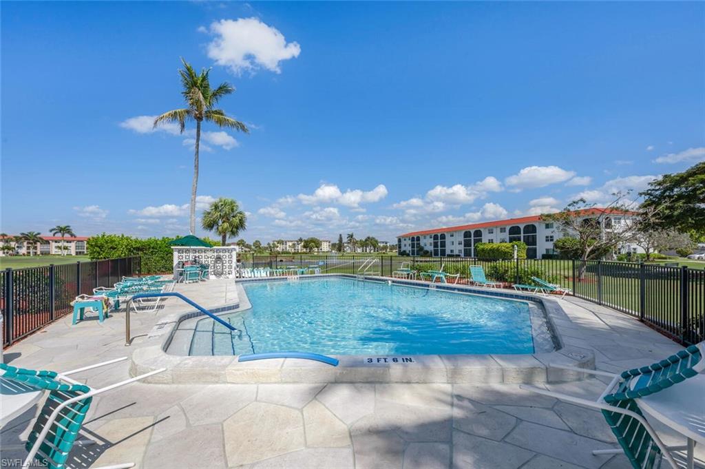 Perfectly located in Naples with close proximity to the sugar sand beaches. This top floor 2 bedroom 2 Bath home has spectacular views of the golf course and pool. The community offers many amenities with an active social lifestyle. Bundled Golf, Pickleball, Tennis, exercise room, Swimming Pools and clubhouse. Make this your new home and start living the Naples lifestyle today!