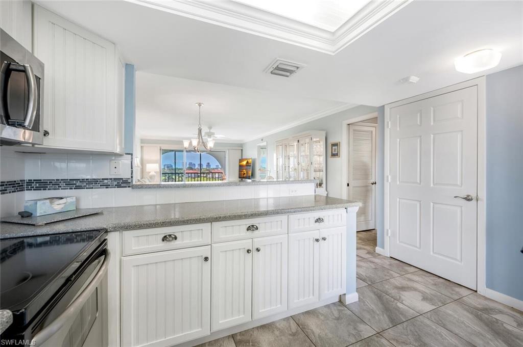 NEW Pictures!!! Rare RENOVATED CORNER UNIT with views of pool, golf course and water feature. Open kitchen has white cabinets, newer stainless appliances. Enjoy neutral tile floors, updated windows and doors, updated A/C and hot water heater and plantation shutters on all windows. The hot water heater and new electric panel have been upgraded in 2025. The building has a new roof and a generator for outside lights and for the 2 elevators. The owner has lovingly maintained this unit. This is a rare opportunity and a Must See! Low quarterly fee includes wi-fi, cable, water, sewer, trash, all amenities including FREE golf, tennis, pickleball, 6 pools, clubhouse with gym, pro shop and restaurant plus 6 pools and just 1 mile to beach! Enjoy a full activity calendar, a restaurant in season and the friendliest CC in Naples. High Point CC is a hidden gem just 1 mile to the beach, famous 5th Ave, restaurants and shopping are minutes away. Location, location. See it now and discover the "hidden gem of Naples".