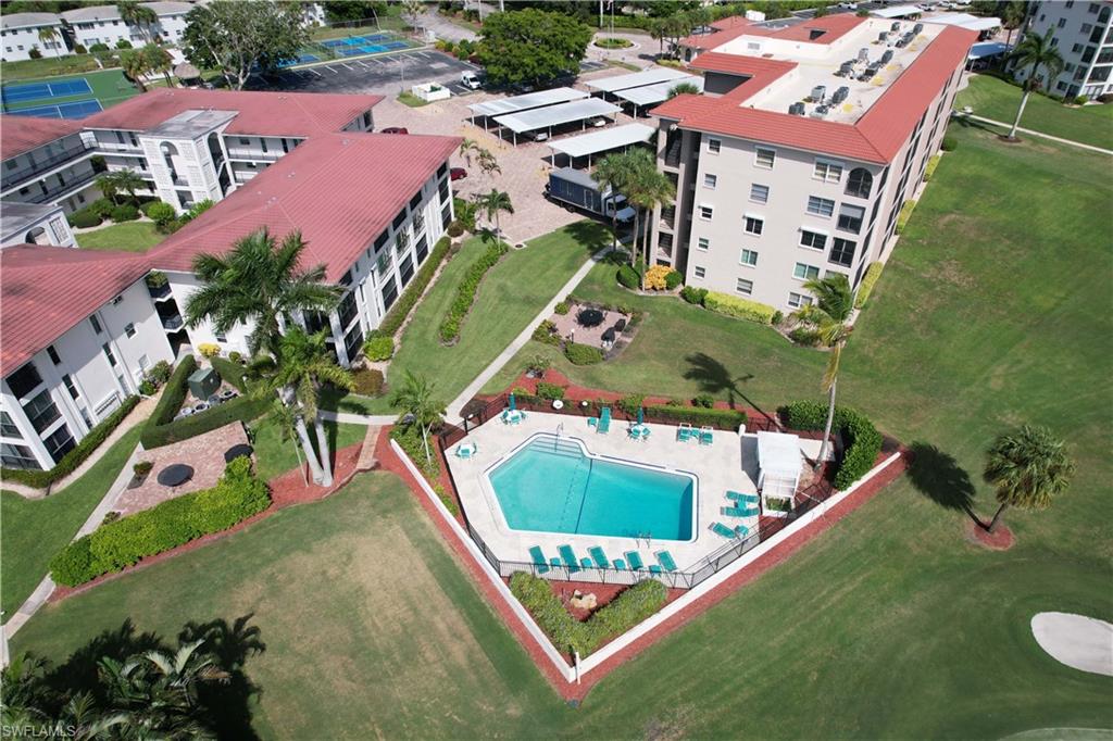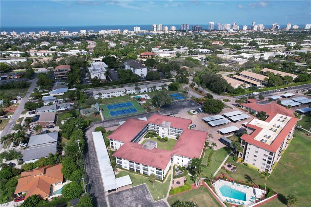 LOCATION is the key to Naples living! This prime condo location comes with a High Point Country Club golf membership for two people. It is close to world famous 5th Avenue in Downtown Naples, and a quick bike ride to the beach. It is centrally located close to Venetian Village as well as Mercato for all that Naples has to offer. Renovated in 2025 with quartz countertops and brand new appliances. Quiet close kitchen / bathroom drawers and cabinets. Porcelain tile floors throughout. As an added upgrade this condo comes with an expanded shower area in the guest bathroom and a zero entry shower in the primary bathroom. The kitchen pantry has been renovated to include a wine refrigerator. This condo even comes with a BRAND NEW ROOF for FREE! High Point Country Club has an in season restaurant six swimming pools, pickleball courts, tennis courts, two bocce courts and social activities galore.