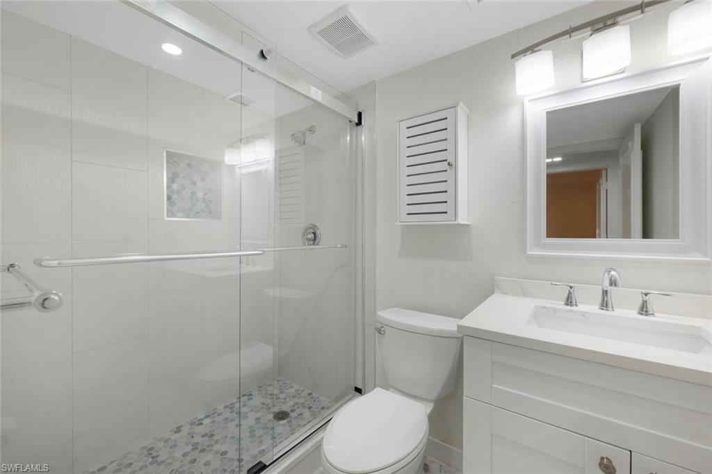 Enjoy the best of the Naples lifestyle in this beautifully remodeled, western-facing condo, perfectly located just moments from Venetian Village and the pristine Naples beaches. Situated in Building 29 of the sought-after High Point community, this spacious 2-bedroom, 2-bathroom unit offers serene privacy and stunning sunset views over the golf course. The fully updated split floorplan features elegant tile flooring throughout and a chef-inspired kitchen complete with quartz countertops, brand-new stainless steel appliances, luxury solid wood soft-close cabinetry, and all-new electrical. Both generously sized bedrooms include remodeled bathrooms with new cabinetry and sleek glass-enclosed showers. Additional upgrades include brand-new impact-resistant windows and sliding glass doors, ensuring peace of mind and energy efficiency. Enjoy a full golf membership included with the property, as well as access to exceptional community amenities: six swimming pools, tennis, pickleball, bocce, and a vibrant community/social center. High Point is a community that offers a welcoming and active lifestyle. Please note: rentals are not permitted during the first two years of ownership. Don’t miss this opportunity to own a move-in-ready, golf-inclusive condo in central Naples—all for under $500K