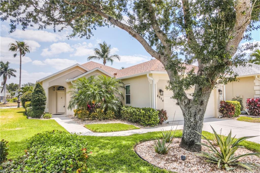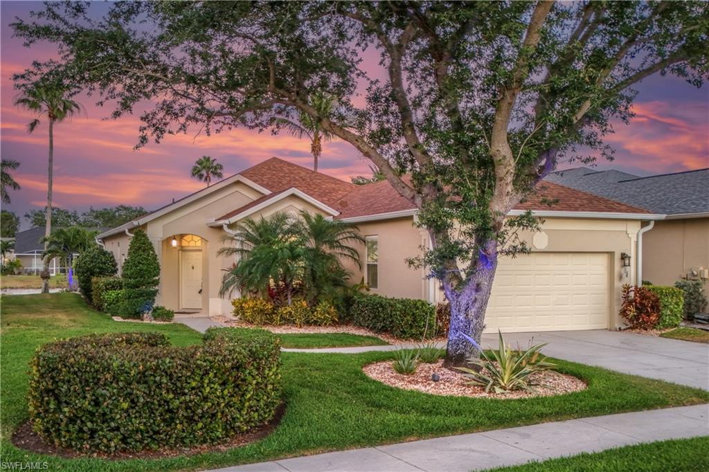 Welcome to Ibis Cove, nestled in the heart of North Naples. This charming corner-lot single-family home offers 1,523 sq. ft. under air with 2 bedrooms plus a den that can easily serve as a 3rd bedroom, 2 full bathrooms, and a 2-car garage.The open-concept layout, highlighted by vaulted ceilings, fills the home with natural light and creates a bright, airy feel throughout. Recent updates include a fresh interior and exterior paint and a new roof (2022). The chef’s kitchen is equipped with stainless steel appliances, generous cabinetry, and a cozy breakfast nook. The spacious primary suite features dual walk-in closets and an ensuite bath with dual sinks, a large walk-in shower, and a soaking tub. Sliding glass doors lead from the great room to a screened lanai offering privacy, perfect for enjoying morning coffee or evening cocktails while surrounded by lush greenery. Ibis Cove is a vibrant community with low HOA fees and amenities that include a newly updated clubhouse, resort-style pool and spa, tennis courts, playground, and picturesque lakes with fountains. It’s a wonderful place to call home full-time or to use as a seasonal rental, with an excellent location near top-rated schools, shopping, dining, and entertainment along Collier Blvd. Quick access to I-75 and just six miles from Naples’ beautiful beaches.