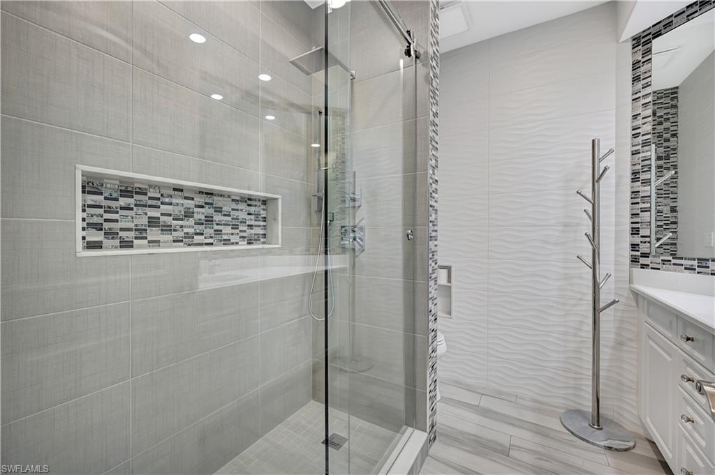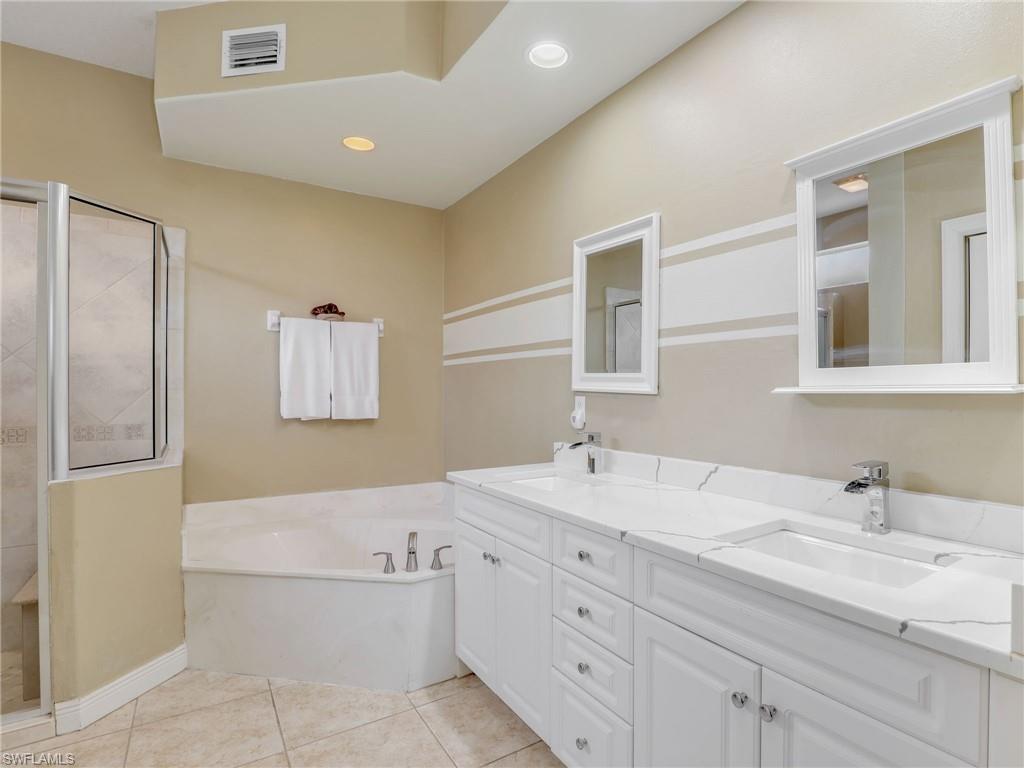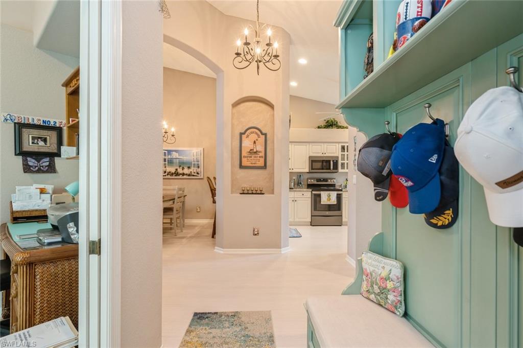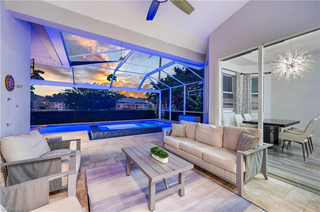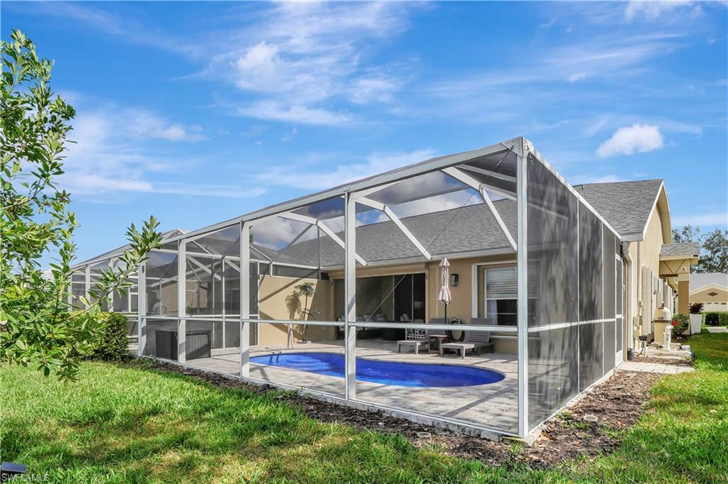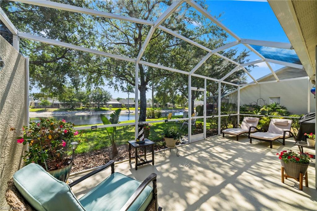 From the moment you enter, you'll be struck by the fresh, clean ambiance and inviting warmth of this beautifully maintained TURNKEY home. Every detail has been thoughtfully considered, creating a space that feels both effortlessly elegant and comfortably livable. Nestled on a lushly landscaped corner lot with tranquil lake views, this home blends style, function, and serenity in one of Naples’ most sought-after communities. Step onto the oversized screened lanai and unwind in the brand new Wellis hot tub (with privacy curtain), an ideal spot to enjoy peaceful water views and gentle breezes. Inside, the home showcases a true pride of ownership, with updates designed to enhance both beauty and peace of mind: a new roof, gutters, A/C system, water heater, and impact-resistant windows. The kitchen has been reimagined with taste and functionality in mind featuring refaced cabinetry, granite countertops, a new sink, garbage disposal, and all new appliances. Soft, new carpeting flows throughout the bedrooms, while the updated primary bathroom and laundry room reflect a crisp, modern style. Creative touches are found in every room from custom window treatments (opening from the top for privacy), new ceiling fans, to a reconfigured walk-in closet and a statement making new front door. The insulated garage adds further comfort and efficiency. Located in a top rated school district and just minutes from beaches, shopping, dining, and entertainment, this home offers a rare combination of thoughtful design, fresh appeal, and move-in-ready convenience. Welcome home to a space that feels as good as it looks, inside and out.