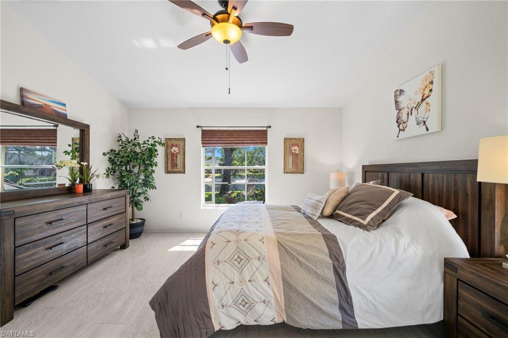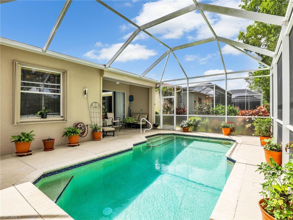 POOL HOME IN NORTH NAPLES FOR UNDER $500,000!!! Spacious 2 bedroom + den, 2 bathroom SINGLE FAMILY HOME has a NEW roof (2023). In the kitchen: QUARTZ countertops, glass tile backsplash and NEWER black stainless steel appliances. All tile and laminate flooring throughout (no carpet). The home is located in a quiet part of Ibis Cove with an amazing private landscaped and golf course view. Ibis Cove has FANTASTIC amenities that include: two lighted tennis courts (one of which has lines and nets for 2 PICKLEBALL courts), a playground, heated pool and spa with sundeck and an expansive clubhouse offering an exercise room, library, billiards room, card room, meeting room and kitchen. Ibis cove is located within "A" rated schools as well. Ibis Cove is only a SHORT drive to the NEW restaurants at Logan Landings and Founders Square. (Logan Landings is within walking distance). Only about a 15 – 20 minute drive to the FAMOUS restaurants and shopping at the Mercato and TWO of Naples finest beaches. ***** THERE ARE 2 VIRTUAL TOUR LINKS YOU CAN CLICK ON FOR MORE INFORMATION *****