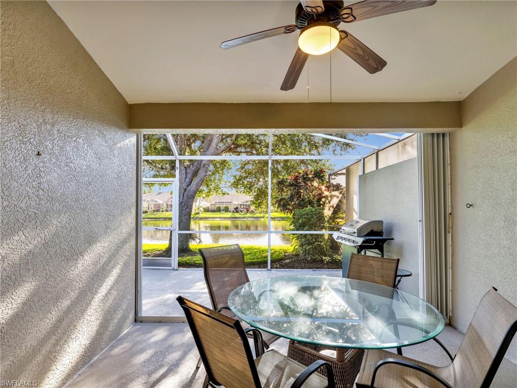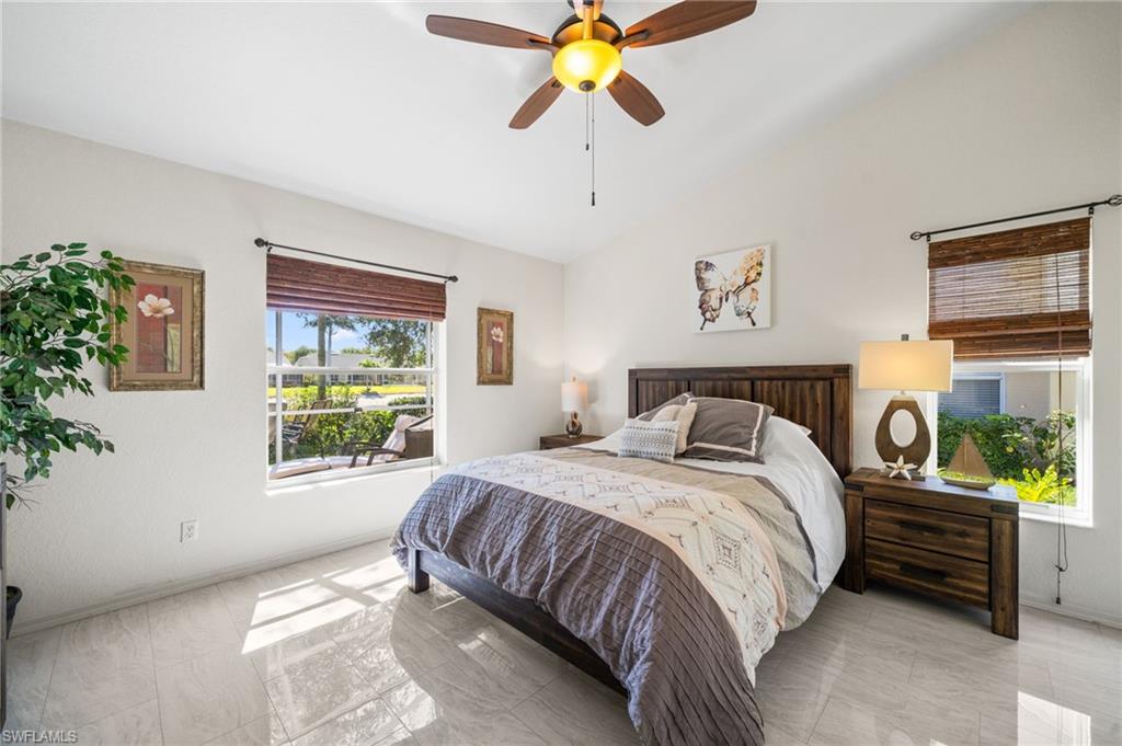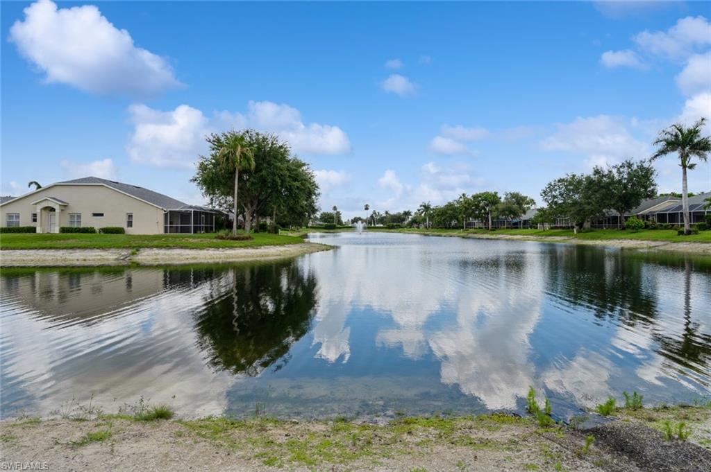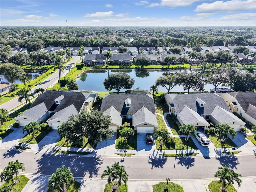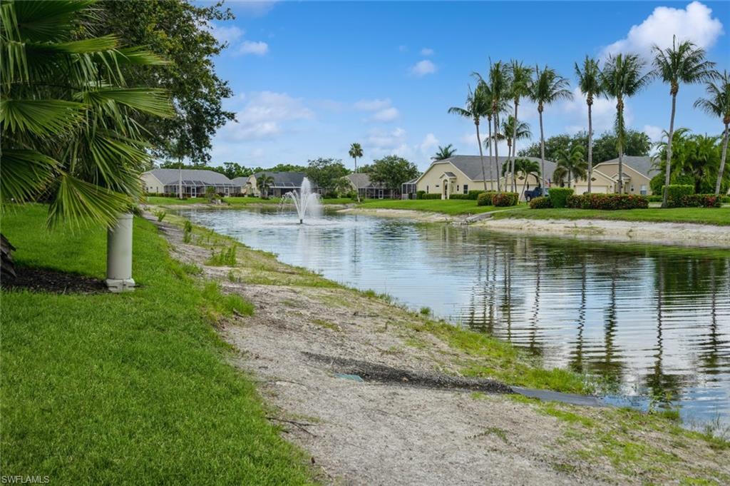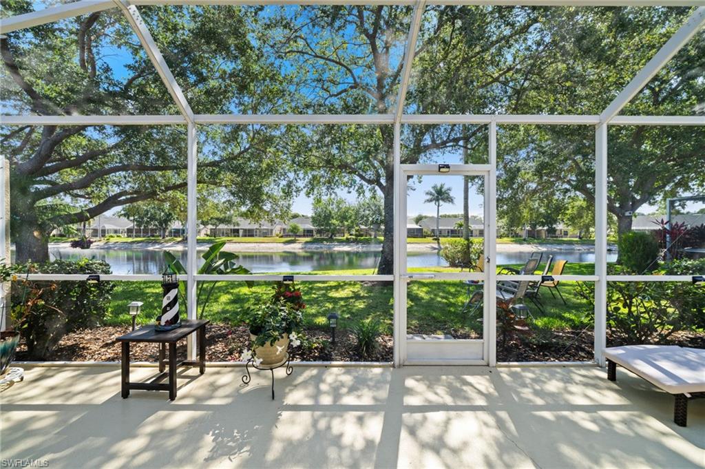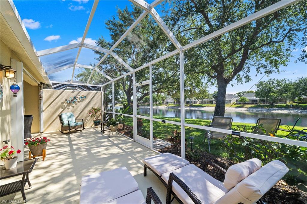 Welcome to this stunning 3-bedroom, 2-bath, 2-car garage lakefront villa that perfectly blends modern luxury with comfort. The residence boasts vaulted ceilings, neutral paint throughout, luxury vinyl plank flooring in main living area and bathrooms and a renovated kitchen with granite countertops. The living area has been extended and provides extra space for relaxation or entertaining with family and friends. In the master suite, you will find dual sinks, a large shower with built-in seat, plus his and hers walk-in closets. It also features a newer roof and AC installed December, 2017. All windows and sliders are category 5 hurricane impact windows, installed October, 2022. With a large lanai and breathtaking lakefront & 2 fountain views, you'll enjoy the ultimate indoor-outdoor living experience. This impeccably maintained property is nestled in the desirable Ibis Cove community, which spans 19 acres of serene lakes with illuminated fountains. The community amenities, including a clubhouse, community pool, spa, tennis and pickleball, billiards and fitness room which provides endless entertainment and relaxation possibilities. Nestled in a North Naples' top rated school district, your family will be in the vicinity of Gulf Coast High School, Oakridge Middle School and Laurel Oak Elementary. Close to shopping, dining and beaches, this home is a serene retreat or perfect family home in a prime location. Don't miss out on this fantastic opportunity to live the ultimate Naples lifestyle! Ibis Cove has one of the lowest HOA fees in Naples! Exterior freshly painted 7/2025, included in HOA fees.