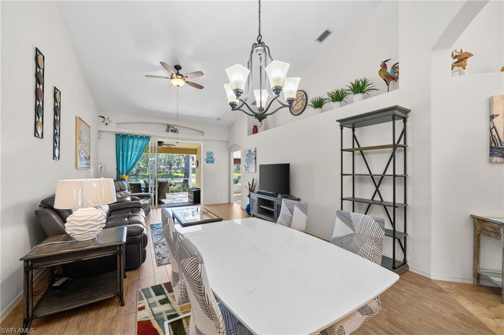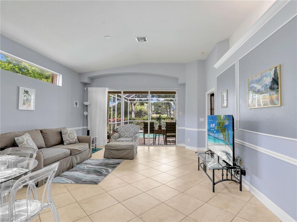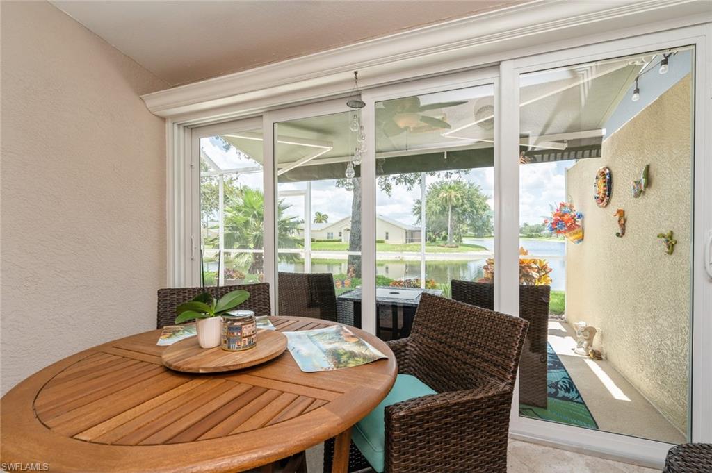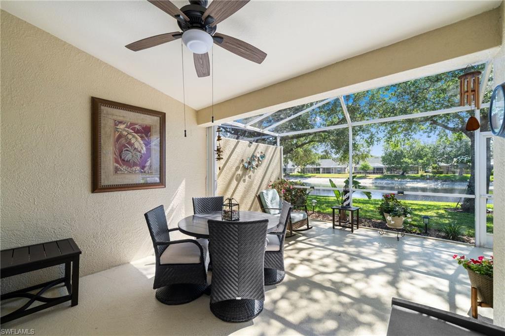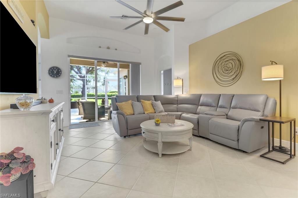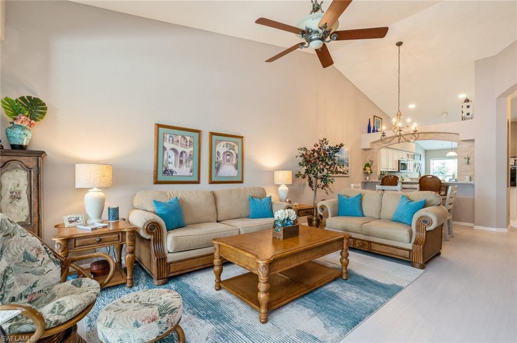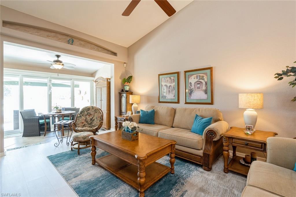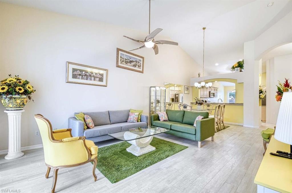 This beautifully maintained 3-bedroom, 2-bath villa in Ibis Cove is being offered turnkey furnished for your immediate enjoyment. NEW AC in 2025, NEW IMPACT GLASS on 3 Windows, Roof is 2018. Enjoy tranquil lakefront views from both the covered lanai, equipped with an accordion shutter for added security, and the expansive extended lanai, providing plenty of space for outdoor living and entertaining. Inside, volume ceilings create an open, airy feel, while the sunny kitchen offers a dining area, breakfast bar, granite countertops, and plenty of space for entertaining. The formal dining room flows seamlessly into the family room, providing an inviting space for entertaining and everyday living. Tile runs throughout the main living areas, with gorgeous new plank tile flooring in the guest bedrooms. The primary suite includes his-and-her closets and an en-suite bathroom for comfort and convenience. Additional highlights include a two-car garage and low HOA fees. Residents of Ibis Cove enjoy a newly renovated community center offering resort-style amenities, including a pool and spa, fitness center, tennis and pickleball courts, billiards, a card room, playground, and more. This vibrant and welcoming neighborhood provides plenty of opportunities to stay active, connect with neighbors, and enjoy a truly social lifestyle. Conveniently located in North Naples near I-75, top-rated schools, shopping, dining, entertainment, and just minutes from the beach, this pet-friendly community is perfect for enjoying everything Southwest Florida has to offer.