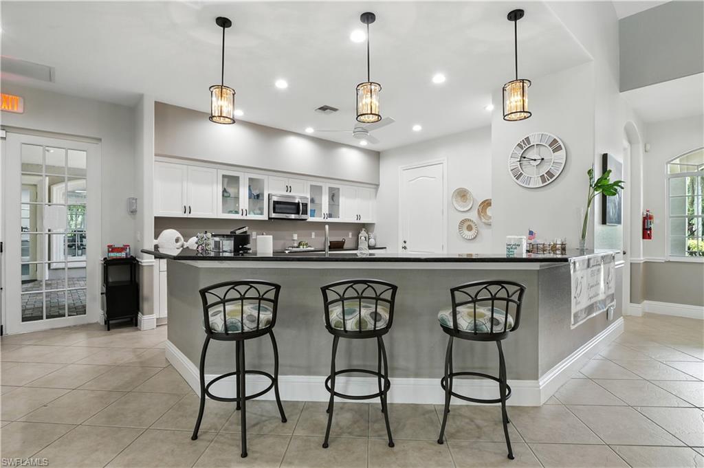 Presenting an exceptional pool home with water views located within the highly desirable gated community of Ibis Cove, Naples. This attached villa features a nearly new (2023) Latham Pool equipped with remote-controlled lighting, complemented by a spacious patio with elegant pavers and a recently enclosed lanai. Enjoy tranquil lake views, serene fountains, and stunning sunsets. The kitchen includes newly installed quartz countertops, a custom wine bar, stainless steel appliances, a modern tile backsplash, and a pantry for ample storage. A split-bedroom floor plan offers three bedrooms, two bathrooms, and vaulted ceilings, enhancing comfort and privacy. The primary suite boasts a luxurious bathroom with custom tiling, a frameless glass shower featuring a rain shower head, double sinks, and dual walk-in closets. Additional upgrades include a newly advanced air conditioning system with a smart thermostat, as well as a two-car garage outfitted with air conditioning and a work bench. Hurricane shutters are installed throughout the residence, including a hurricane-rated electric lanai screen, ensuring peace of mind. Enjoy resort-style amenities, supported by low HOA fees that cover cable, high-speed internet, lawn maintenance, exterior pest control, gated security, and access to superior facilities. Amenities include a heated pool and spa with sundeck, a spacious clubhouse offering a fitness center, billiards, card room, library, kitchen, tennis and pickleball courts, and a playground. The property is conveniently situated minutes from top-rated A+ schools, world-class beaches, and provides easy access to I-75. Premier dining and shopping are nearby at Logan Landings and Founders Square, with the historic 5th Avenue, fine restaurants, shops, and Naples Pier all within a short drive.