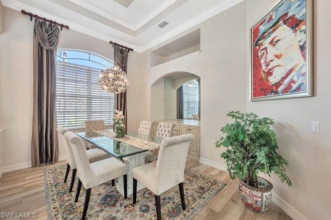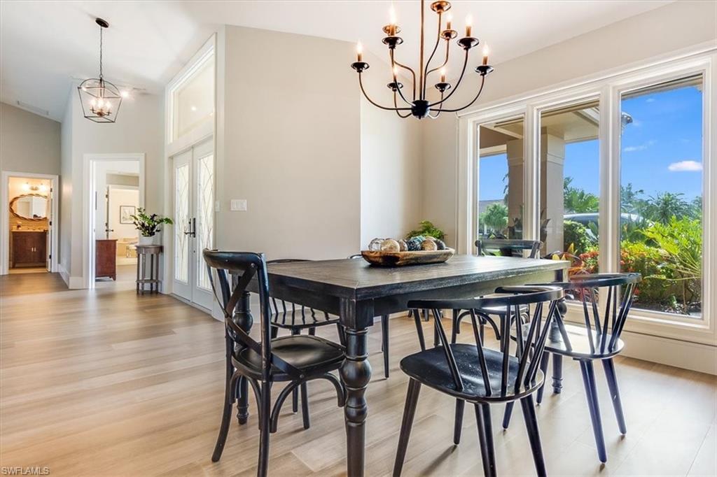 Located in the prestigious neighborhood of Imperial Golf Estates in North Naples, this modern center hall two story home is stunning, move-in-ready, with high end finishes throughout. Rarely available 3 car garage is oversized as well. The large lot is in a quiet section and has a completely fenced in rear yard. This open and spacious floor plan encompasses over 3,300 sq ft and has luxurious wood and travertine flooring. A gourmet kitchen features a large granite eat-in island custom wood cabinetry, and stainless-steel Kitchenaid appliances. It is open to a huge family room with casual dining and custom built-ins. Architectural designer accents and crown molding are found in most rooms. Beautiful views of the lake are seen from several areas of this home with the second-floor family room loft allowing the enjoyment of colorful sunsets. The Owner’s suite has an all new bath with beautiful shower, separate soaking tub and dual vanities. Designer cabinetry adorns the walk-in closet, and a separate shoe cabinet is built-in the bedroom. 3 more bedrooms share a well-appointed bath upstairs while the enclosed den downstairs can be easily converted to a 5th bedroom next to the third bathroom. The two-story entry foyer is impressive with tons of light and a lovely chandelier. The lanai has ample room for conversation and dining. The salt-water pool has an electric heater too! Walls of glass allowing for viewing the rear yard from kitchen, casual dining and the family room, blending outside to the inside naturally. A dedicated laundry room includes a granite folding area and hooks for backpacks or tote bags. Another big extra is the 3-car garage with extra storage cabinetry making this a great value. Close to a multitude of shopping, dining, parks and Naples’ white sandy beaches. A rated school district as well.
