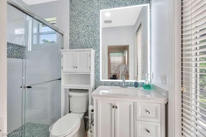 This beautifully redesigned home is nestled on an oversized lot in the highly sought-after Imperial Golf Estates, offering approximately 2600 sq. ft. of living space with 3 bedrooms and 2½ bathrooms. Originally built in 1988, the residence has been fully renovated between 2022–2025 with premium upgrades for modern living and peace of mind. From the moment you step inside, soaring vaulted ceilings and a wall of French doors fill the interior with natural light, creating a bright and airy ambiance. Neutral tones and clean architectural lines provide a timeless backdrop that complements any style of décor. The well-appointed kitchen boasts custom cabinetry, double oven, propane cooktop, serving counter, and solid-surface countertops, seamlessly connecting to a casual dining area. A convenient powder bath serves guests with ease. The master suite is a true retreat, featuring dual walk-in closets, a tray ceiling, and a beautifully updated en-suite bath. One guest suite is oversized and offers a private en-suite bath with direct pool access—perfect for family or visitors seeking privacy. Outdoor living is at its finest with a brand-new oversized pool (lap and regular) with a sun deck, expansive paver lanai, covered patio for shaded entertaining, and lush tropical landscaping that enhances privacy. The spacious lot provides room for children and pets to play, complemented by a new fenced yard and turf. Additional highlights include an elegant circular drive, side-load garage with utility/storage space, and a lanai storage closet. This home is equipped with exceptional upgrades: all new hurricane-rated windows and doors, roll-down shutters for the front and rear, roll-down lanai screen, standing seam metal roof, solar system, new insulation, new A/C with ductwork, dual tankless water heaters (one propane, one electric), new Pex plumbing and fixtures, upgraded cabinetry and lighting, and a 24kW Generac standby generator with a 750-gallon buried propane tank powering the entire home, including the pool. Modern security is in place with a Ring camera system, ensuring peace of mind. Truly move-in ready, this home blends timeless design with today’s most sought-after features—an exceptional opportunity in one of Naples’ most desirable communities. Images feature digital staging for visualization purposes only; property is unfurnished.