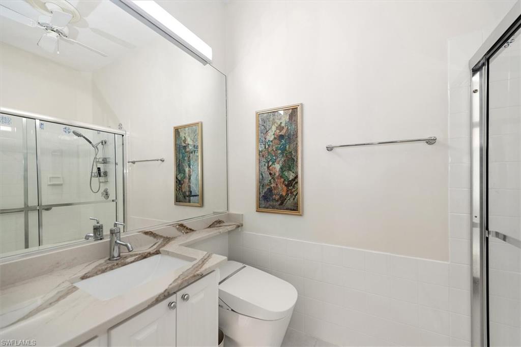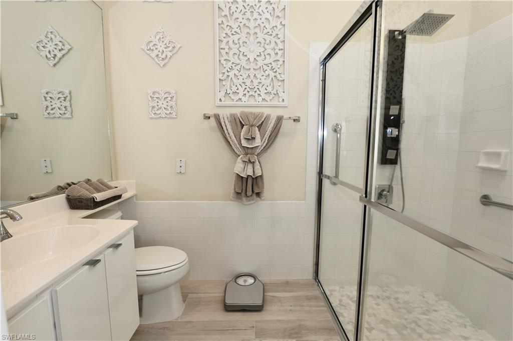 ISLAND WALK is one of the most highly sought after, full amenity communities Naples has to offer. This beautifully upgraded Oakmont model spreads over 2,181 square feet of living space with three bedrooms plus a den, three bathrooms, and an inviting saltwater pool overlooking the lake, and sits on the 2nd shortest cul-de-sac in the community. The home features OVER $100,000 in UPGRADES, including a PAID-OFF SOLAR SYSTEM that keeps the electric bill around $25 per month, with some months generating a credit from FPL. When you step inside, you’re greeted by the spacious living room, as your eyes are drawn to the serene lake view. High ceilings and natural light welcomes you home. The quality this home exudes is impressive. Inside, the kitchen is designed for those who love to cook, bake, and entertain, showcasing a custom designed oversized baker’s bar, wine cooler, double ovens, stainless steel appliances, slide-outs in the cabinetry, and ample counter space. There’s room for more than one chef in this kitchen. The primary suite features a unique bathroom layout with two separate bathrooms sharing a large walk-through shower, along with an upgraded Toto toilet, a large soaker tub, updated counters & fixtures and a separate vanity for her. The walk-in closet is spacious, but the hall is lined with closet space as well offering plenty of room for his clothes too. The den provides flexibility for an office or hobby room, while the laundry room includes built-in cabinets, a sink, and added storage. The guest quarters have their own wing of the house and include an updated bathroom as well. Additional upgrades include hurricane-rated windows and doors (with shutters for the kitchen door and one garage window), smart locks on all doors, epoxy flooring in the two-car garage with a built-in air compressor, a commercial-size water heater, and a full-house water filtration system. The home is located on the hospital electric grid—providing quick restoration of power during outages. Enjoy the screened saltwater pool with heater and pump replaced in 2020, perfect for relaxing with tranquil water views. 1-YEAR HOME WARRANTY INCLUDED for your peace of mind. Island Walk is a gated community known for its beautifully landscaped surroundings and resort-style amenities, including a Town Center with a restaurant, Casa Cotzelli, gas station, nail salon, hair salon, car wash, post office, fitness center, tennis and pickleball courts, bocce, lap pool, resort pool, and Venetian style scenic walking bridges throughout the neighborhood. Plus planned community activities to choose your level of socialization and activity. This ranks as one of the most desirable places to live in the country! Lawn maintenance, cable, and internet are all included in the HOA fees, allowing residents to fully enjoy the Naples lifestyle.