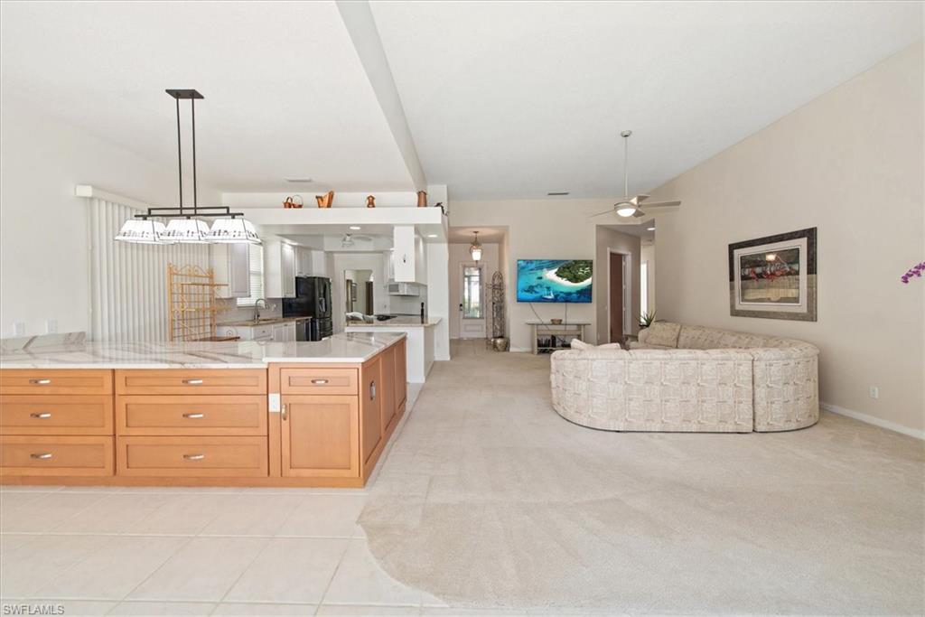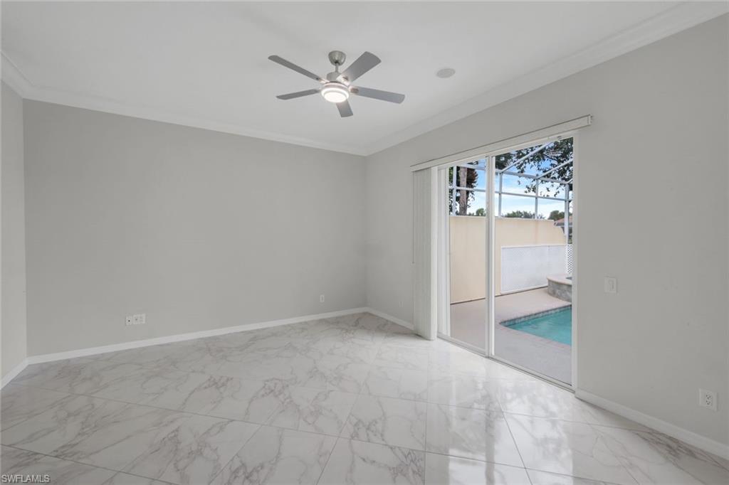 Located in the sought after community of Island Walk this beautiful three bedroom, three bath, plus den or office home offers over 2,000 sq ft of open concept living. Great for relaxing and entertaining. The home invites everyone to the private screened pool and patio. What a view! Sliding glass doors allow the natural light throughout the home. Please note this house has been completely renovated. NEW ROOF 2024/ NEW Flooring/NEW POOL EQUIPMENT/ NEW PAINT throughout. All new ceiling fans in every room and decorative lighting. The Kitchen, baths, and laundry all have new beautiful luxury countertops. Even the 2 car garage has new poly flooring. This home is ready for your own personal decorative touches. Amenities in this community include resort-style and lap pools, bocce courts, a putting green, lawn bowling, croquet, a fitness center, clubhouse, tennis courts, and pickleball courts along with a full calendar of social events at your leisure. The community also features a Town Center with a post office, bank, cafe, gas station, car wash and more... This lifestyle offers the discerning buyer everything right in your own community. Don't miss out on this fantastic home. All offers will be considered. Call and schedule your private showing today and live this amazing resort lifestyle.