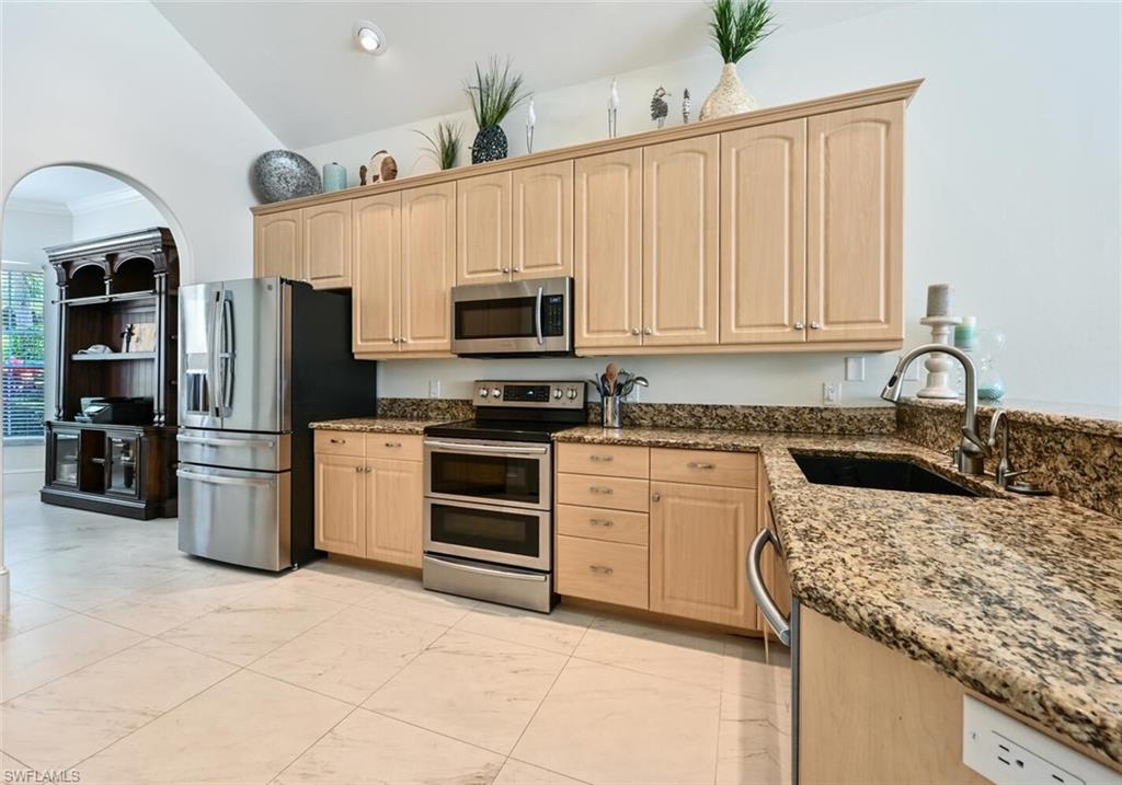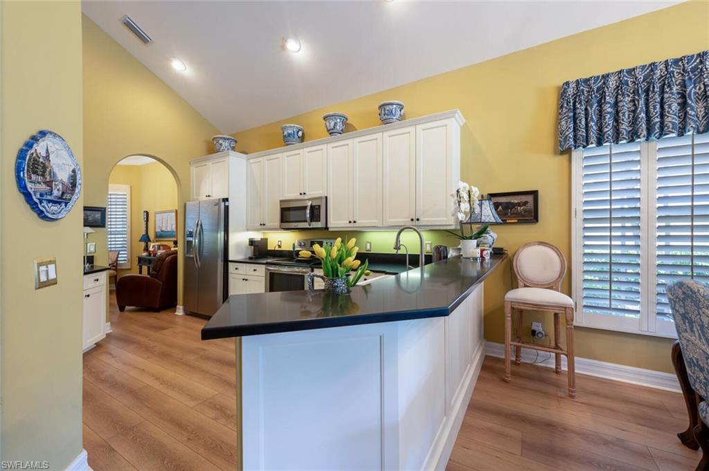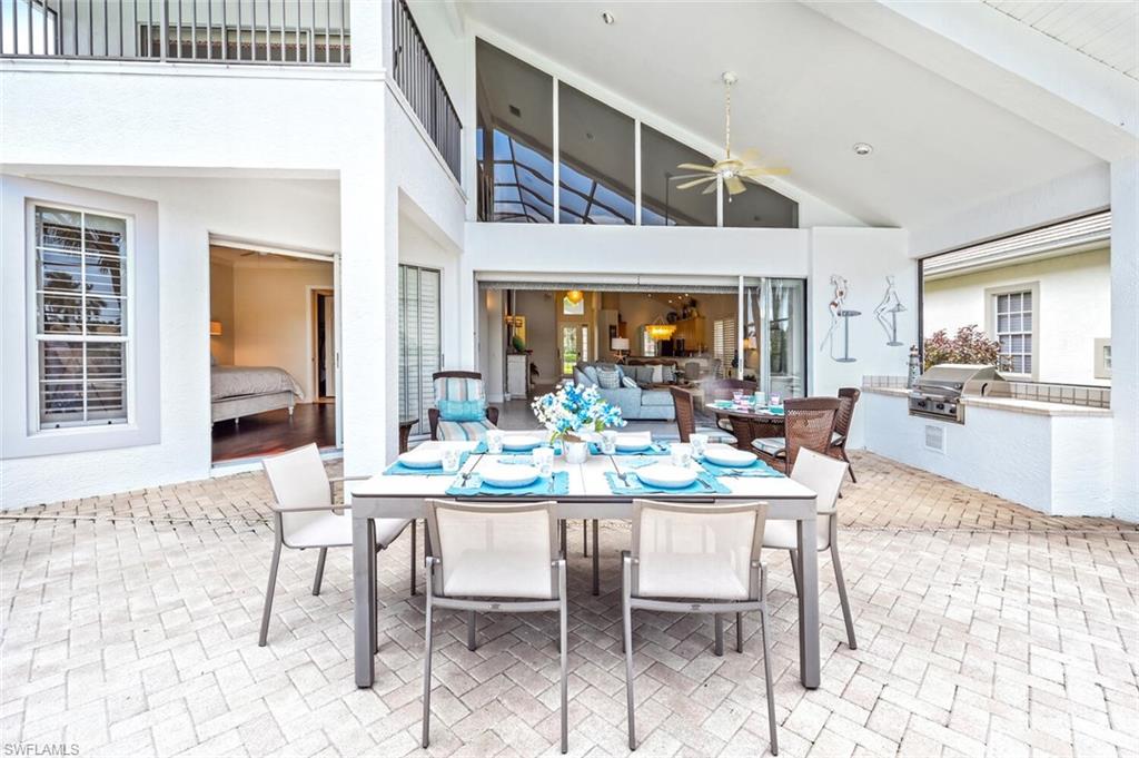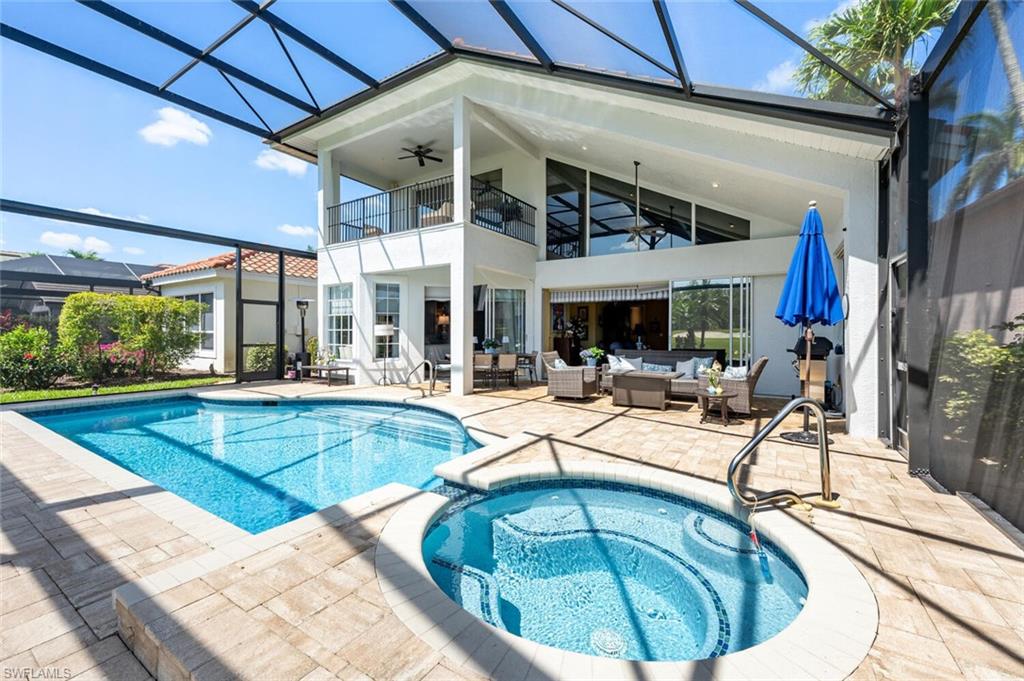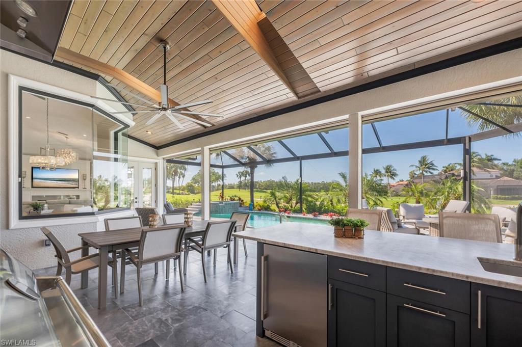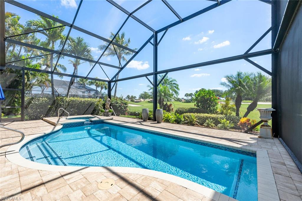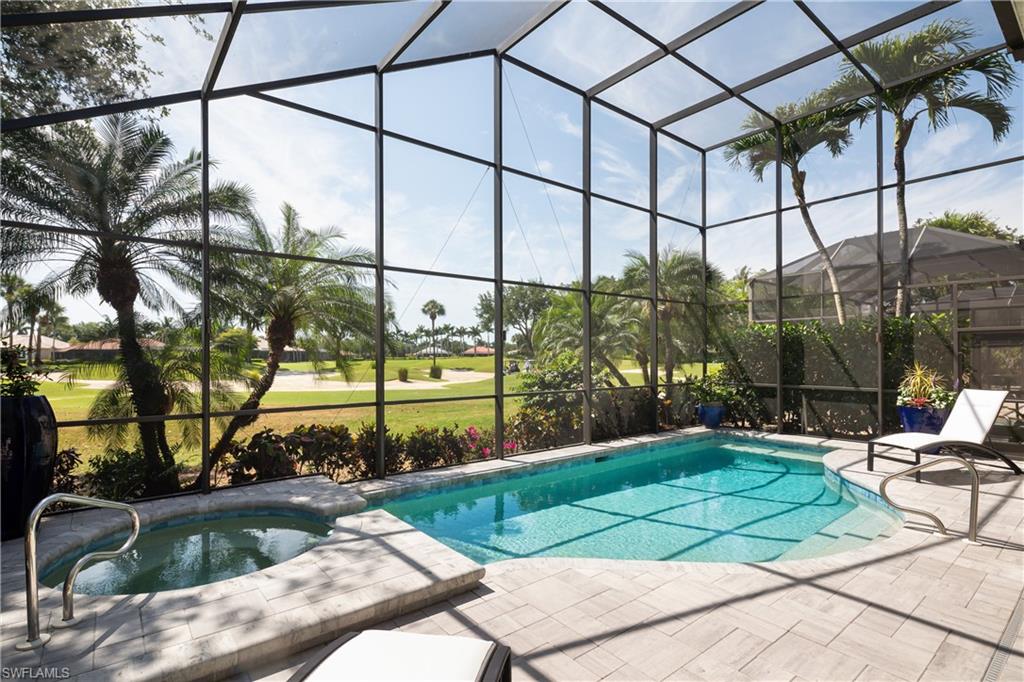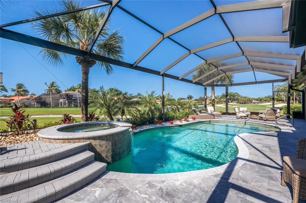 From the moment you enter the gated community of Kensington Golf & Country Club, you’re transported to a private resort. Surrounded by breathtaking landscapes, shimmering lakes, and 18 holes of championship golf, this exclusive enclave offers optional world-class amenities and a lifestyle like no other. Positioned along the 16th fairway, this stunning 3,580 sq ft residence effortlessly blends sophistication with comfort. Featuring 4 bedrooms + a den, home office, 3 ensuite bathrooms, and a powder room, the thoughtfully designed open layout is ideal for both everyday living and elegant entertaining. At the heart of the home is a gourmet kitchen outfitted with new stainless steel appliances, abundant cabinetry, and an island, extended breakfast bar—perfect for gatherings and casual dining. The main living spaces showcase tile flooring throughout, with newer wood flooring in all bedrooms for added warmth and elegance. Seamless indoor-outdoor living is made easy with 5-panel recessed sliders that open completely to a panoramic view of the golf course and your private outdoor oasis. The lanai features a new travertine tile surface, new custom tiled pool and spa, a brand new pool heater, outdoor kitchen and an expansive undercover seating area—creating the ultimate space for alfresco dining, lounging, and entertaining. The luxurious primary suite with sitting area offers direct lanai access and includes a spa-like bathroom with a large walk-in shower, jacuzzi tub, and dual vanities. All guest bedrooms include their own ensuite baths for complete comfort and privacy. Add to this a whole house generator, new pool heater, gas for the pool, jacuzzi and cooking, new landscaping and interior painting. The list keeps going...A BRAND NEW ROOF TO BE INSTALLED, COMPLETION TO BE DONE PRIOR TO CLOSING. As a Kensington resident, you have optional membership offering luxurious amenities, including a newly renovated multi-million clubhouse, restaurants, a resort style swimming pool, state-of-the-art fitness facility, har-tru tennis courts, pickleball and bocce courts. Kensington Golf & Country Club is more than a club, it is a lifestyle whether relaxing, recreation or social gatherings. This home delivers the best of Naples living - quality, upgrades, location and value.