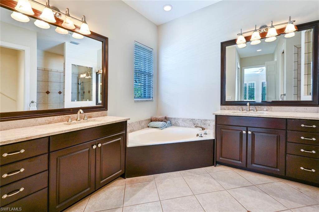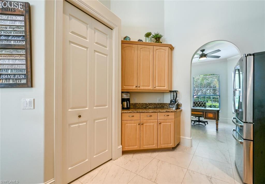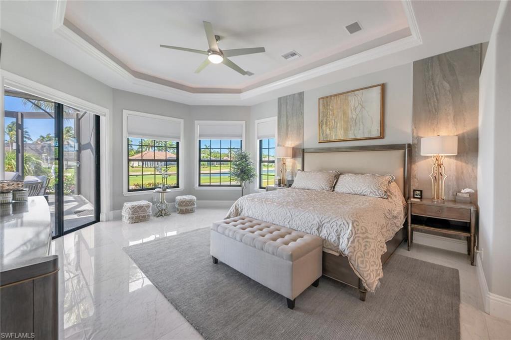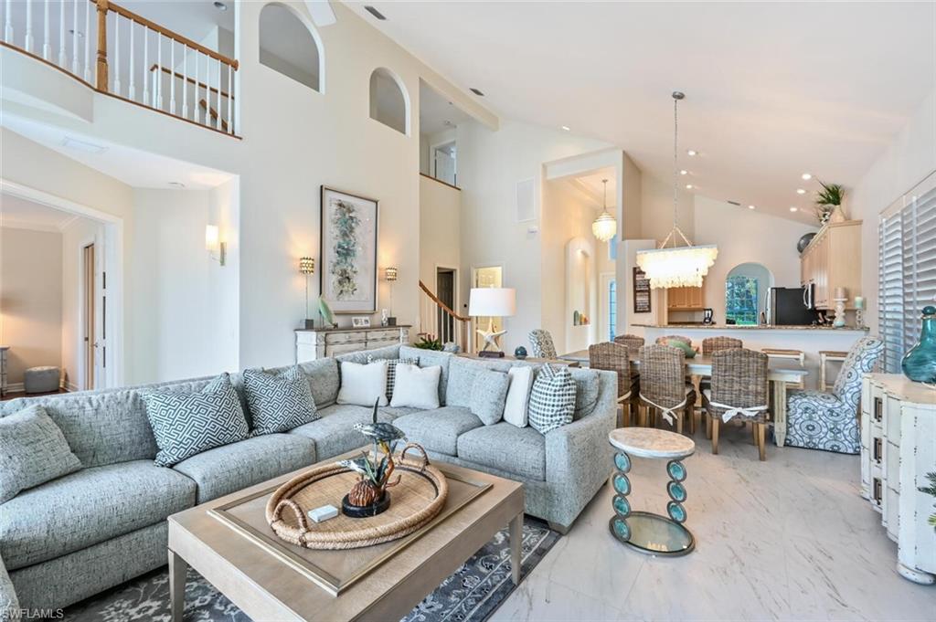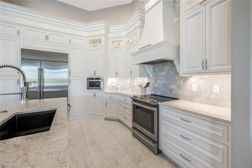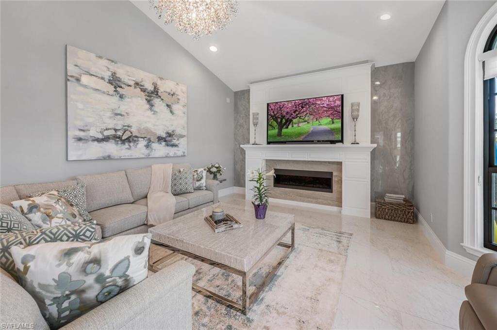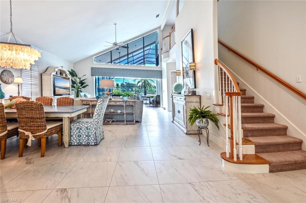 Regal in design and grand in proportion, this residence exemplifies timeless architectural beauty and offers a remarkable foundation for personalization. Perfectly positioned on a prime lakefront lot, the circular brick-paver driveway, manicured landscaping, and stately façade set the stage for what awaits within—soaring ceilings, exquisite mosaic inlay tile details, and walls of glass that showcase breathtaking lake views and bathe the interiors in natural light. The grand foyer transitions seamlessly into the formal living room, where tray ceilings elevate the residence’s sense of scale and sophistication. The spacious kitchen is a dream layout to modernize, featuring a large island, wraparound breakfast bar, and abundant cabinetry. Just off the kitchen lies a bar area additional cabinetry, and a wine cooler—perfectly positioned within view of the formal dining room, making it ideal for entertaining guests or hosting grand fêtes. The kitchen offers an eat-in dining area attached to a large Great room provide inviting spaces for casual dining and relaxed gatherings, all overlooking the lanai and lake beyond. Corner pocketing sliders open to the screened lanai, where a sparkling pool is surrounded by both undercover lounging areas for shaded comfort and open-air spaces for sunbathing. The primary suite continues the theme of elegance, offering private lanai access, mosaic inlay tile accents, and a sprawling ensuite bath with a luxurious pass-through “car wash” shower, soaking tub, dual vanities, and makeup station. The guest rooms, too, are given the attention they deserve, including a guest suite with French doors and a walk-in closet, along with additional spacious bedrooms that ensure comfort and privacy for family and guests alike. Ideally located within Kensington Golf & Country Club, just minutes from Mercato, Waterside Shops, the Naples Philharmonic, and Gulf beaches, this home offers fantastic bones, timeless appeal, and enduring architectural character—a rare opportunity to refresh a classic or reinvent it for modern living.